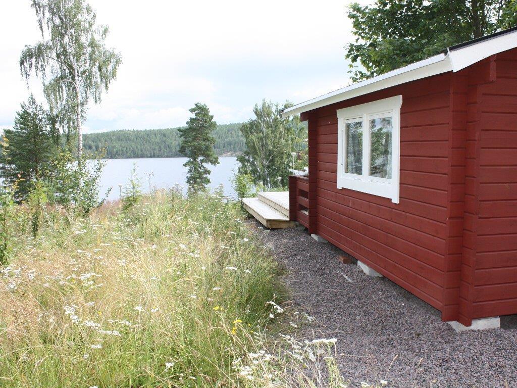 Velkommen til dette feriehus i smukke omgivelser - kun 100 meter fra søen Fryken og 5 km nord for Sunne. Her har I søudsigt fra forsiden af feriehuset og fra den store terrasse.
