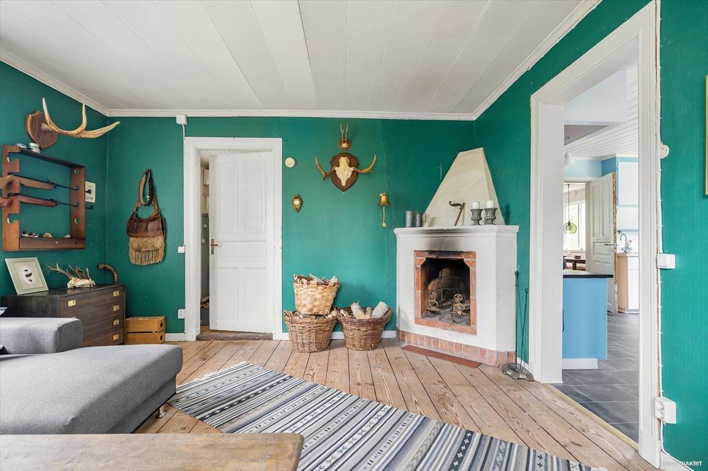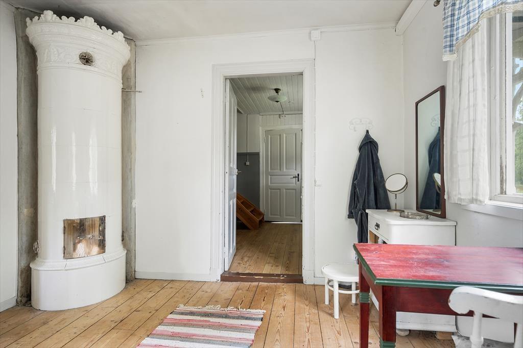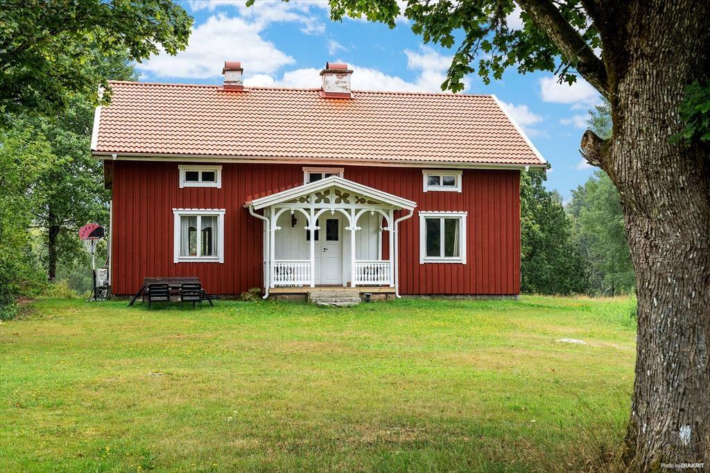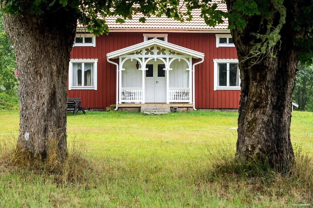 Den tidligere gårdbygning fra 1903 med et boligareal på ca. 200 m² er blevet kærligt og omhyggeligt renoveret af de danske ejere i de seneste år, mens husets oprindelige charme stort set er bevaret. Fra en lille overdækket veranda, kommer man ind til en rummelig entré, blandt andet med trappen, som fører til den øverste etage. Som det er almindeligt i svenske huse fra denne tid, er alle rum i stueetagen forbundet, så man kan starte en rundtur i huset fra gangen. Til venstre kommer man først ind i det første af de i alt seks soveværelser, som er indrettet med en enkeltseng, og derefter fortsætter man ind i en stue og spisestue på ca. 40 kvadratmeter, som er udstyret med en kakkelovn samt et langt spisebord, et skrivebord og bordfodbold. Dernæst er der det store køkkenområde med en vellykket kombination af et gammeldags køkken med moderne inventar som f.eks. et elektrisk komfur med keramisk kogeplade og ovn samt en opvaskemaskine. Videre kommer man ind i en såkaldt jagtstue med et stort opholdsområde, åben pejs og mange slags jagttrofæer, og derfra kommer man tilbage til entréen. Det moderne badeværelse med bruser, vaskemaskine, toilet og håndvask er placeret i et tidligere spisekammer og har derfor dør ud til køkkenet. På husets øverste etage, er udover fem soveværelser, et stort rum, med plads til hygge med diverse brætspil. Soveværelserne er fordelt på hver sin side af opholdsområdet. På den ene side ligger to værelser i forlængelse af hinanden. Det ene med en dobbeltseng, det andet med en enkeltseng. På den anden side ligger tre værelser i forlængelse af hinanden. Det første værelse med to enkeltsenge, det andet med dobbeltseng og det tredje med en enkeltmandsseng, som kan trækkes ud til dobbeltseng. Der er i alt elve sovepladser. Huset har koldt og varmt vand fra egen brønd og kan opvarmes enten brændekomfuret, kakkelovn eller små elradiatorer. Der er hverken fjernsyn eller internet i huset. Udenfor er der et das med tre siddepladser samt et udendørs brusebad med varmt og koldt vand og et bålområde til hyggelige aftensstunder.