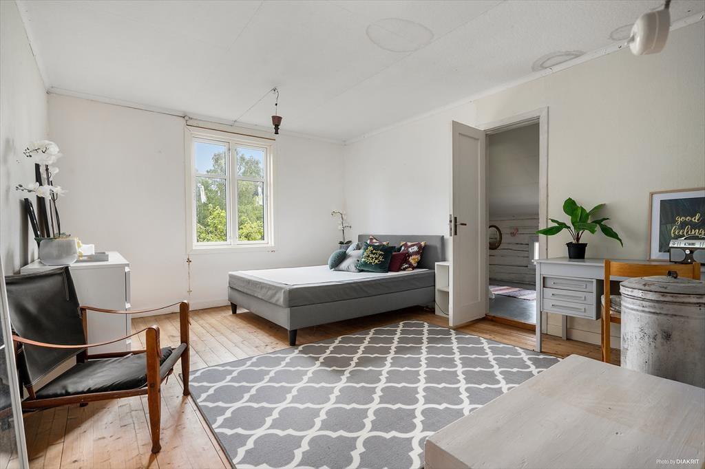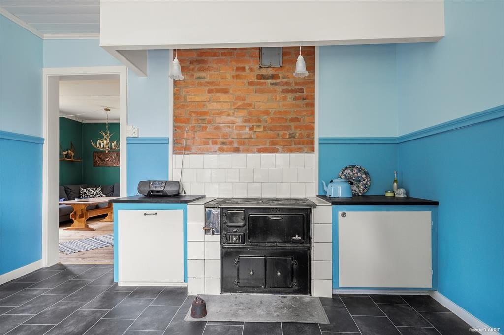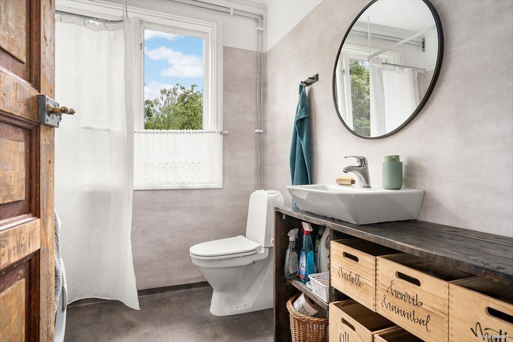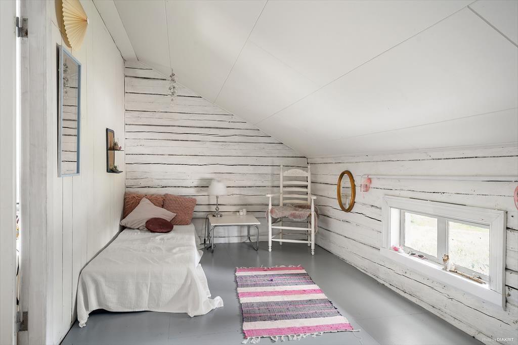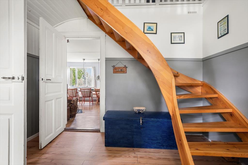 Den tidligere gårdbygning fra 1903 med et boligareal på ca. 200 m² er blevet kærligt og omhyggeligt renoveret af de danske ejere i de seneste år, mens husets oprindelige charme stort set er bevaret. Fra en lille overdækket veranda, kommer man ind til en rummelig entré, blandt andet med trappen, som fører til den øverste etage. Som det er almindeligt i svenske huse fra denne tid, er alle rum i stueetagen forbundet, så man kan starte en rundtur i huset fra gangen. Til venstre kommer man først ind i det første af de i alt seks soveværelser, som er indrettet med en enkeltseng, og derefter fortsætter man ind i en stue og spisestue på ca. 40 kvadratmeter, som er udstyret med en kakkelovn samt et langt spisebord, et skrivebord og bordfodbold. Dernæst er der det store køkkenområde med en vellykket kombination af et gammeldags køkken med moderne inventar som f.eks. et elektrisk komfur med keramisk kogeplade og ovn samt en opvaskemaskine. Videre kommer man ind i en såkaldt jagtstue med et stort opholdsområde, åben pejs og mange slags jagttrofæer, og derfra kommer man tilbage til entréen. Det moderne badeværelse med bruser, vaskemaskine, toilet og håndvask er placeret i et tidligere spisekammer og har derfor dør ud til køkkenet. På husets øverste etage, er udover fem soveværelser, et stort rum, med plads til hygge med diverse brætspil. Soveværelserne er fordelt på hver sin side af opholdsområdet. På den ene side ligger to værelser i forlængelse af hinanden. Det ene med en dobbeltseng, det andet med en enkeltseng. På den anden side ligger tre værelser i forlængelse af hinanden. Det første værelse med to enkeltsenge, det andet med dobbeltseng og det tredje med en enkeltmandsseng, som kan trækkes ud til dobbeltseng. Der er i alt elve sovepladser. Huset har koldt og varmt vand fra egen brønd og kan opvarmes enten brændekomfuret, kakkelovn eller små elradiatorer. Der er hverken fjernsyn eller internet i huset. Udenfor er der et das med tre siddepladser samt et udendørs brusebad med varmt og koldt vand og et bålområde til hyggelige aftensstunder.
