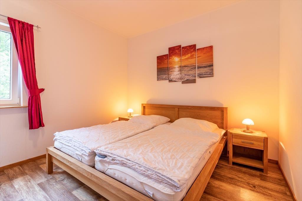 Med en boligareal på 60 m² tilbyder huset rigelig plads til 4 feriegæster. Man kommer ind i huset via den overdækkede veranda og befinder sig direkte i stuen. Her er der et hyggeligt sofagruppe, et fjernsyn og en brændeovn. Til venstre ligger køkkenet, der er åbent integreret i stuen og ud over et køleskab med fryser, elkomfur, ovn, mikroovn og kaffemaskine indeholder alt, hvad du har brug for til at tilberede og servere almindelige retter til 4 personer. Måltiderne indtages ved det massive træbord i køkkenet eller i varmt vejr på verandaen, der ud over havemøbler også har en kulgrill. Fra stuen kommer du også ind i de to soveværelser – det ene med en dobbeltseng og det andet med to enkeltsenge – samt badeværelset med toilet og brusekabine.