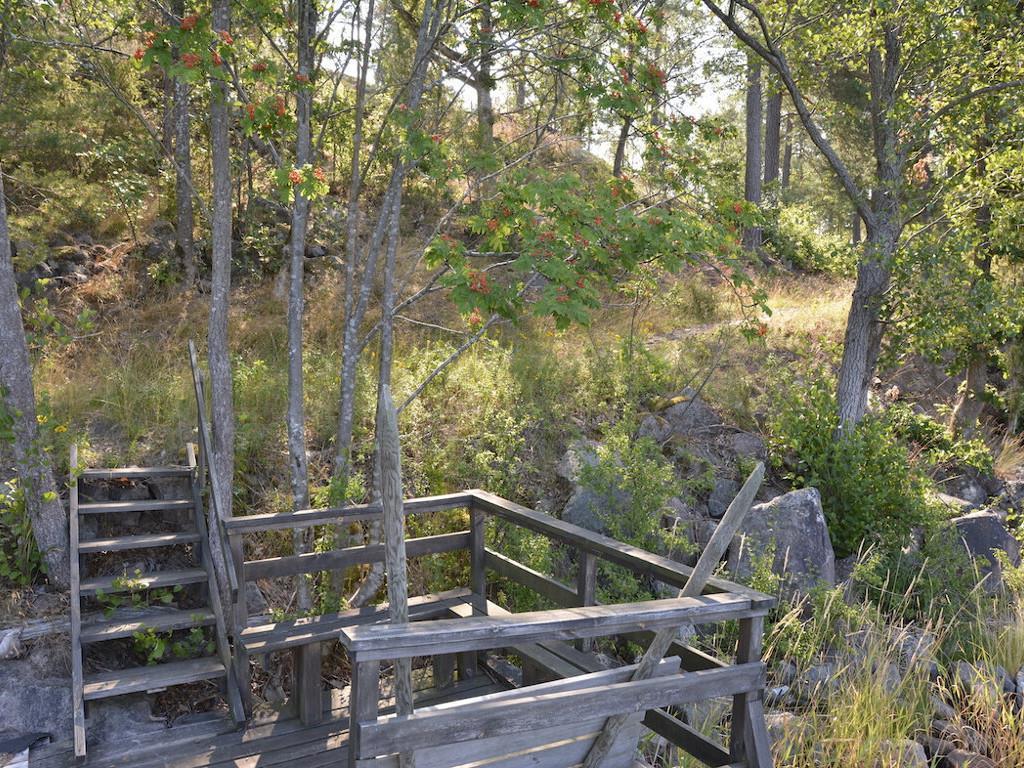 Rundt om i huset er der en velpasset og relativt kuperet naturgrund samt nogle små græsarea-ler, velegnede til leg og spil. Der er en lille sti, der fører direkte ned til havet og badebroen kun ca. 70 meter væk. Broen har badestige og en dejlig lille siddeplads. Ved siden af er der smukke klipper, hvor I kan nyde de solrige dage. Dette havbad egner sig bedst til øvede svømmere. Ne-de ved broen ligger robåden, som I frit kan benytte.