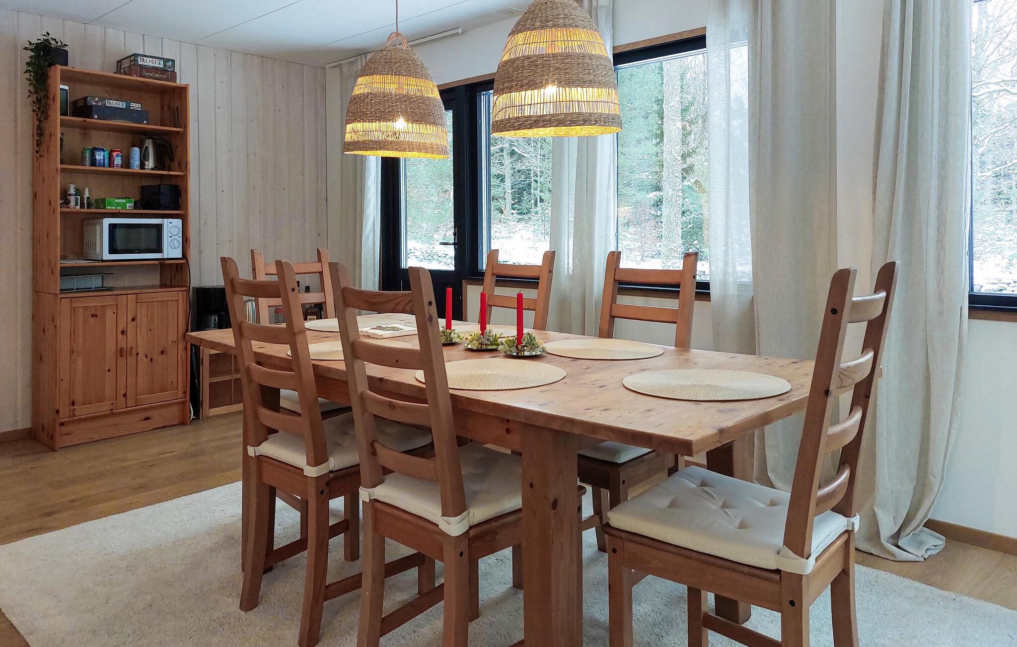 Dette indbydende hus byder jer velkommen i skovbrynet, ideelt beliggende til at udforske området og nyde nærheden til naturen. Føl jer hjemme med jeres kære i husets lyse, moderne og komfortabelt møblerede værelser. Nyd måltider sammen med en vidunderlig udsigt over naturen, slap af efter en aktiv dag i det hyggelige siddeområde, og se jeres yndlingsfilm.
