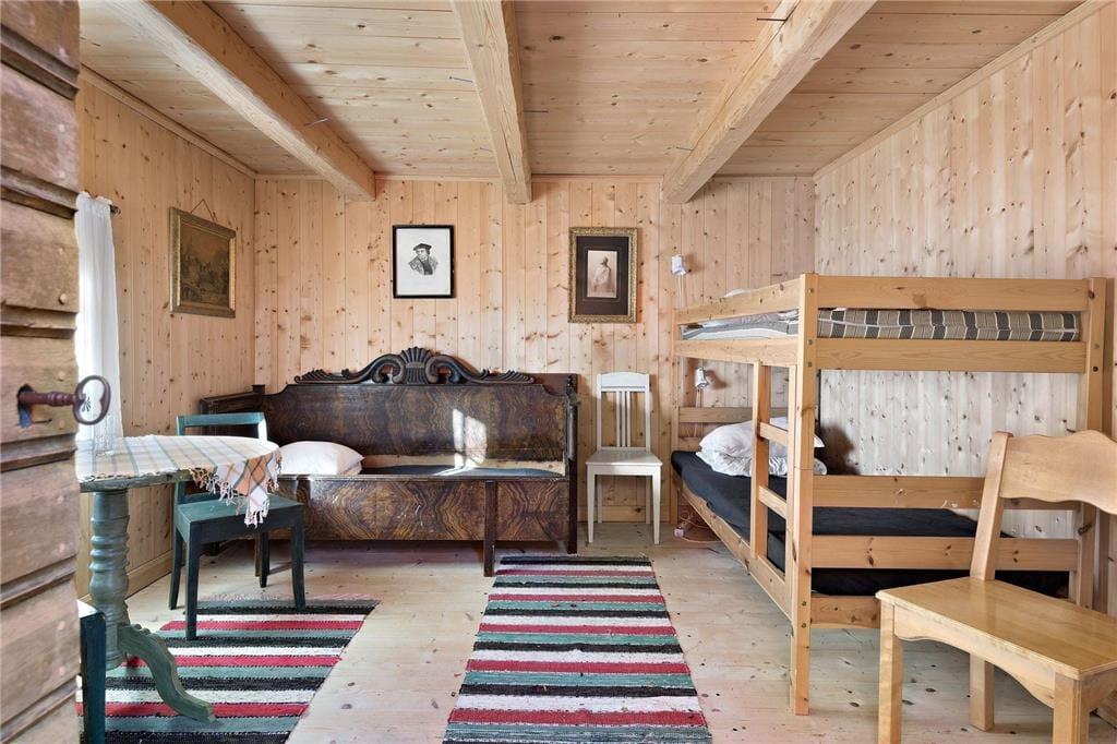 Dette autentiske, originale feriehus blev oprindeligt opført et andet sted, men blev sidenhen flyttet af ejeren til denne grund og flot genopbygget i stilen fra 1910. I stueetagen er en stue med kamin og spisebord. Køkkenet har en lille spiseplads, elektrisk komfur og køleskab med fryseboks. Badeværelset er indrettet med toilet, håndvask og bruser. I opgangen på førstesalen står en enkeltseng og på værelset står en dobbeltseng og en enkeltseng. Huset har varmt og koldt vand og kan opvarmes med el. I et anneks, ca 10 m fra huset, er et 18 m² stort gæsteværelse med tre ekstra sovepladser. Til huset hører også havemøbler, grill og et par ældre cykler, samt en robåd i hver af de nærtliggende søer.