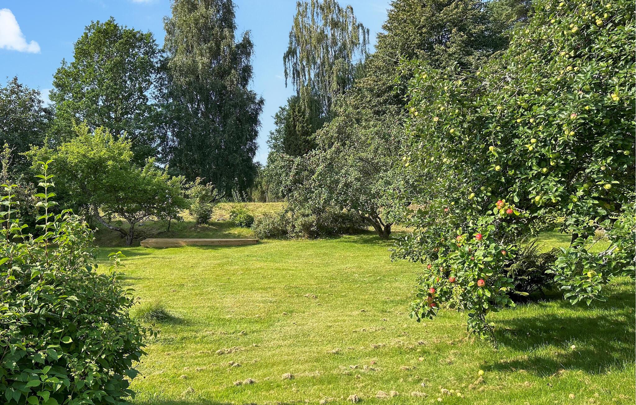 Feriehuset er idyllisk beliggende på Kronoberghalvøen med varieret natur og et rigt kulturlandskab. Der er ikke færre end fem naturreservater til vandring, cykling, svømning og kanosejlads, som kan nås på cykel eller til fods. Udforsk skovene rige på svampe og bær. I gåafstand er der desuden et større badeområde med minigolfbane, vippetårn, restaurant og iskiosk, samt middelalderborgsruinen Kronoberg med café og restaurant. I det nærliggende Växjö kan I shoppe, besøge restauranter, barer og en pool eller spille et spil boule. I kan også benytte lejligheden til at udforske Glasriket eller besøge elgparken i Kosta.