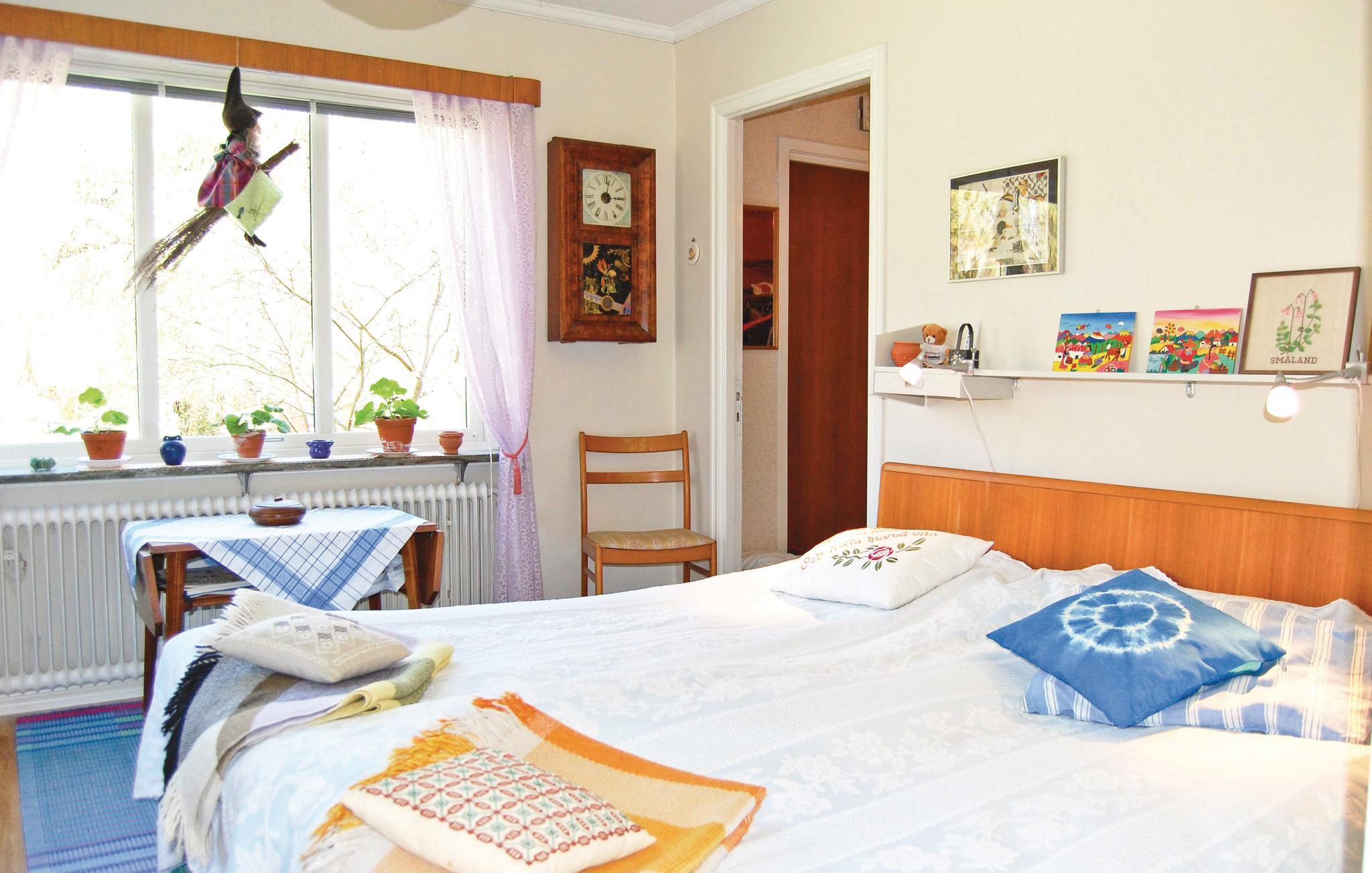 I udkanten af Lenhovda, midt i Glasriket i Småland, finder I dette feriehus dejligt beliggende på en stor grund. Her er der rig mulighed for udespil og leg for de mindste. Huset er god base for udflugter til områdets mange seværdigheder. I har kun 1 km til et badested i Lenhovdasjön, hvor I både kan bade og fiske.