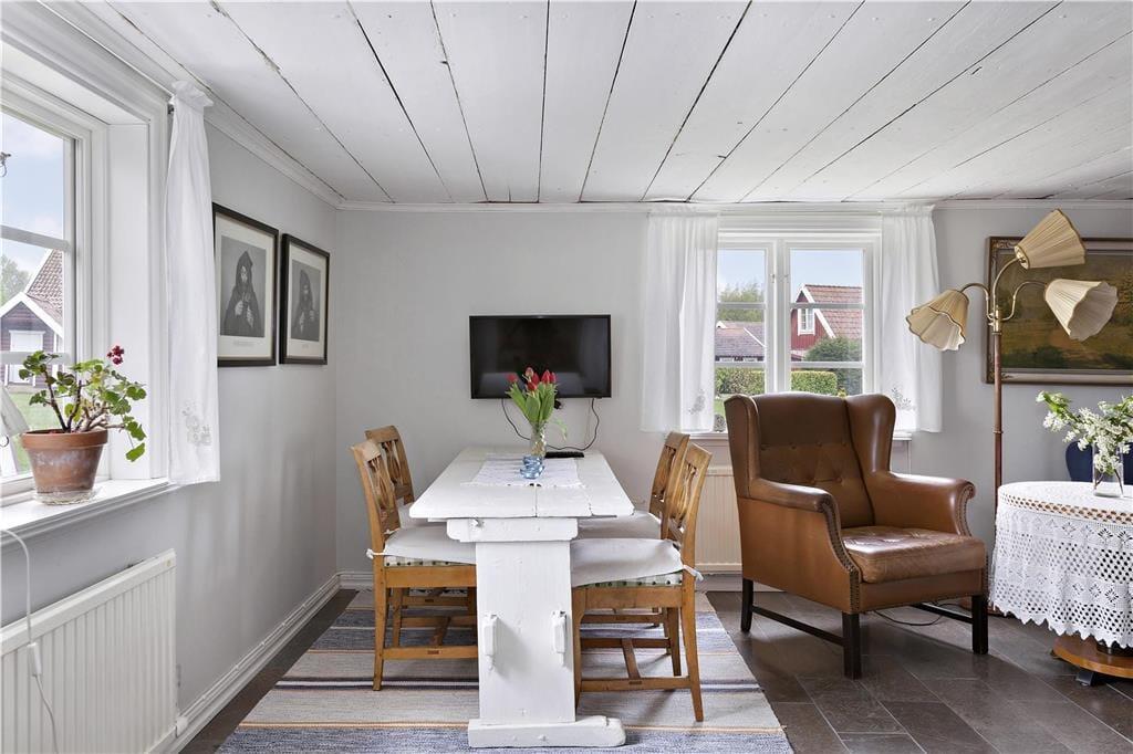 Loftshøjden er nogle steder kun 1,90 m. Der er ikke WiFi huset. Der opkræves et depositum, som refunderes, når du forlader huset i ordentlig stand. Ankomstdato og opholdets længde kan vælges frit. Rygning er ikke tilladt i feriehuset. Elforbruget er ikke inkluderet i lejeprisen og beregnes til 500 SEK kontant pr. uge, som skal betales ved ankomsten. Sengelinned og håndklæder kan om nødvendigt lejes for 150 SEK kontant pr. person pr. skift, ligeledes betales på stedet. Gæster, der ikke selv ønsker at stå for slutrengøringen, betaler 800 SEK kontant på stedet. Bestil venligst disse ydelser direkte ved booking af huset. Huset ligger i umiddelbar nærhed af ejerens bolig, som selv har to hunde. Huset er derfor ikke egnet til personer, der er allergiske over for dyrehår.
