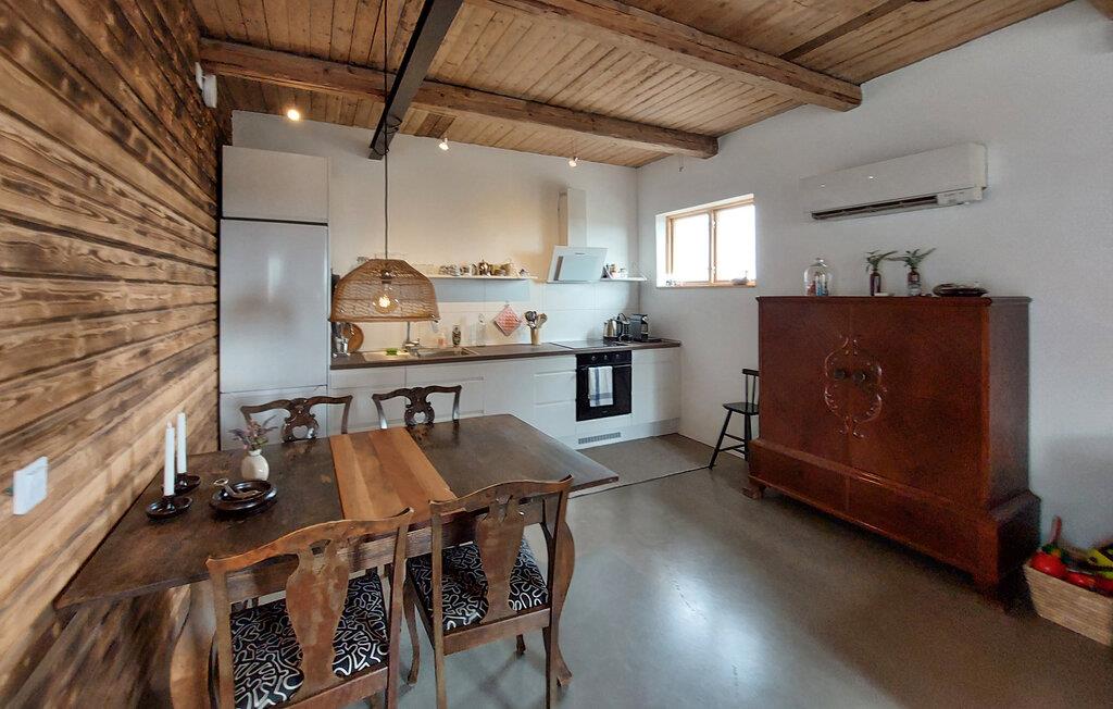 Denne komfortable ferielejlighed ligger på en hestefarm og tilbyder et venligt og hyggeligt tilflugtssted ikke langt fra charmerende seværdigheder. Her kan I lægge hverdagen bag jer med familien og planlægge jeres aktiviteter over afslappede måltider i en harmonisk, hjemlig atmosfære. Slap af efter en lang dag på den behagelige sofa eller hold sjove spilleaftener.