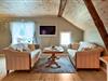 Ved en grusvej i landlige omgivelser finder I dette rummelige feriehus, smukt indrettet i gammel stil med god komfort og historisk charme ved skovkanten. Hyg jer i de elegante rum med smukke trælofter og -gulve, hvor komfortable sofaer om aftenen indbyder til afslapning.