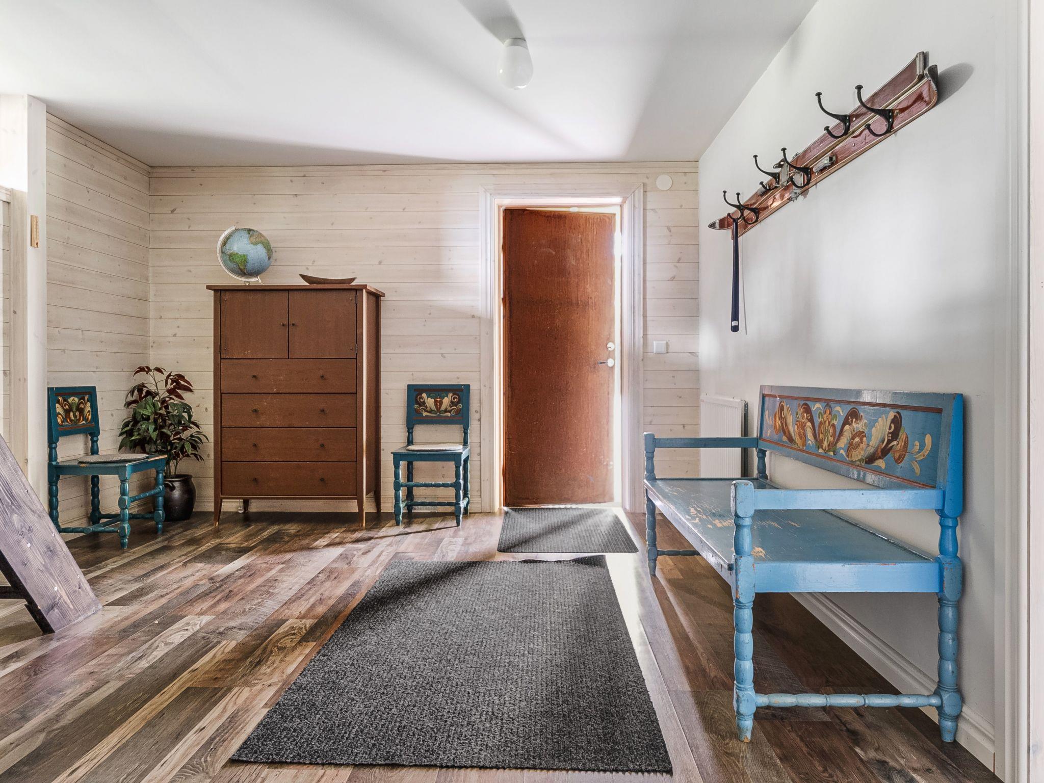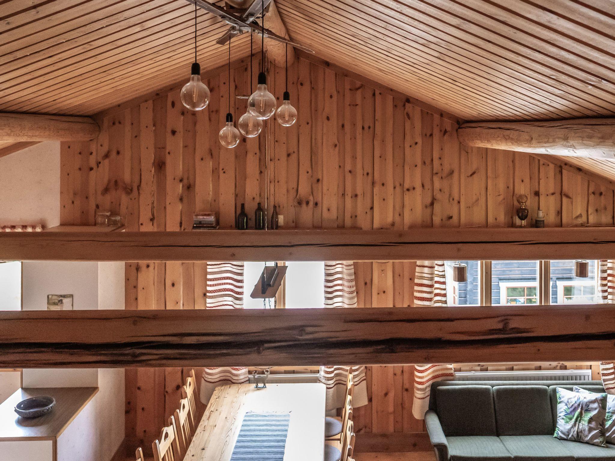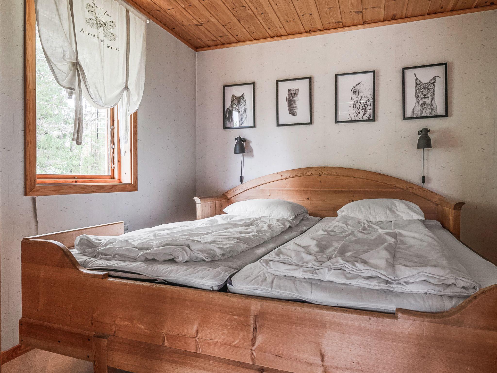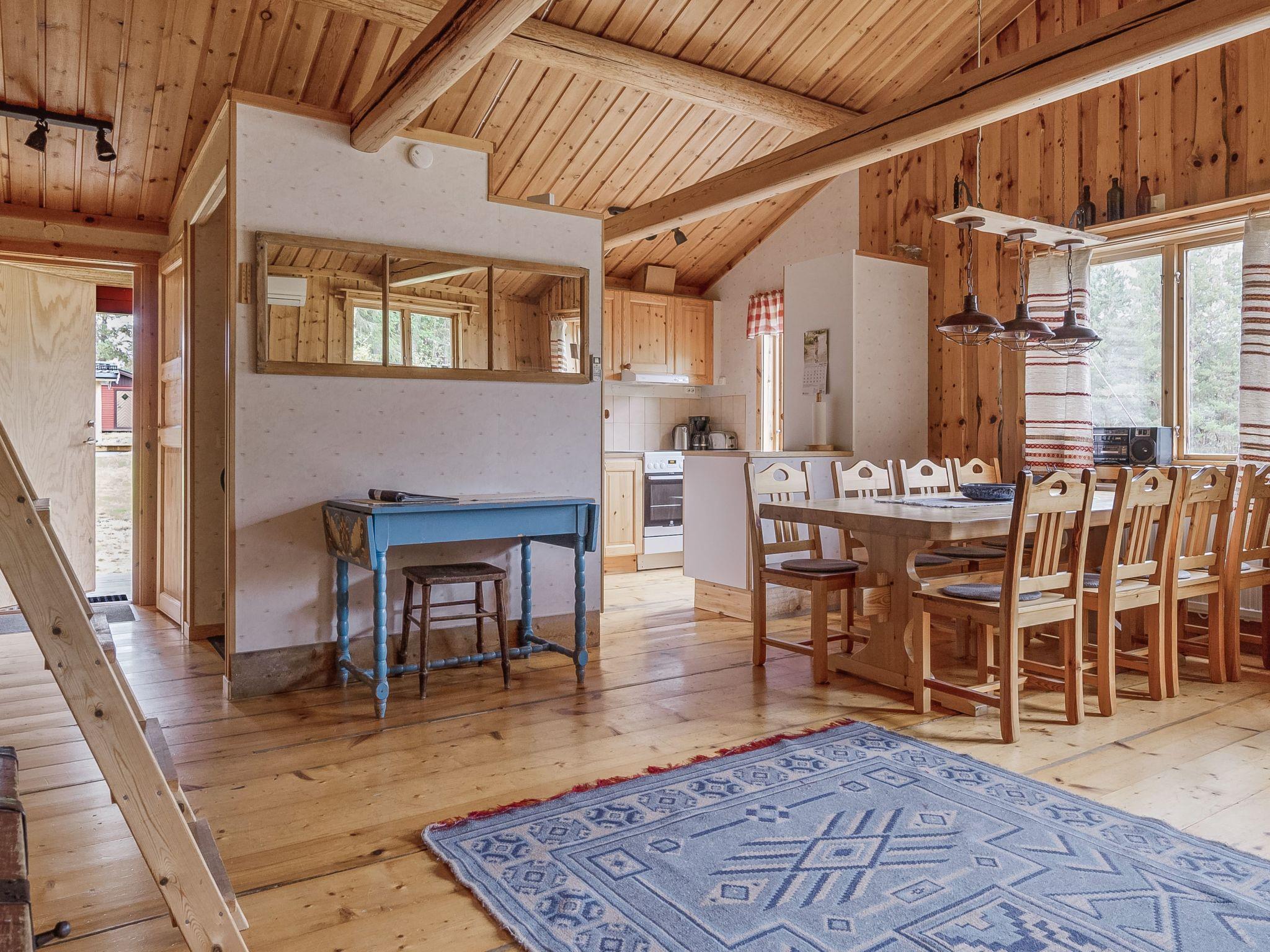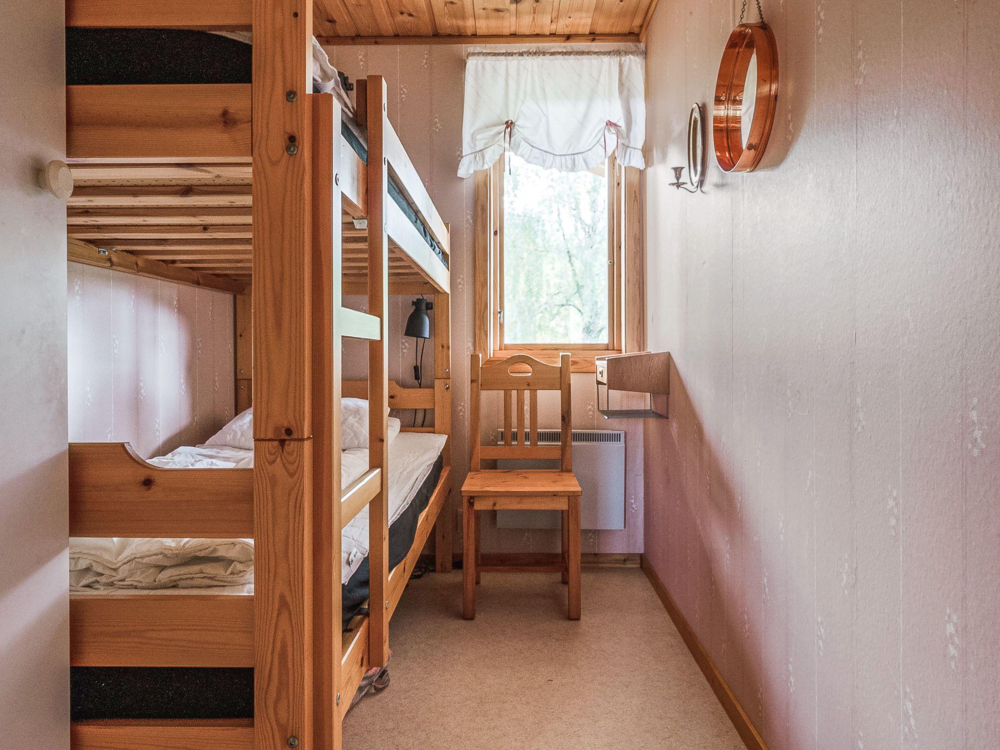 "Kvisthån Tallen", 6-room house 110 m2 on 3 levels. Object suitable for 6 adults + 2 children. Cosy and wooden furniture furnishings: dining room with open-hearth fireplace and dining table. 2 rooms, each room with 1 x 2 bunk beds. 1 room with 1 double bed. Open kitchen (3 hot plates, dishwasher, microwave, freezer, electric coffee machine). Shower/WC. Electric heating. On the lower ground floor: (steep stair) living room with open-hearth fireplace, TV and DVD. Shower/WC, Sauna. Electric heating. Upper floor: (ladder) open gallery with sloping ceilings, ceiling height 40 - 150 cm with 2 sleeping facilities. Wooden floors. Facilities: washing machine, iron, children's high chair. Internet (WiFi, free). Please note: non-smokers only. Maximum 1 pet/ dog allowed. Smoke alarm, fire extinguisher. Freezer approx. 45 l. Instead of an enclosed bedroom, some sleeping areas are located in an open-plan area (gallery, alcove, etc.). SE06291