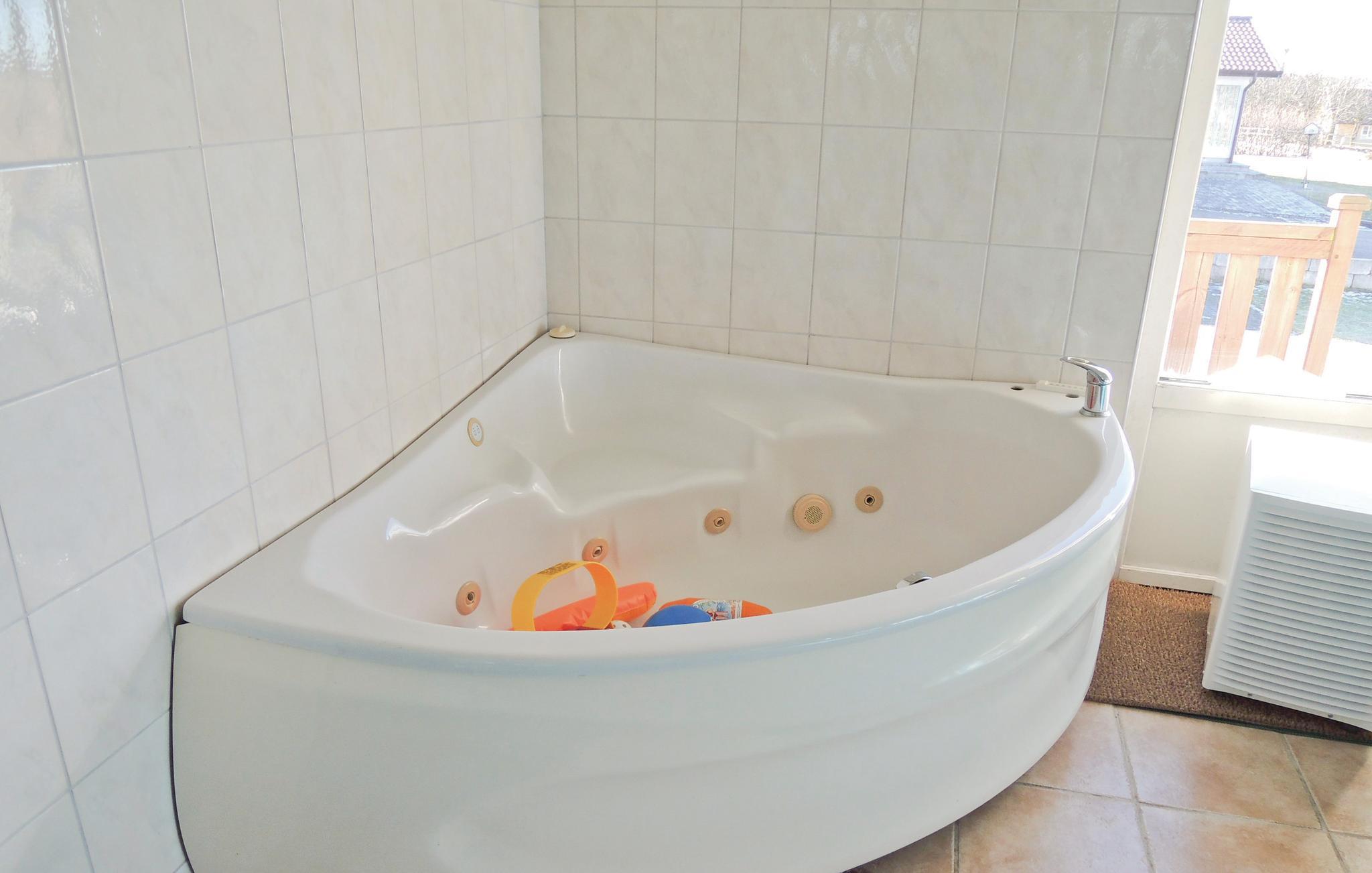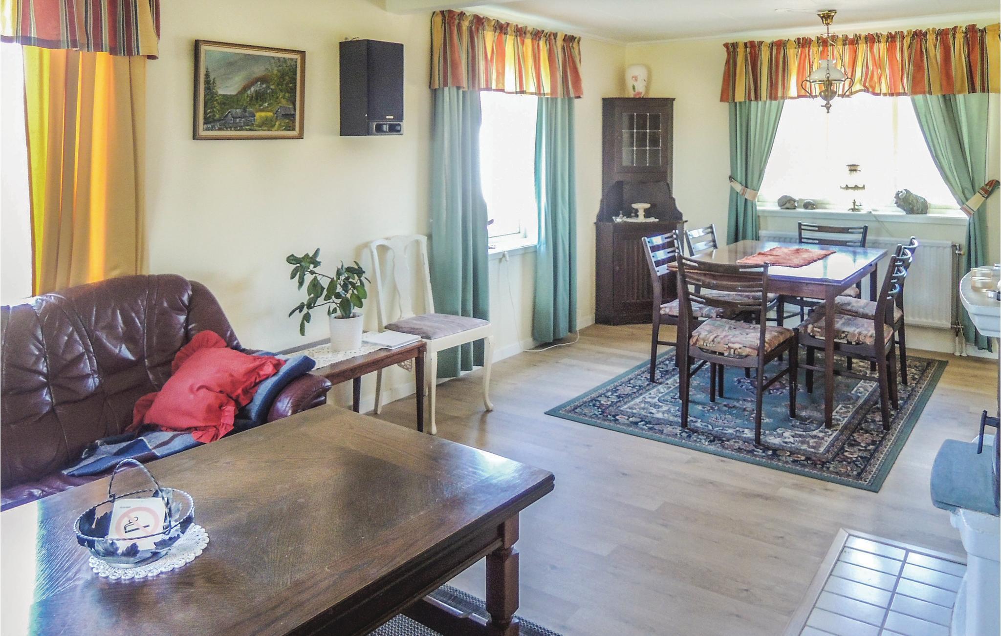 Forestil dig at træde ind i dette velholdte, hjemlige sommerhus og tilbringe årets smukkeste uger her. Møblerne giver dig følelsen af ??at være hjemme. Gå her i feriehverdagen og glæd dig til den store indendørs pool, spabad og sauna. Det indbyggede musikanlæg sikrer, at du kan nyde din yndlingsmusik og stemningen, mens du svømmer og bader. Træd ud fra poolrummet ud på den store sydvendte terrasse, hvor du kan slappe dejligt af. Huset byder på plads til hele din familie, så du finder også et sted at sove i hallen på anden sal. Dette hus tilbyder dig alt, hvad du ønsker fra en ferie. Cykler kan lejes og robåden på Sjöneavdsjön er inkluderet.