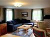 En anden gang, som hænger sammen med stuen, fører til det første, af de i alt fire soveværelser, som er indrettet med en dobbeltseng. En anden dør fra soveværelset fører tilbage til entréen. Fra entréen fører en trappe op til den rustikke øverste etage. Her er en stor stue med bordfodbold og dart, samt flere siddepladser. Heroppe befinder sig de tre andre soveværelser, hvoraf det ene er udstyret med en dobbeltseng og de to andre med to enkelt senge i hver, 2 af enkeltsengene kun er 180 cm lange.