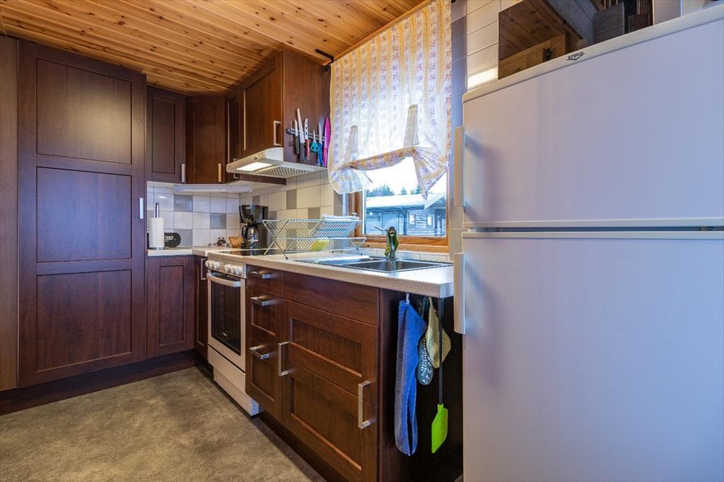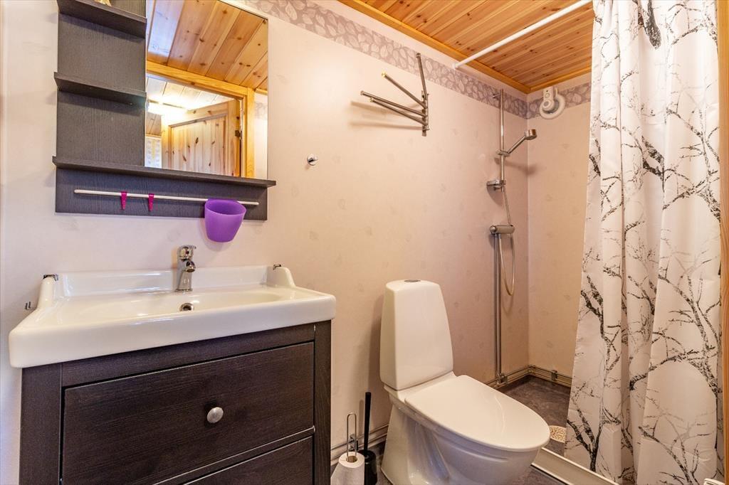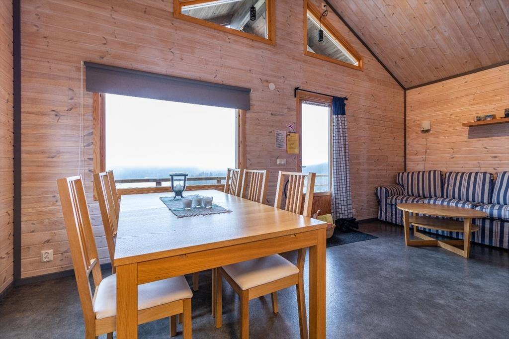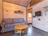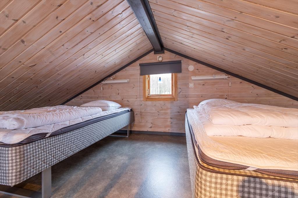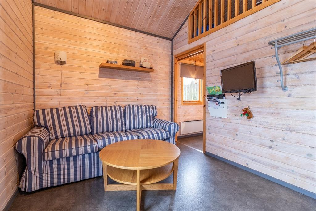 Træhuset byder på et boligareal på omkring 48 m² – heraf ca. 12 m² på sovehemsen – og giver plads til op til 6 personer. Det har tre soveområder: et soveværelse med dobbeltseng, en åben hems med to enkeltsenge samt en sovesofa til to personer i opholdsrummet. Den åbne stue og spisestue med TV (svenske kanaler) og DVD-afspiller skaber en hyggelig atmosfære. Det tilstødende køkken er udstyret med keramisk kogeplade med fire plader, ovn, emhætte, køle-/fryseskab, mikrobølgeovn og kaffemaskine, så du nemt kan tilberede dine egne måltider. Badeværelset har bruser og toilet. Huset er opvarmet med el.