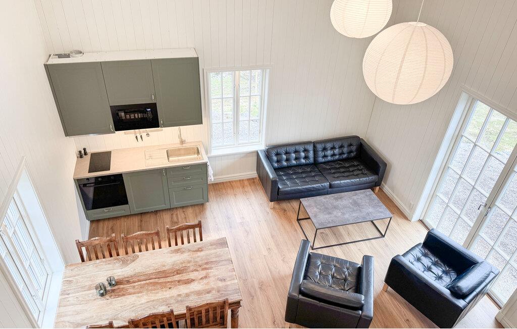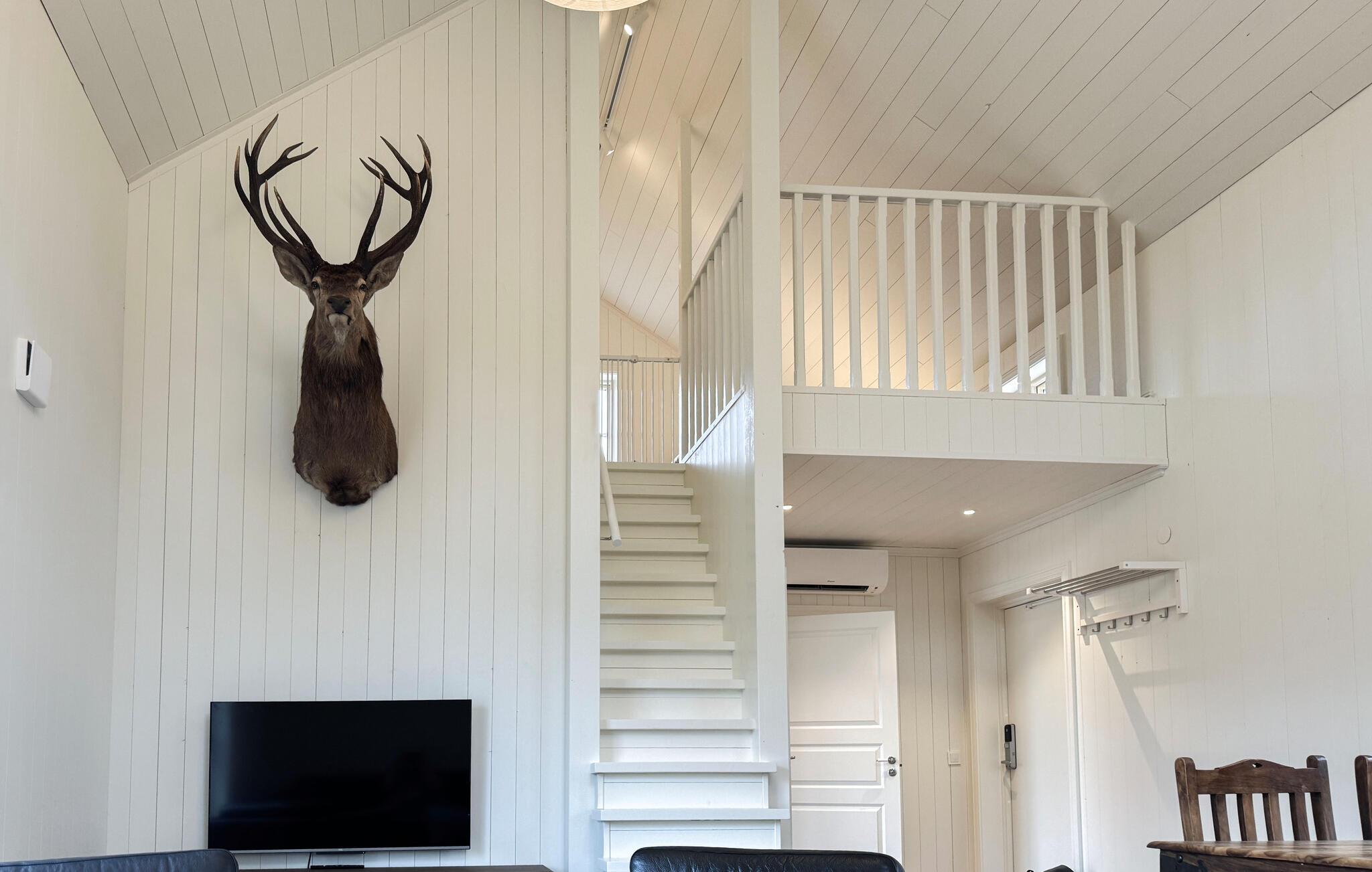 Nyd den lyse, åbne planløsning med højt til loftet. Sæt jer godt til rette i den komfortable sofa eller lænestole, og lad blikket vandre gennem de store vinduer og glasdøre, der problemfrit blander inde og ude. Tilbered jeres måltider i det moderne, diskret integrerede køkken, og brug det rummelige spisebord til fælles måltider. Træk jer tilbage til galleriet og nyd roen.