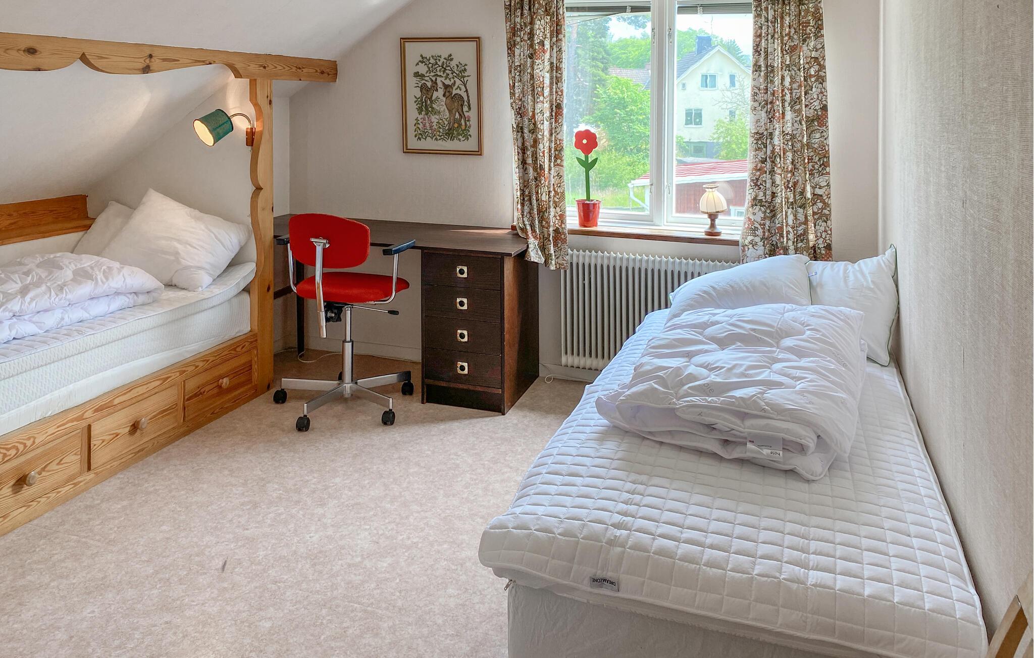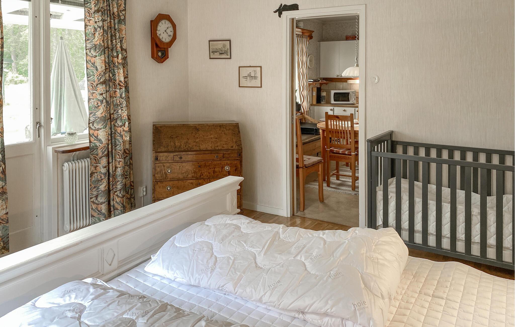 Rejs til Hällaryd, en idyllisk beliggenhed nær Vetlanda og Eksjö, og nyd en skøn ferie midt i naturen. Den hyggelige inretning med traditionelle træmøbler skaber en varm og indbydende atmosfære. Stuen er ideel til fælles afslapning eller koble af med en god bog. Spisebordet indbyder til leg og samvær, og køkkenet lokker med fælles madlavning.