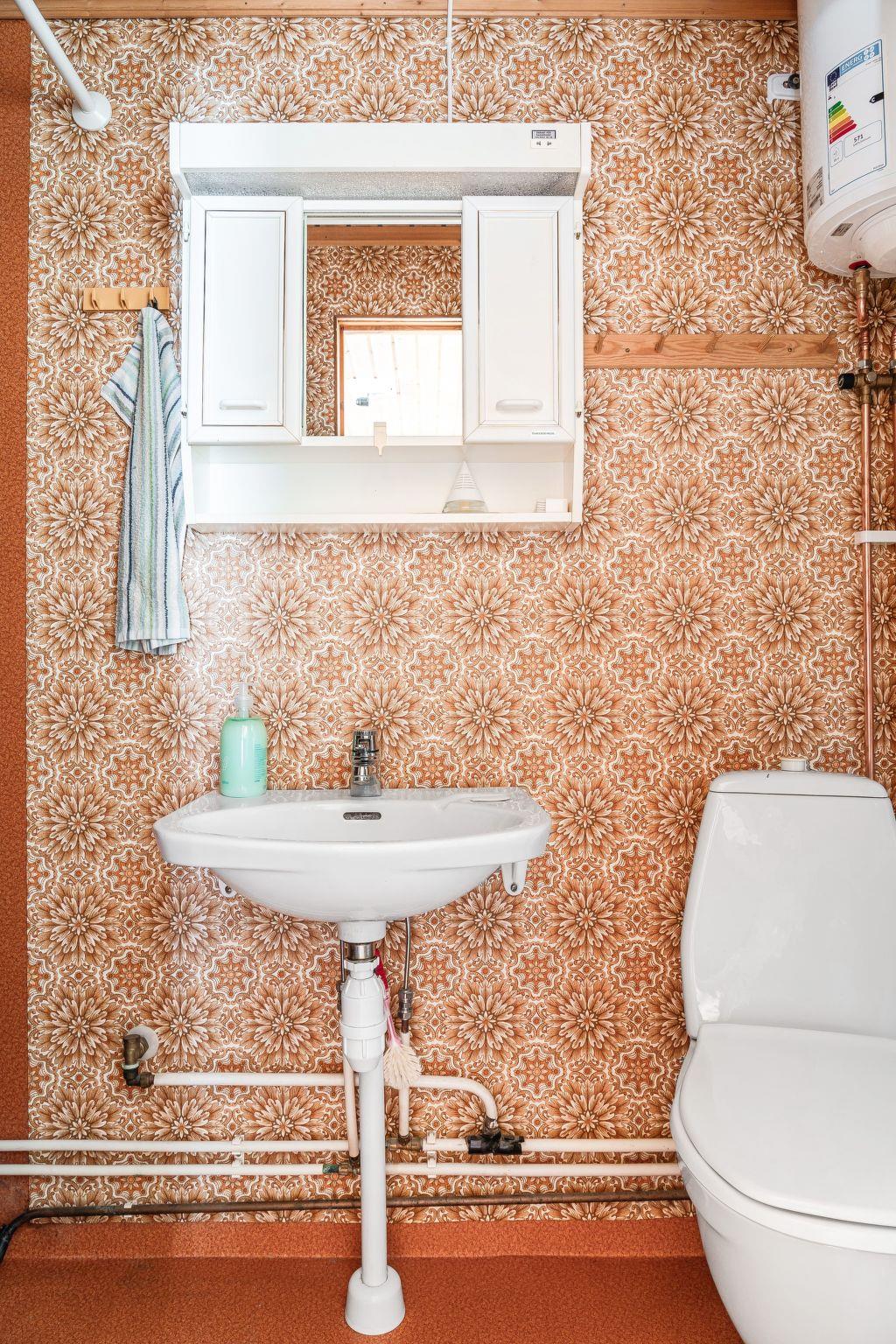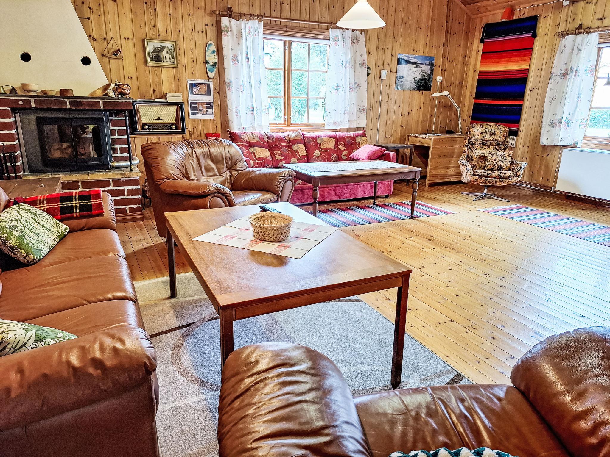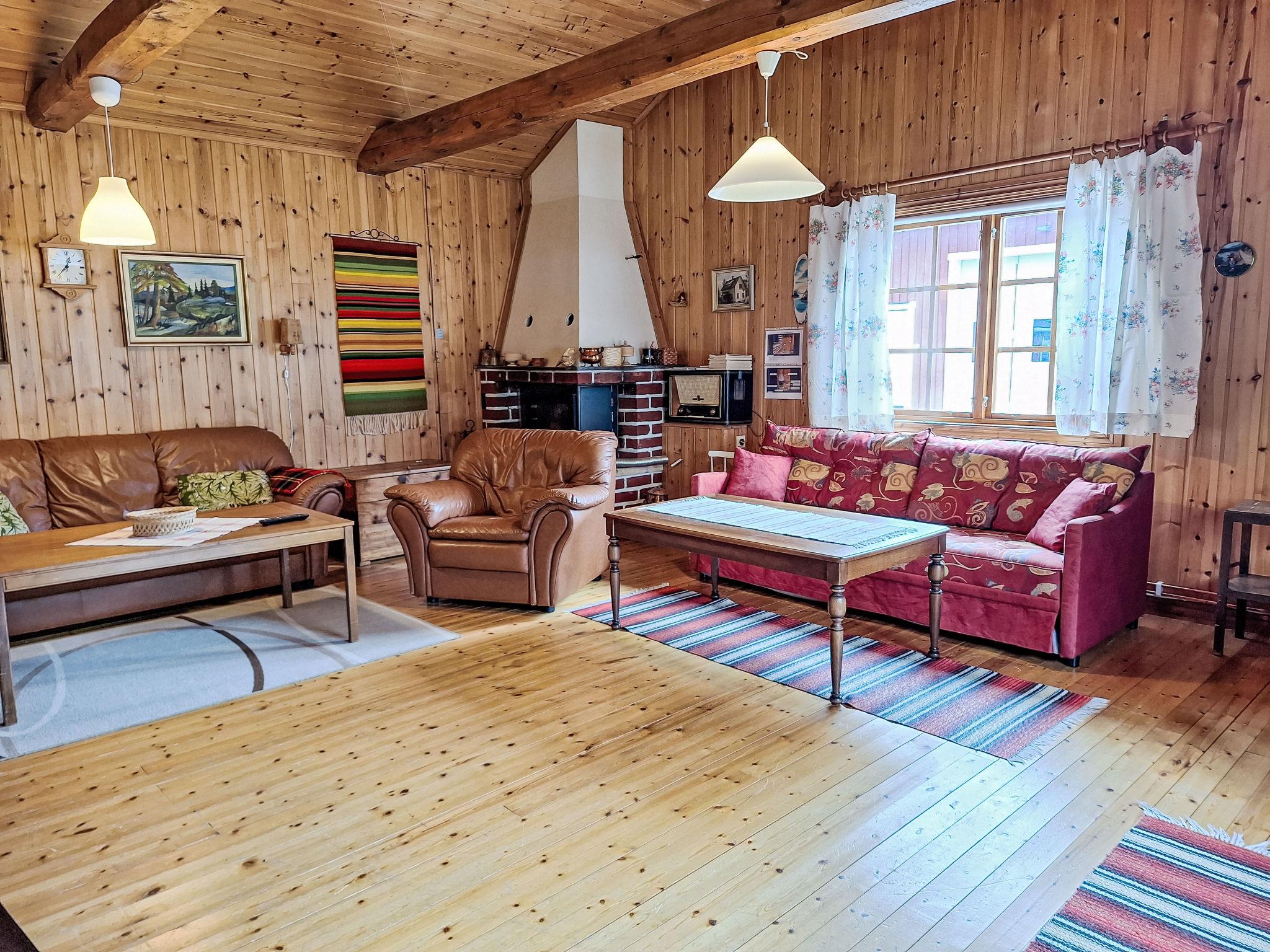 "Norrskensstugan", 2-room house 70 m2. Wooden furniture furnishings: living/dining room with 1 double sofabed, open-hearth fireplace and TV. 1 double bedroom with sloping ceilings with 1 bed (120 cm, length 200 cm), 1 sleeping facility (90 cm, length 200 cm). Open kitchen (4 hot plates, oven, toaster, kettle, microwave, freezer, electric coffee machine) with dining table. Shower/WC. Forced-air heating. Wooden floors. Terrace furniture. Beautiful view of the forest. Facilities: Internet (WiFi). Please note: non-smoking house. Smoke alarm, fire extinguisher. Instead of an enclosed bedroom, some sleeping areas are located in an open-plan area (gallery, alcove, etc.).