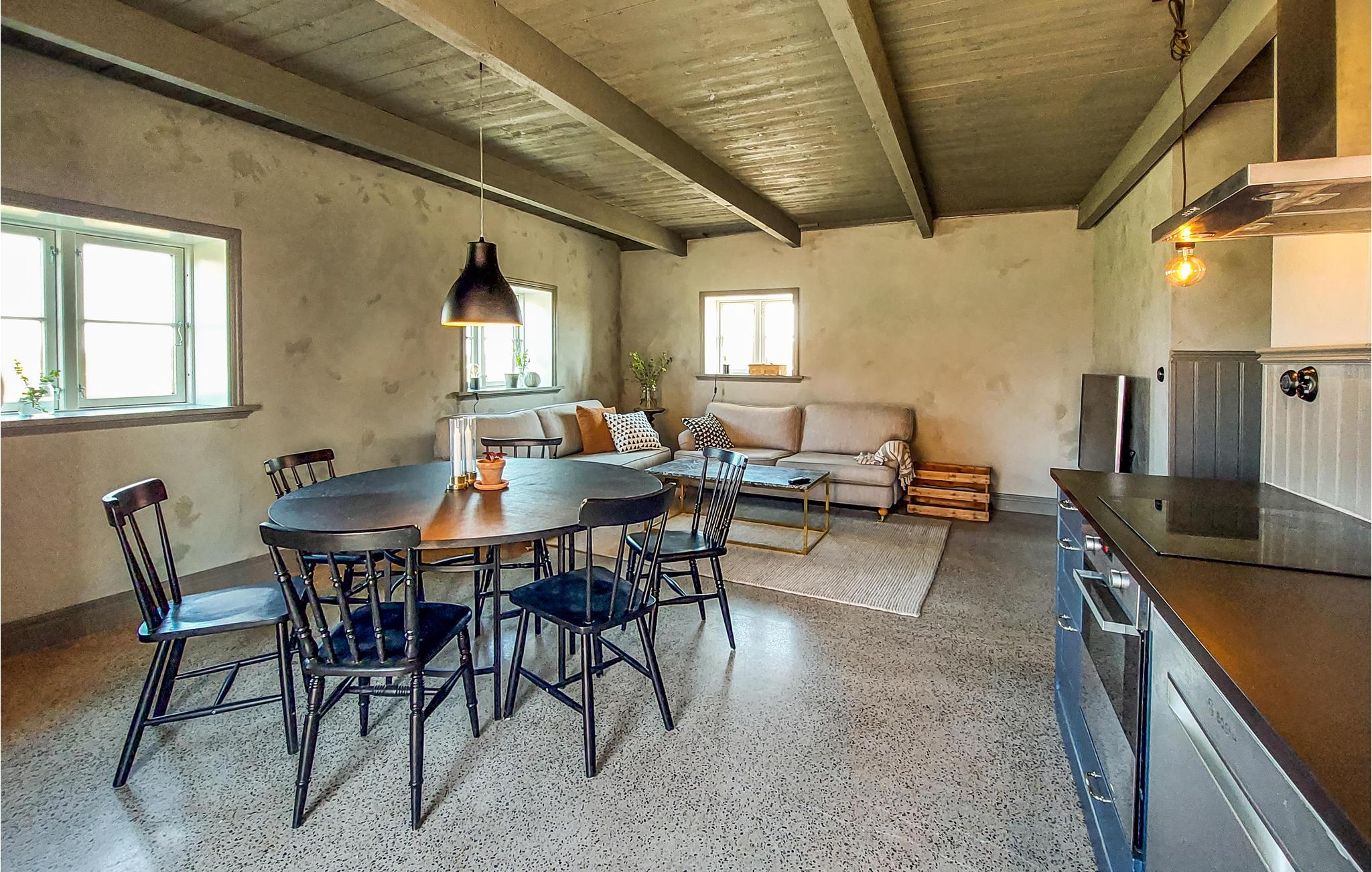 Tilbring en uforglemmelig pause med familien i dette indbydende hus med historisk charme. I det indre af huset, som er komfortabelt indrettet i moderne landhusstil og med attraktive farver, har I masser af plads til en dejlig samvær. Saml hele familien til en lækker middag ved det lange spisebord og sæt jer senere til rette sammen i sofaen.