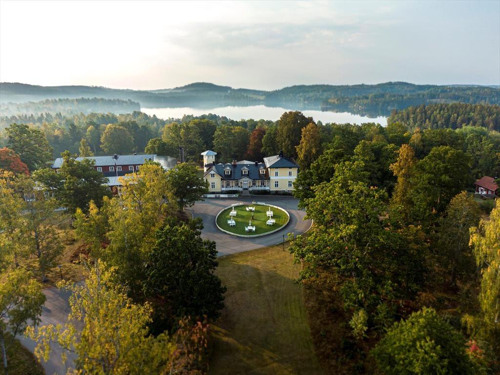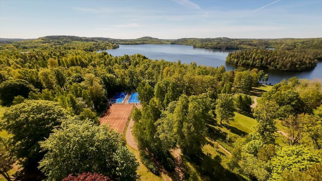 Lige neden for hotellet ligger søen Gissen, og fra hotelhaven går I direkte ned til hotellets egen badebro med sauna. Her kan du også leje robåde og en kano. Tobo Golfklub med 18 huller ligger lige uden for døren. Derudover kan du (mod betaling) spille minigolf, gratis benytte petanquebanen og udfolde dig på tennisbanen eller de to padelbaner. For børnene er der en legeplads i hotelhaven, kæmpeskak og en boldbane. Om sommeren kan du også leje cykler og tage på cykeltur til Bullerbü – eller Sevedstorp, som det hedder i virkeligheden – ca. 15 km. Katthult-gården fra Emil fra Lønneberg ligger heller ikke langt væk, ligesom Filmbyen Småland. I Virum Elgpark kan du få et “elgkys” og tage på elgsafari. Om vinteren venter der jer en oplyst langrendsløjpe lige uden for døren samt mulighed for at stå på skøjter på søen. Den nærmeste lille dagligvarebutik (ICA Nära) ligger i Storebro, ca. 3,5 km væk. Større supermarkeder findes i Vimmerby (ca. 14 km) eller Hultsfred (ca. 12 km). I Vimmerby er der desuden mange caféer og restauranter. Lige på stedet finder I – ud over restauranten i herregården – også golfrestauranten ved Tobo Golfklub, kun få minutters gang væk (åben i højsæsonen).