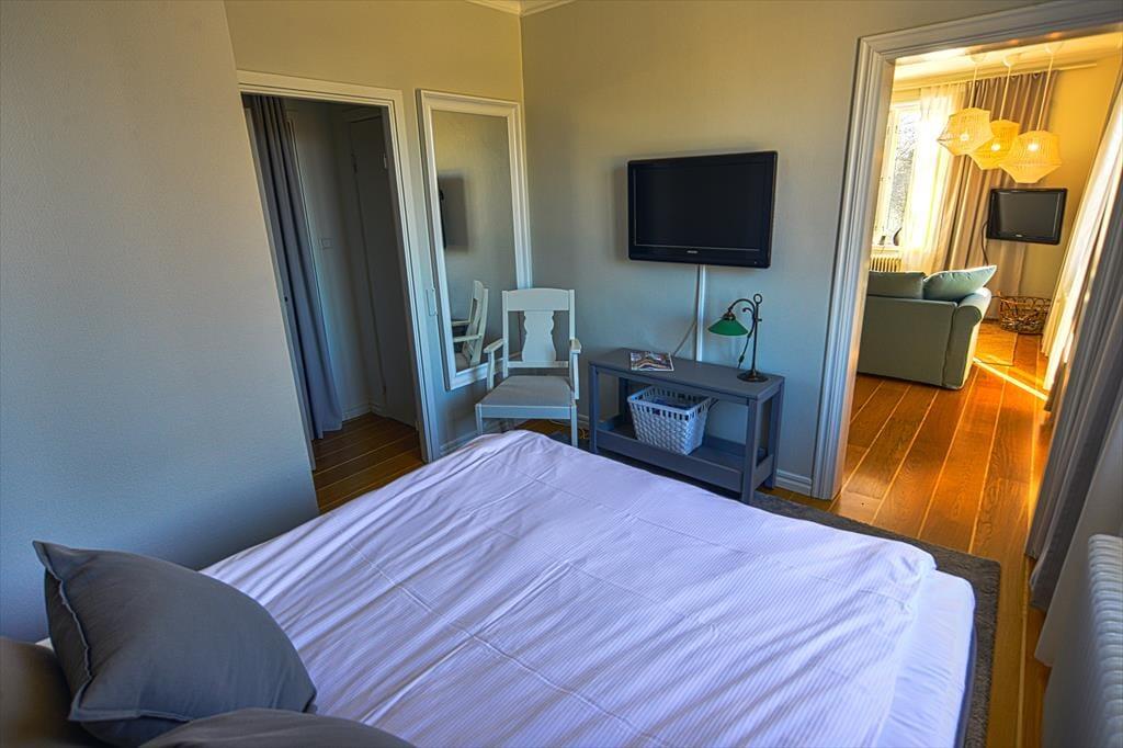 Ferielejligheden Michel ligger i hovedbygningen på herregården fra 1875. Her mødes svensk charme med hotelkomfort. I lavsæsonen er der gode chancer for, at du næsten har hotellets fællesarealer for dig selv, og at der kun er få andre gæster. Du kan nyde hele herregården i ro og mag. Sengelinned og håndklæder samt slutrengøring er inkluderet i lejeprisen, ligesom brug af sauna. Tennis- og padelbaner kan lejes. Ankomst- og afrejsedage kan vælges frit, og også et kort ophold er muligt.