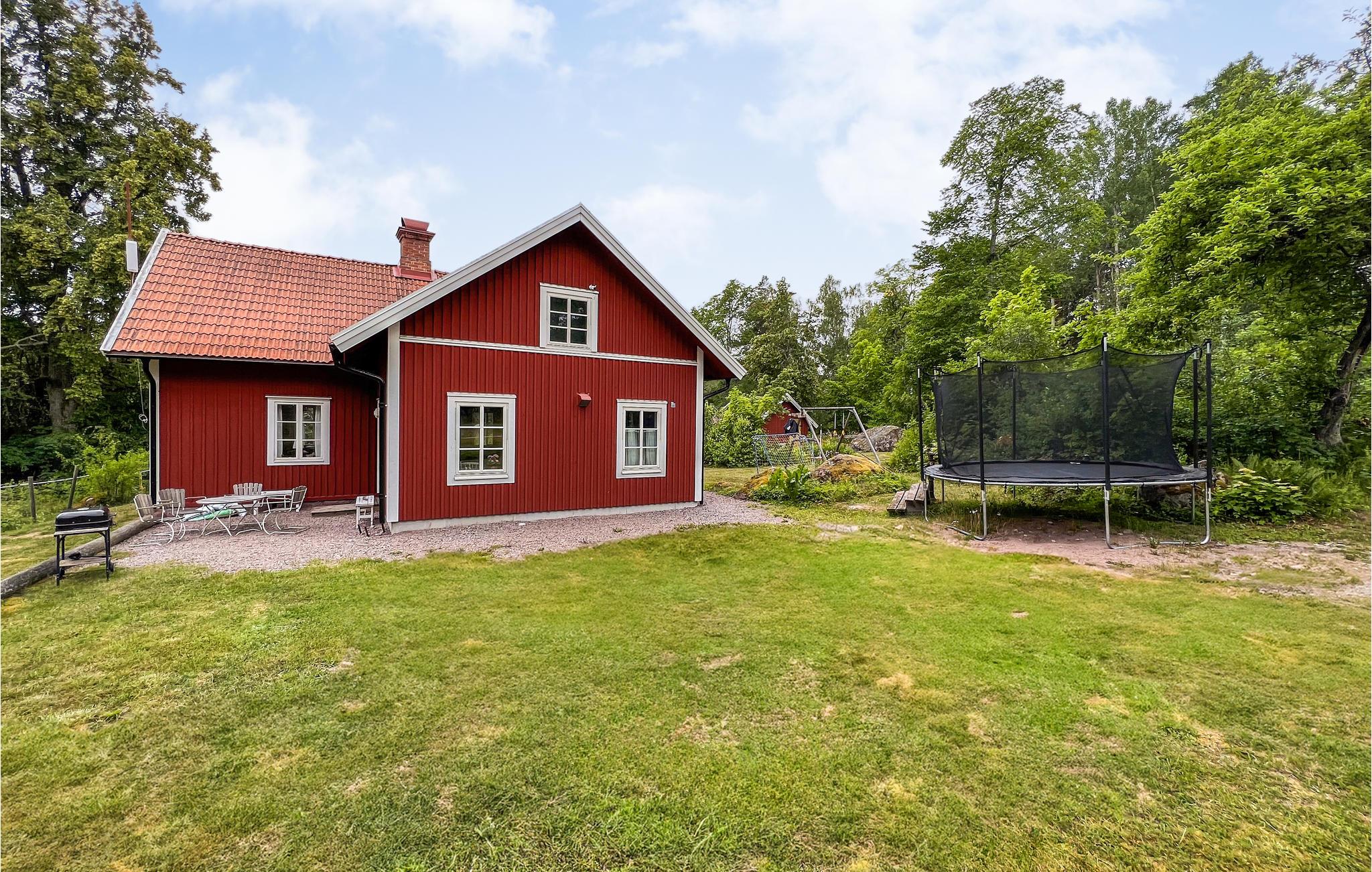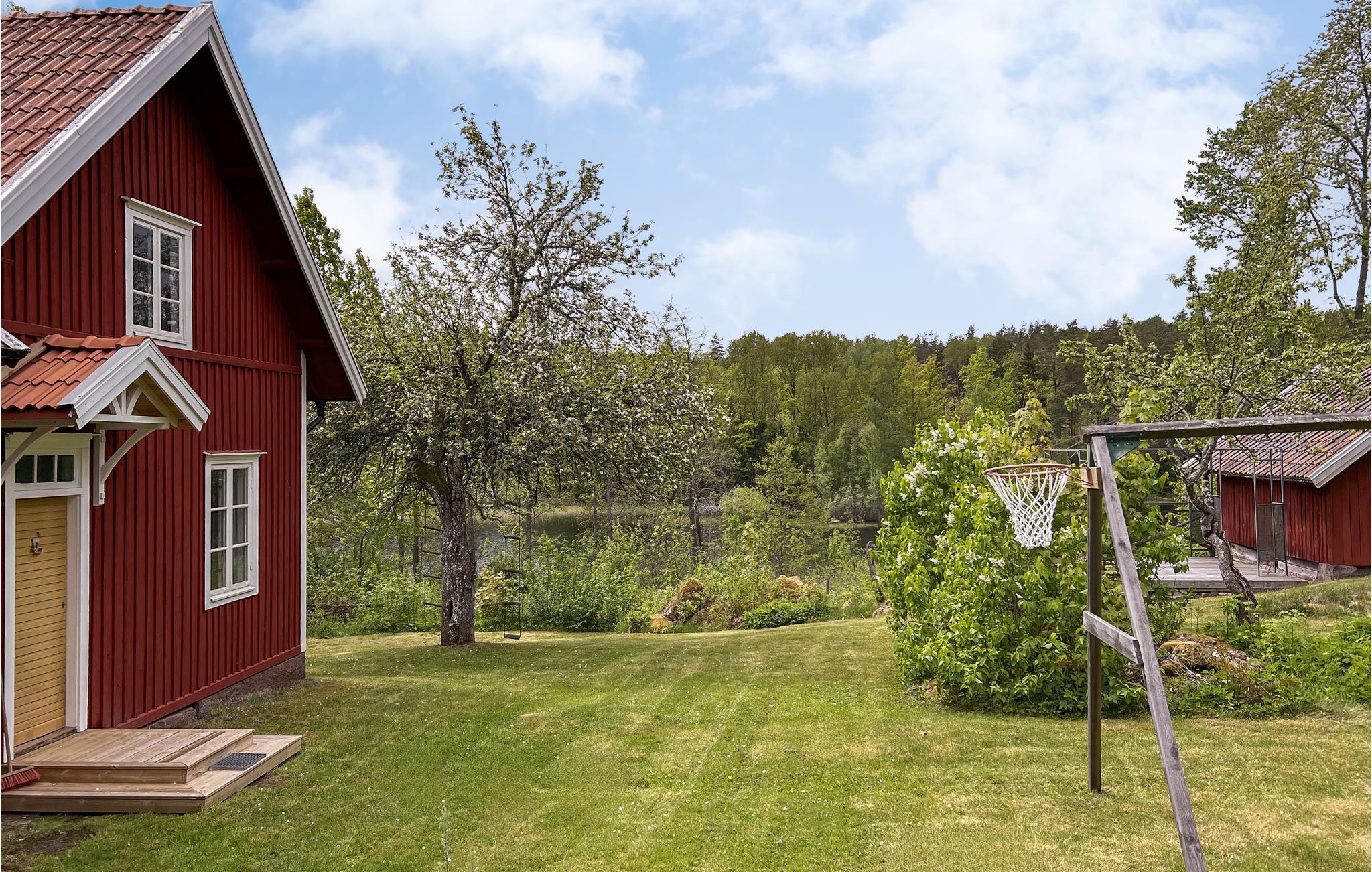 Kunne I tænke jer at bo ud til en skovklædt beliggenhed lige ved vandet? Så se nærmere på dette hus. Det fine lille hus ved Hemsjön er det perfekte valg for lystfiskere og vandhunde, især børnefamilier. Her kan I trække jer tilbage efter dagens eventyr og nyde dejlige måltider i spisekøkkenet og spille kort om aftenen. Nyd solen på terrassen, mens børnene gynger, spiller fodbold, hopper på trampolinen eller klatrer i træet.