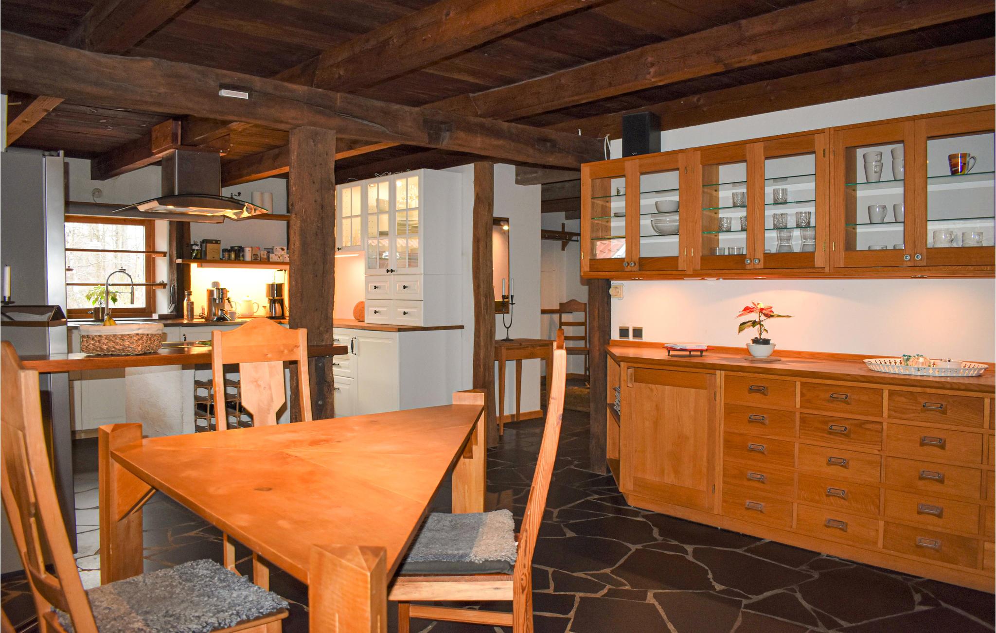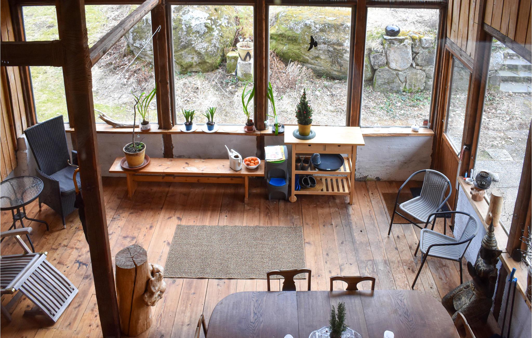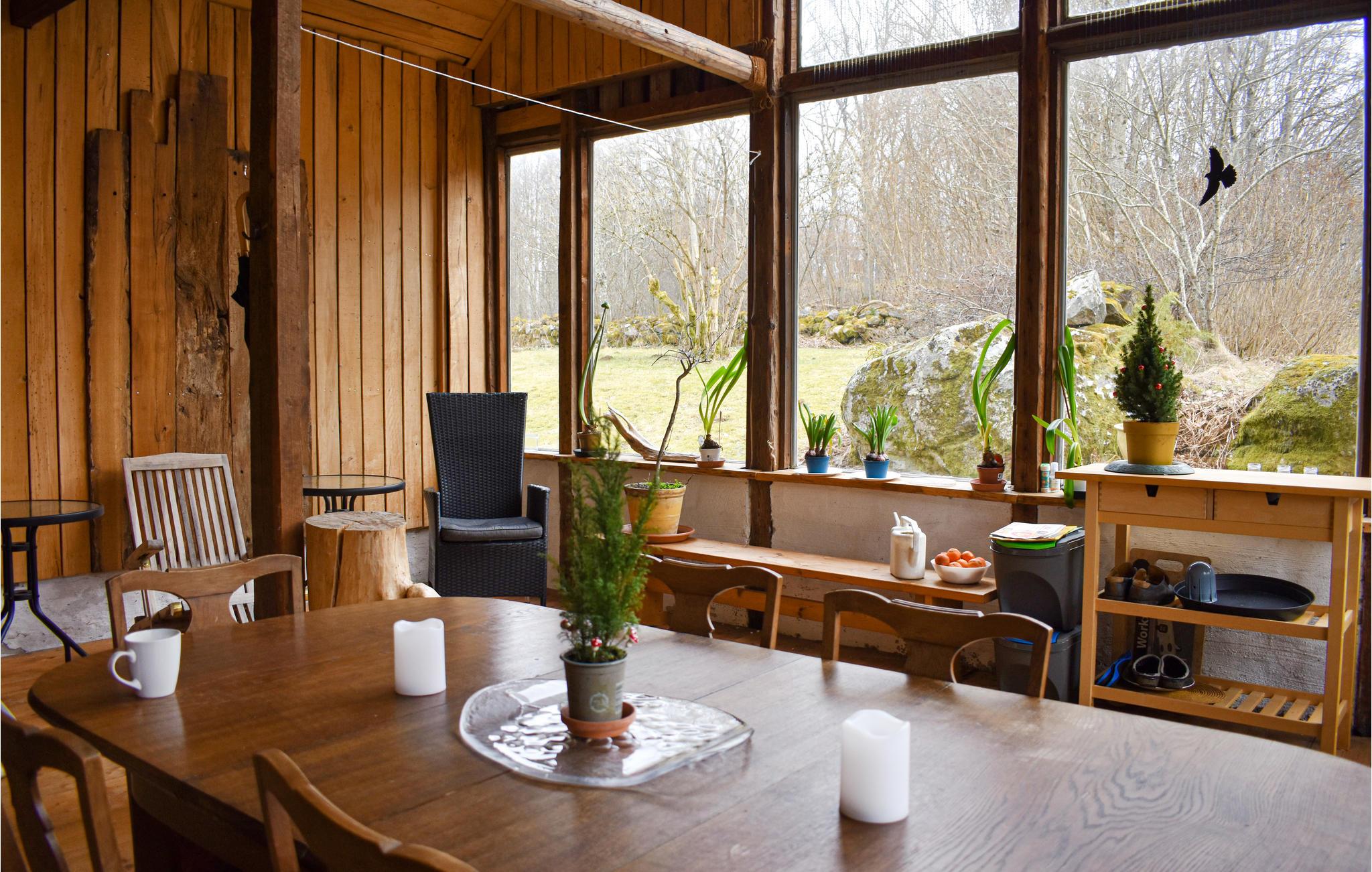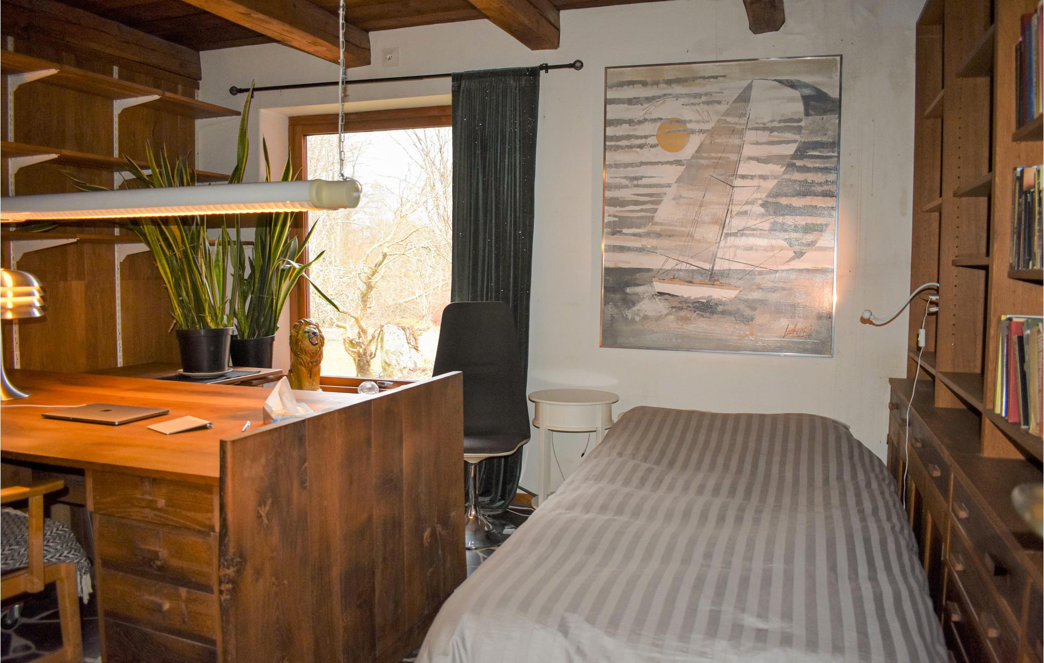 Her bor du midt i smuk natur med mulighed for at se rådyr i haven og at tage på mange udflugter til fods eller på cykel. Huset byder på en usædvanlig smuk indretning med masser af træelementer og fine detaljer. Takket være en projektor med stort lærred er en aften med hjemmebiograf også mulig her.