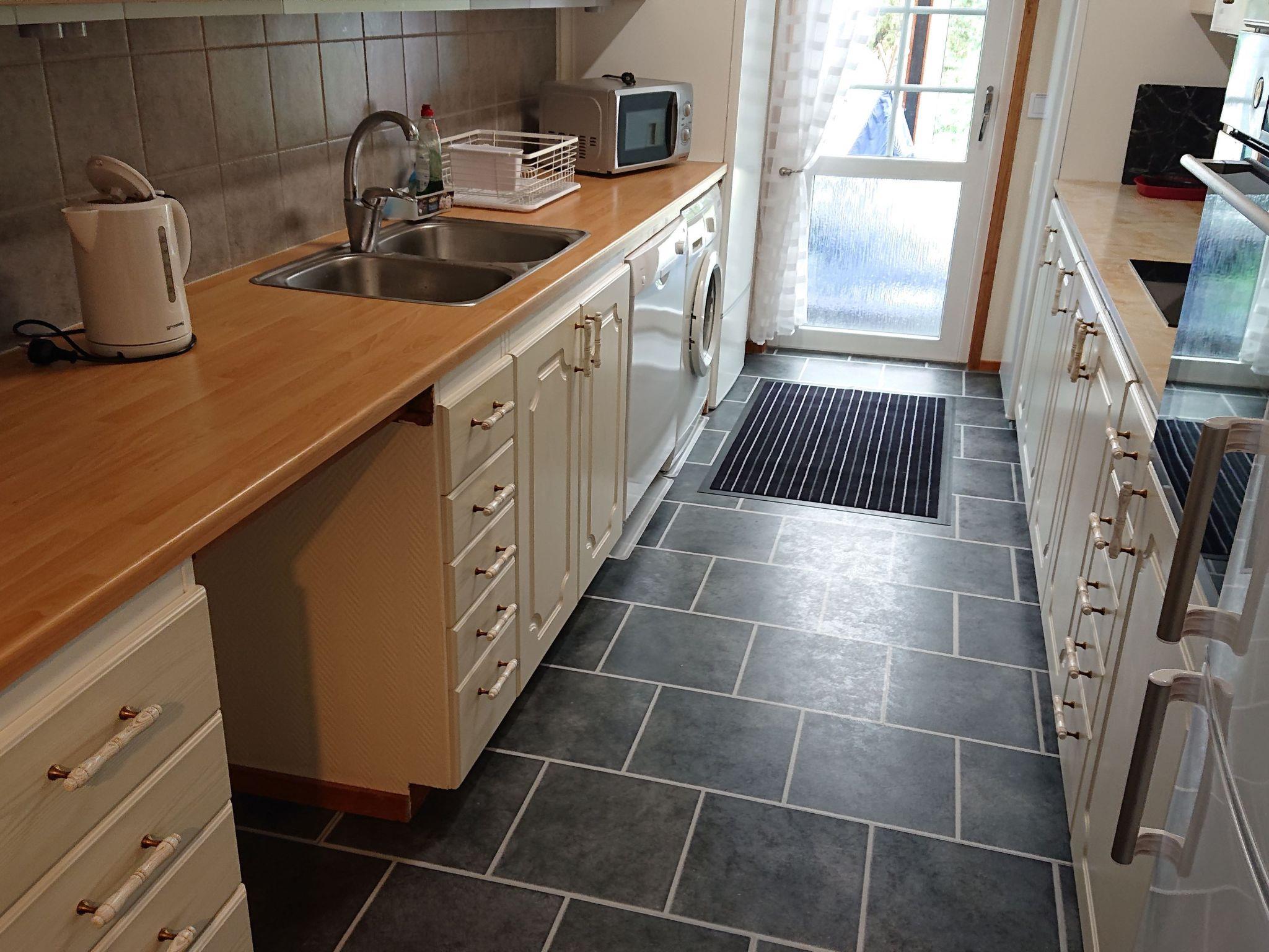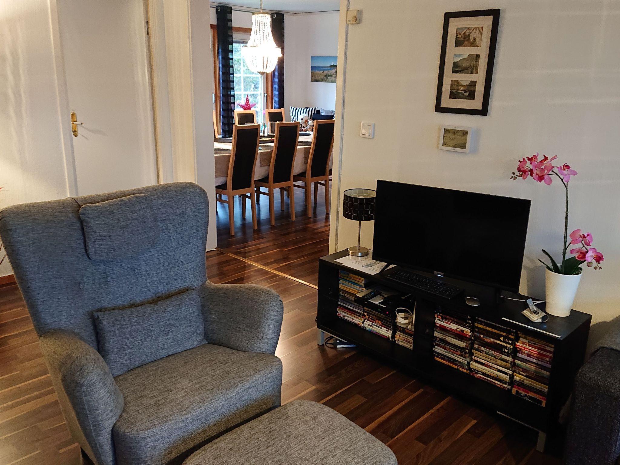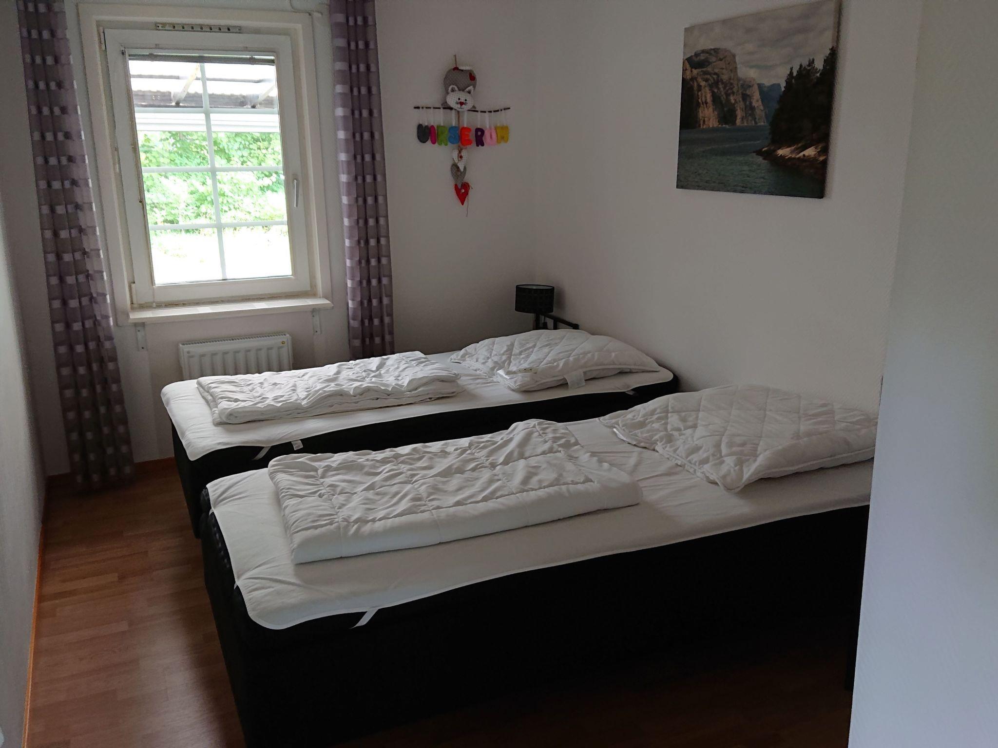 The house has a modern, cosy Scandinavian interior, furnished with attention to detail and equipped with all the necessary utensils for a pleasant and relaxing stay. Enjoy lovely evenings by the open fireplace with a flue lining. Or you can have breakfast in the morning sun on the roofed terrace, with a view over town. Cable TV with a USB port and more than 20 Swedish and some English channels is available, along with free Internet access and a selection of board games for all ages. Some German films are available on DVD. The house with around 100m² of living space can accommodate a maximum of eight people and features an open layout in combination with furnishing of a high standard. It has two separate bedrooms each with two single beds (90 x 200cm). The living room with a fireplace provides two sofa beds each for two people (140 x 200cm). There is also a sofa bed (90 x 200cm) in the dining area. A cot and a highchair complete the family-friendly furnishing. The property is of course heated and habitable in winter. All the rooms have electric radiators. There is also a heat pump which ensures that the house can be heated quickly, along with the fireplace.