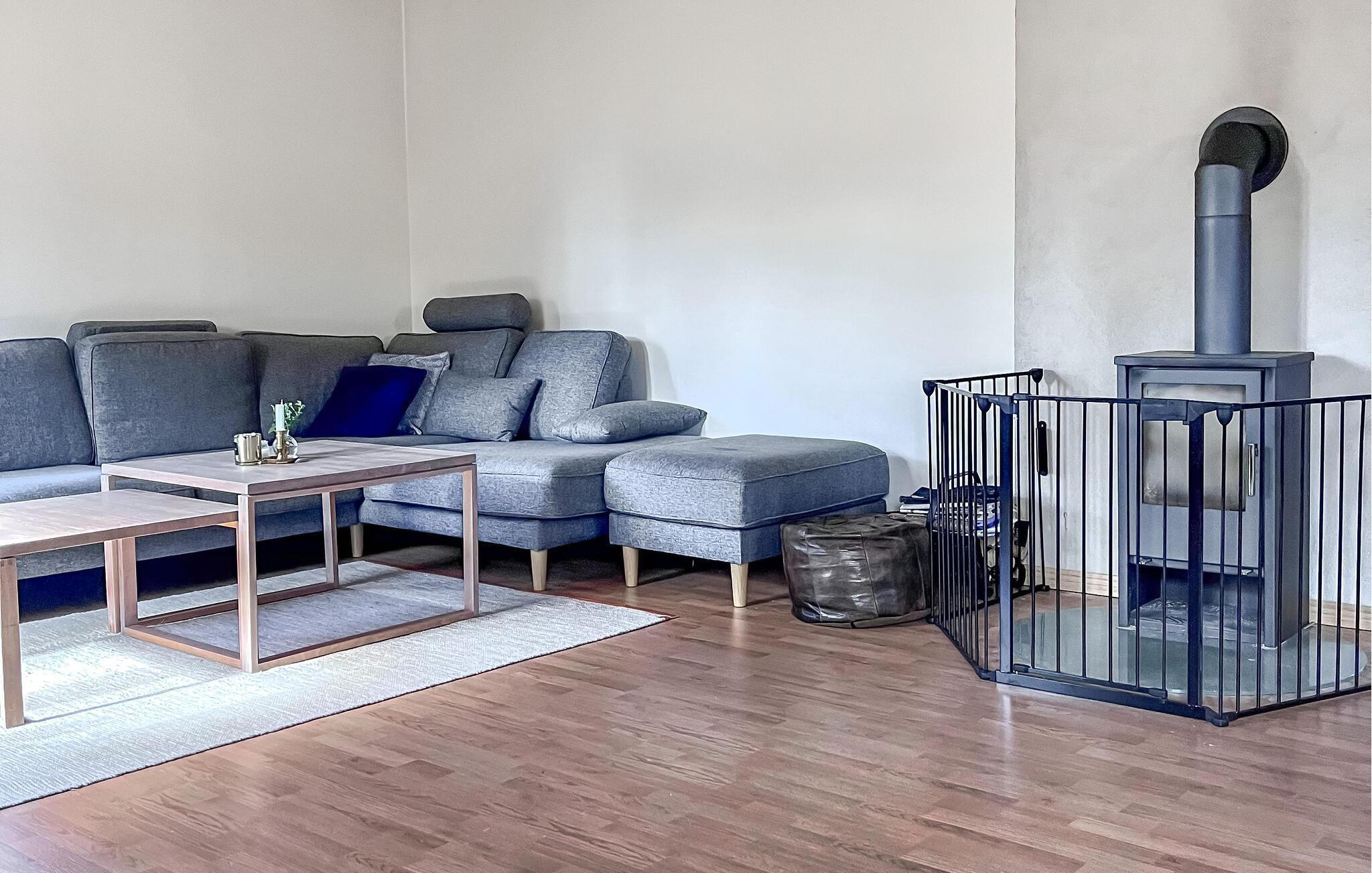 friluftsmennesker og passionerede lystfiskere vil blive begejstrede for beliggenheden af ??dette komfortable feriehus. Det lyse, smagfulde interiør giver jer masser af plads til at tilbringe tid sammen med hele familien. Planlæg jeres aktiviteter over harmoniske måltider, og efter en lang dag udendørs kan I læne jer tilbage i sofaen, mens den norske brændeovn bader rummet i hyggeligt lys.