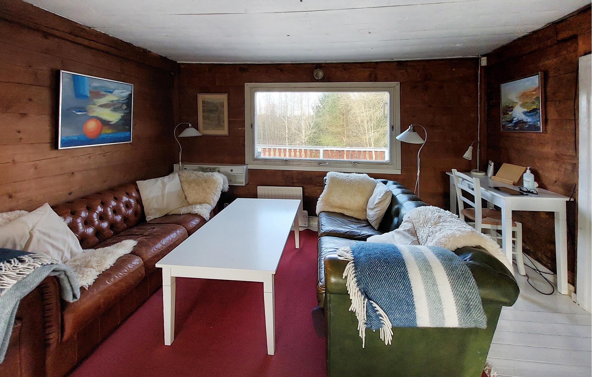 Rejs og glæd jer til en pause i dette feriehus. Den charmerende bjælkehytte emmer af hygge og byder velkommen med flot indrettede fællesrum, hvor I kan nyde aftenerne ved den knitrende brændeovn. Det moderne køkken lægger op til at lave mad sammen, mens den store terrasse med udsigt til den omkringliggende natur lægger op til hyggeligt samvær. Her kan I tilbringe afslappende timer og nyde den friske skovluft. Den store ejendom med lysthus byder på masser af plads til sociale stunder udendørs.