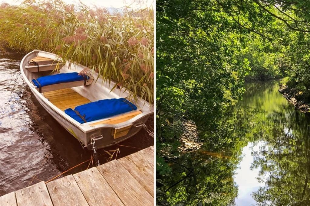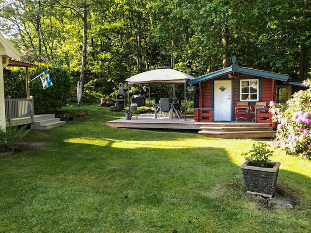 Sommerhuset ligger i den sø- og skovrige natur i det sydlige Sverige, direkte ved den klare sø Tolken. Den rummelige natur- og græsgrund er ca. 1.900 m² og ligger ca. 30 m fra nærmeste nabo. Kun ca. 40 m adskiller dig fra egen privat båd- og bro med robåd med elmotor – perfekt til afslappede bådture eller fiskedage på søen. Bemærk venligst, at du skal krydse en landevej for at komme til søen.