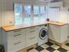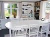 Husets indre er indrettet i typisk landstil med trævægge, smukke detaljer og lyse rum. Den store stue byder på rigelig plads til fælles stunder. Slap af i de komfortable lænestole ved den åbne pejs, eller nyd en god bog i det bløde lys fra de store vinduer. Spisebordet indbyder til lange aftener med god mad og hyggelige samtaler. I køkkenet kan I nemt lave mad sammen og føle jer helt hjemme.