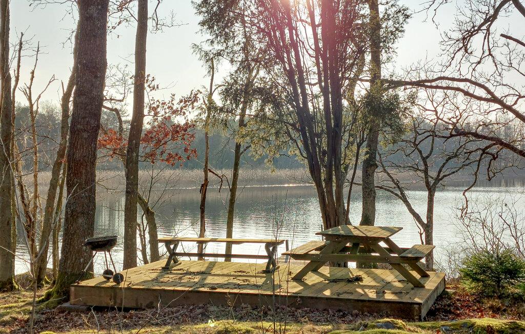 Tilbring tid i den store have eller følg stien til vandet. I kan opleve naturen helt tæt på træbadebroen eller på den lille platform med picnicbænke og grill. Find jer godt til rette med en kop kaffe eller lav aftensmad under åben himmel. Udsigten over søen skaber en helt særlig følelse af ro.