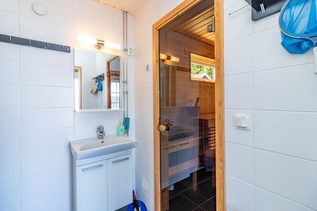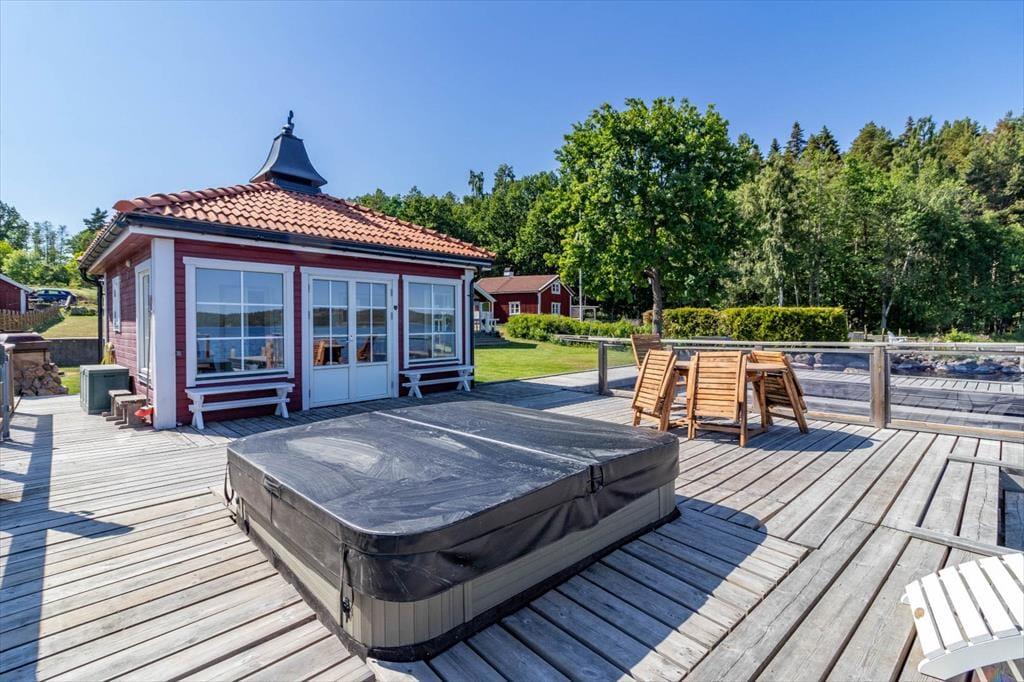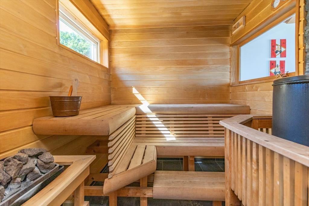Derudover er der en sauna, som kan varmes elektrisk eller med brænde, samt et badekar/jacuzzi på terrassen foran saunahuset. Det inkluderede motorbåd (5 hk) ligger klar ved bryggen.