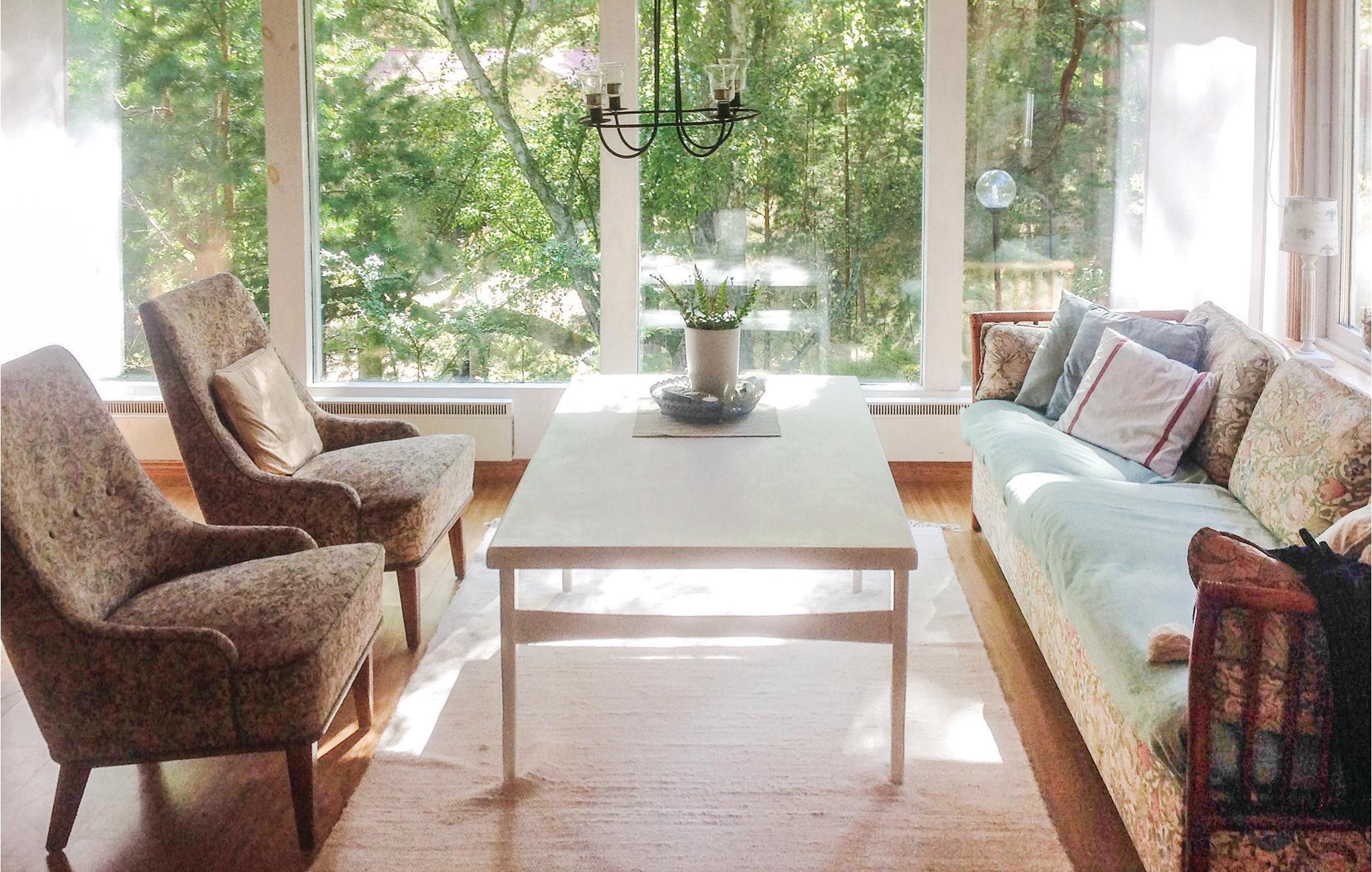 Hyset er lyst og hyggeligt indrettet, og de store vinduespartier giver jer masser af lys, samt mulighed for at nyde den smukke natur, der omgiver huset.
