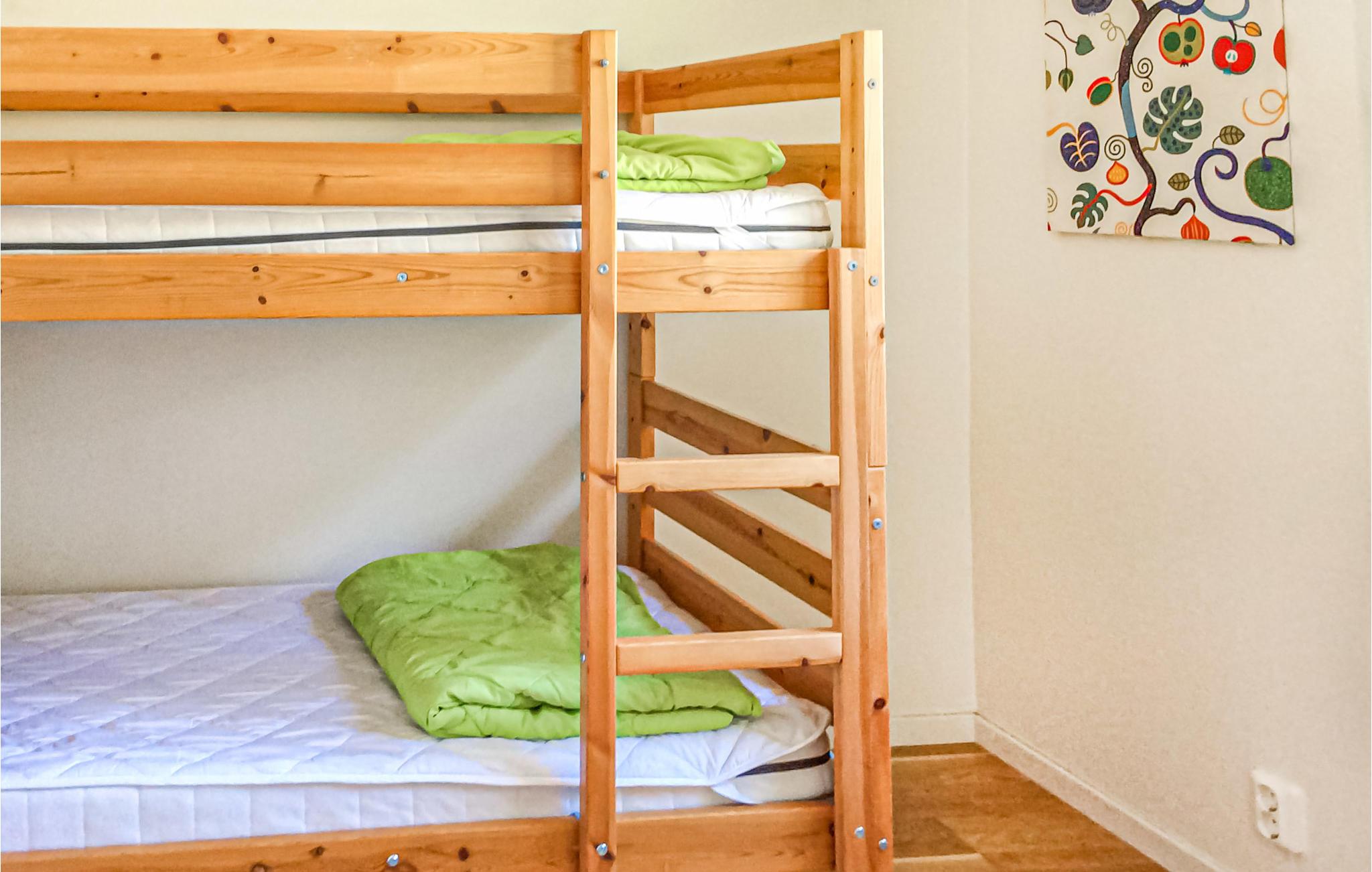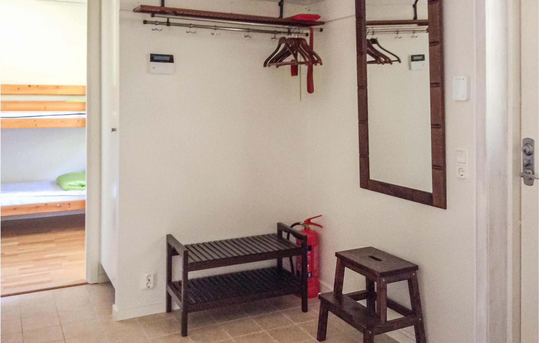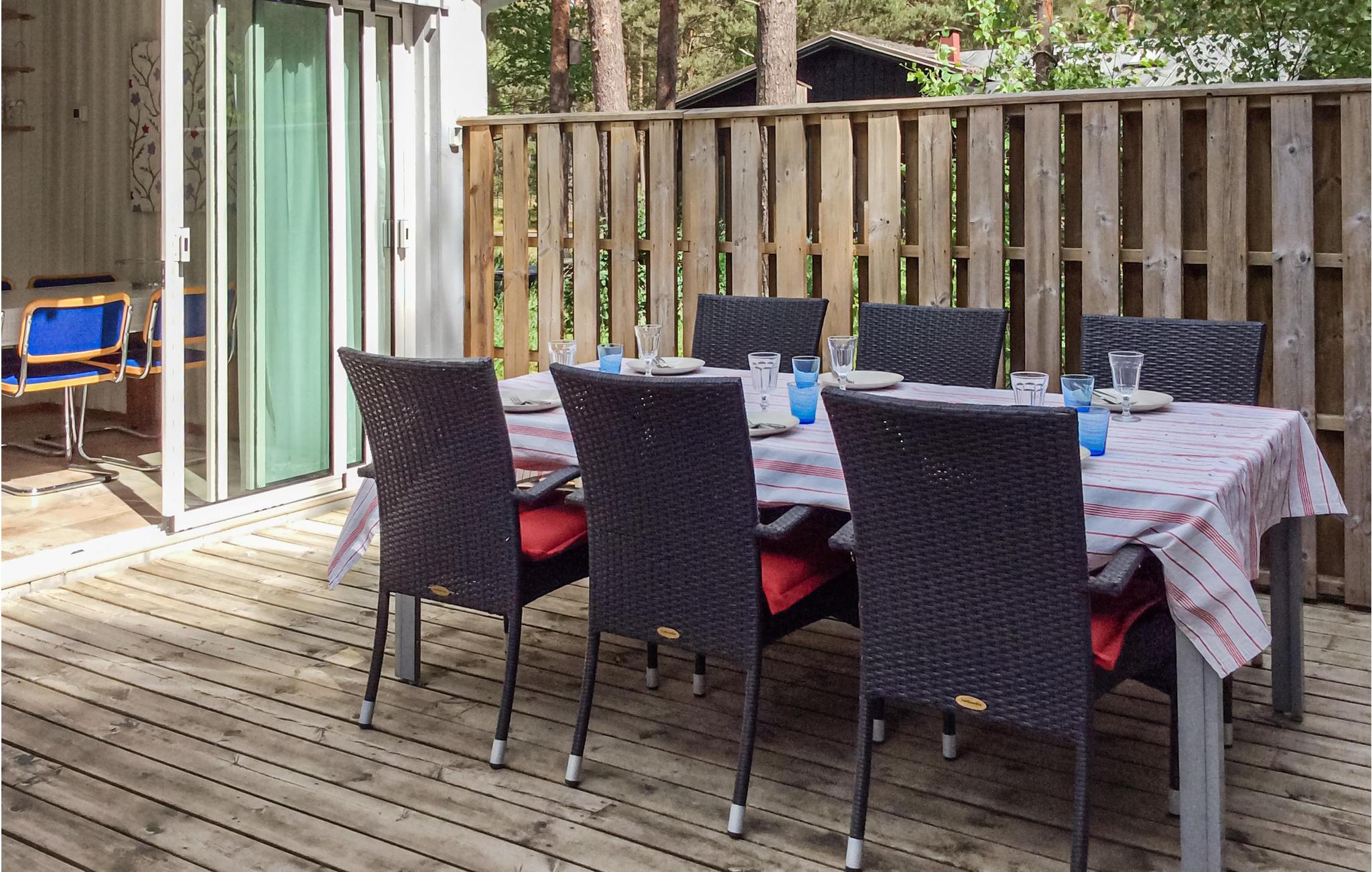 Her kan der med fordel bo to familier. Hovedhuset har to soveværelser og en stue med pejs. I det store anneks er der en kombineret opholdsstue og soveværelse. Et stort trædæk omgiver husene. Der er også et glaseret udendørsrum med gulvvarme.