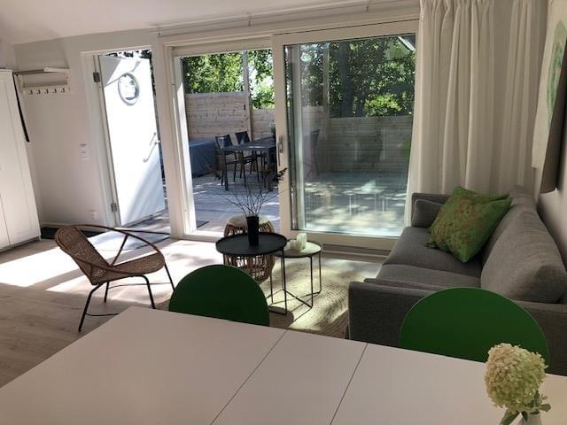 I anden række til Nybrostrand ligger dette nyopførte sommerhus fra 2024 med samme navn. Der er kun 70 meter til den bløde, hvide og børnevenlige sandstrand, og en svømmehal finder man efter omkring 800 meter. Den nærmeste indkøbsmulighed ligger mindre end 1 km væk, og til den charmerende havneby Ystad er der kun 10 km. Du kan ankomme i bil via Øresundsbroen fra København til Malmö eller med færge fra Travemünde eller Rostock til Trelleborg. Fra Trelleborg er der blot omkring 60 km til sommerhuset.