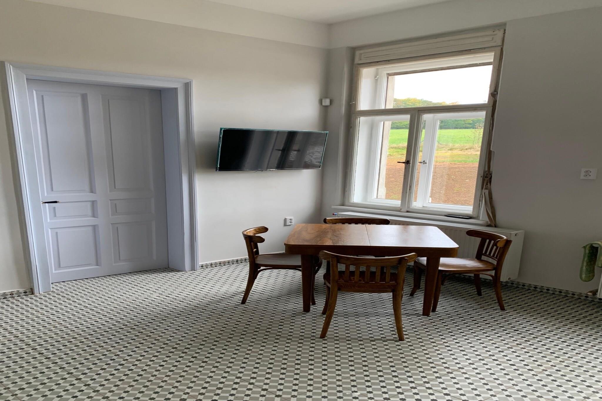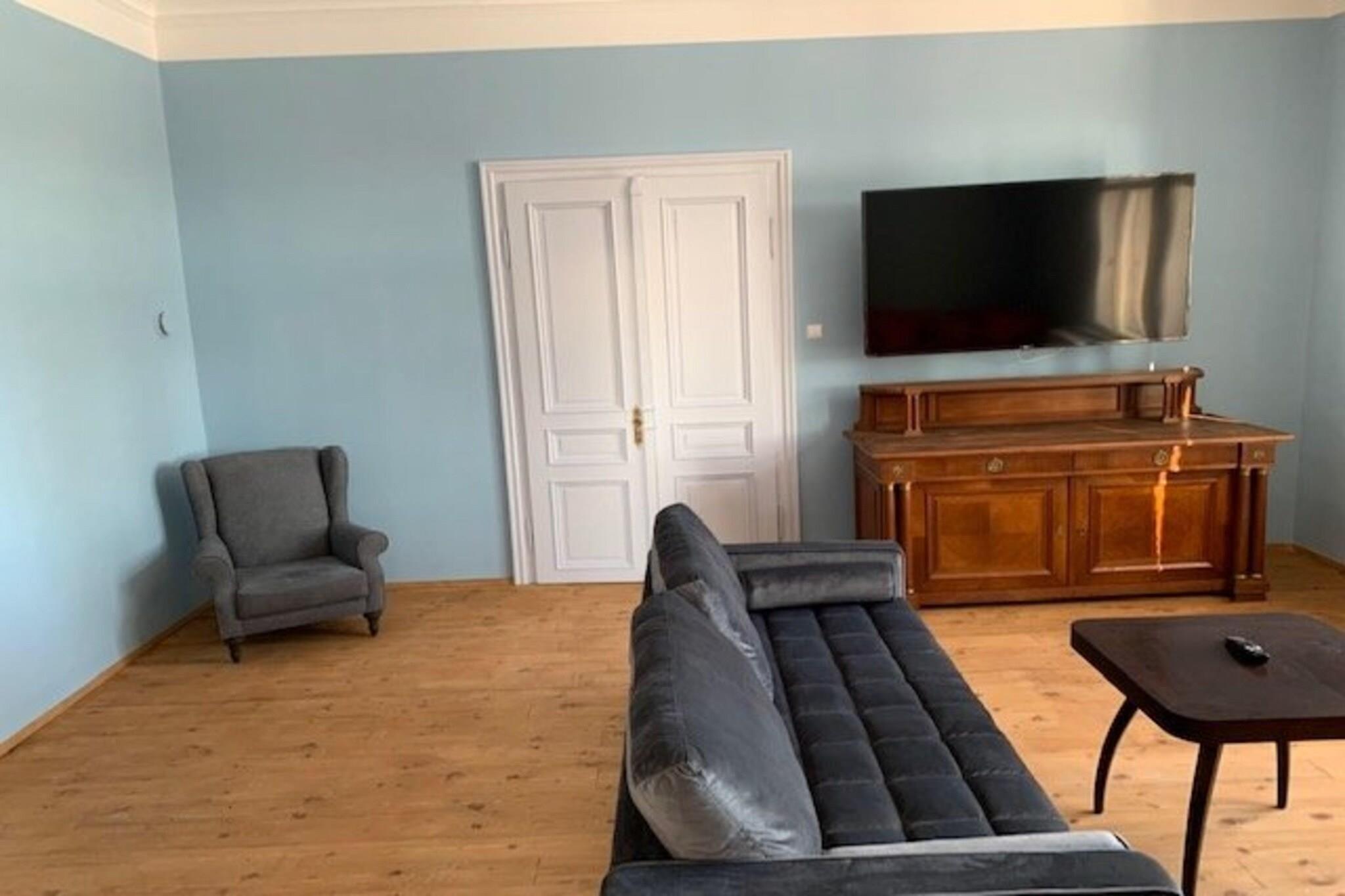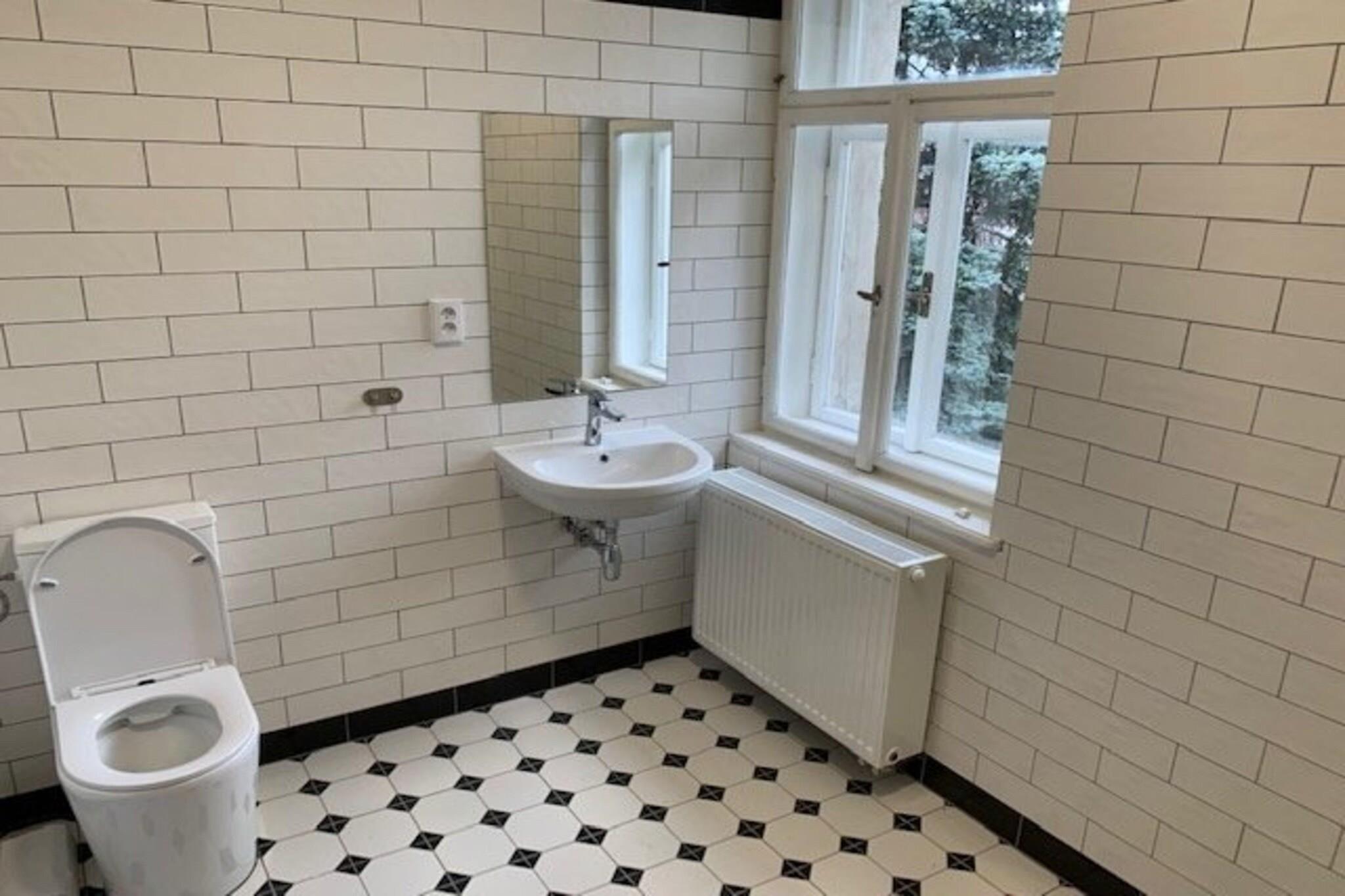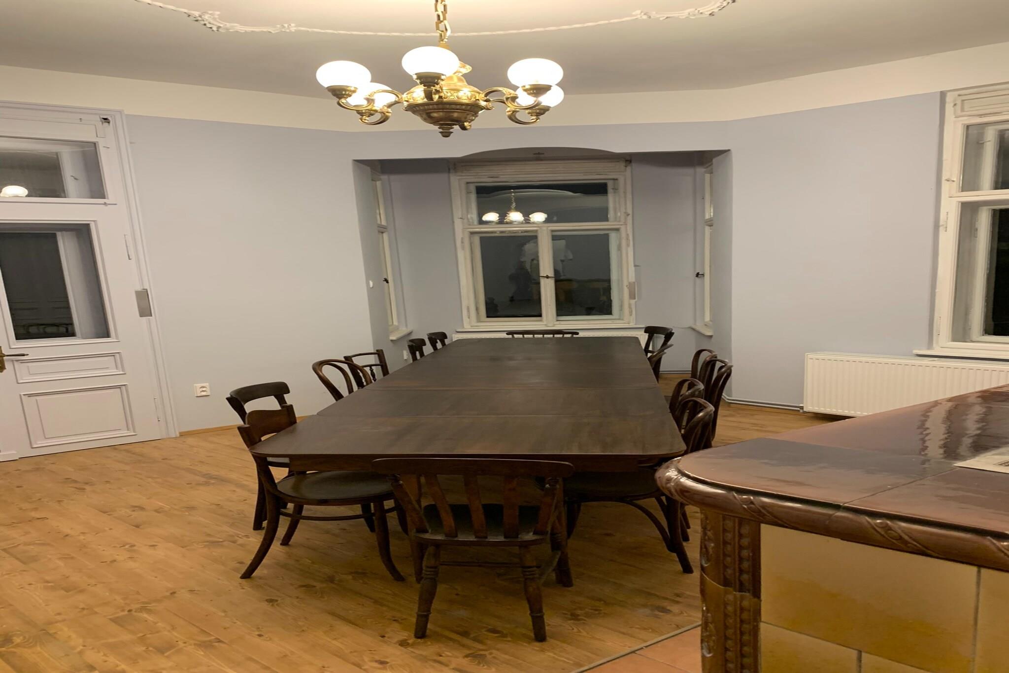 Nyrenoveret jugendvilla til leje for op til 15 personer (bygningen udlejes altid privat til 1 kundegruppe) er beliggende på en stor grund med modne træer. Værelserne er hotelstil, alle med eget badeværelse og tv. Det er en villa i to etager. I stueplan er der et dobbeltværelse (værelse nr. 1), et tredobbelt værelse med opredning (værelse nr. 2), separat toilet, køkken med spisekammer, spisestue, stue med stor tv-skærm (diagonal 176 cm) . På første sal er der et dobbeltværelse 3 + 2 (værelse nr. 3) og et tredobbelt værelse med mulighed for en ekstra opredning (værelse nr. 4). Værelserne er udstyret med antikke møbler, madrasser og lamelbunde er af hoteltypen. Fællesarealerne er meget generøse. Internet er tilgængeligt på begge etager i bygningen. Opvarmning løses af varmepumper. Vandet kommer fra sin egen dybe brønd. Der er ingen naboer og der er parkeringspladser til 5 biler på grunden.