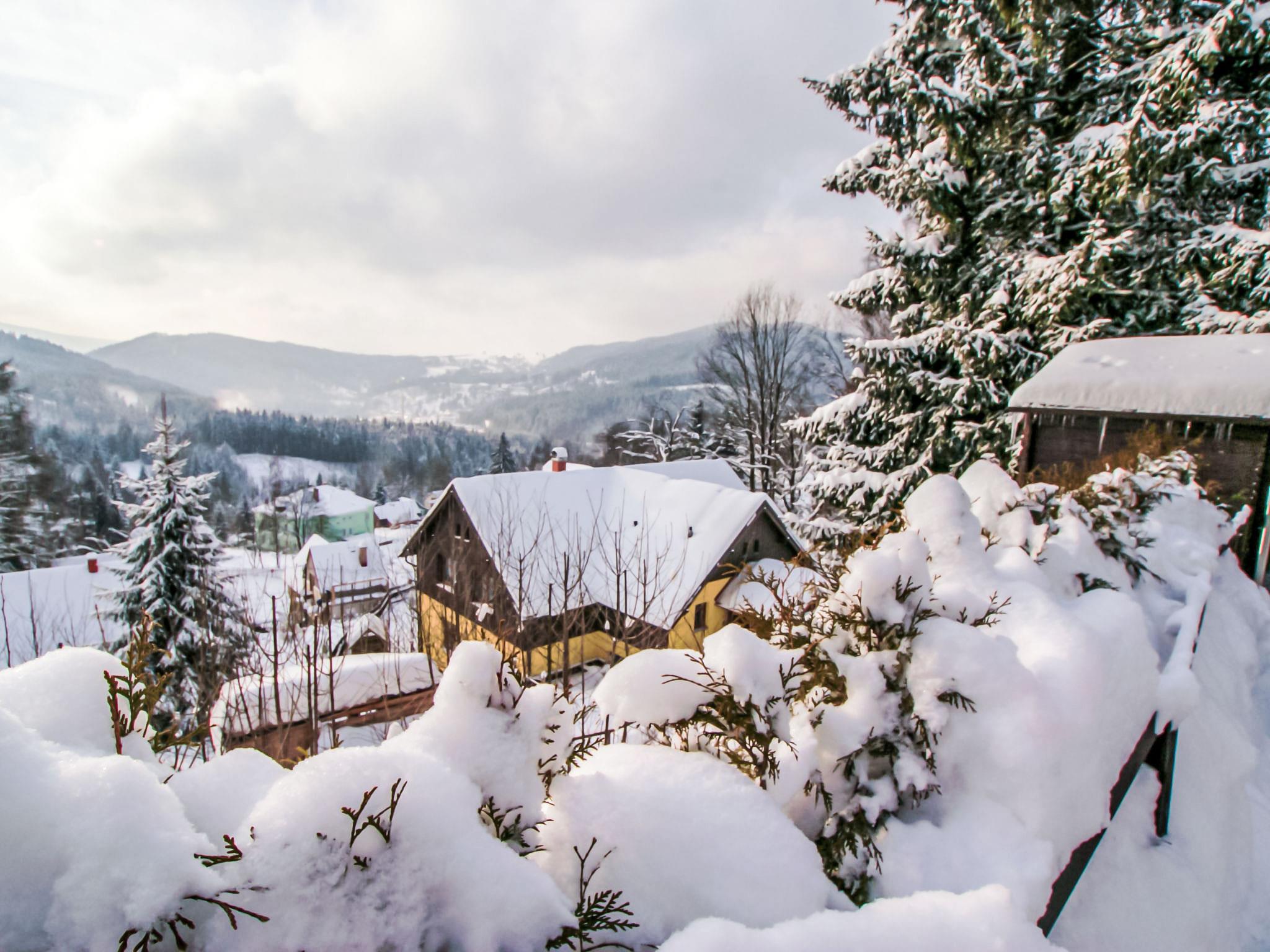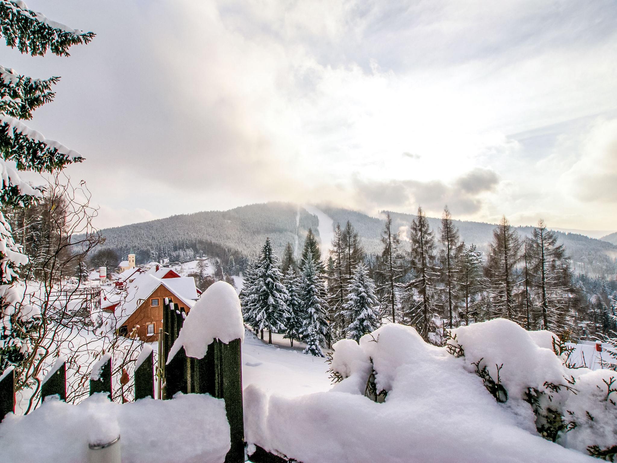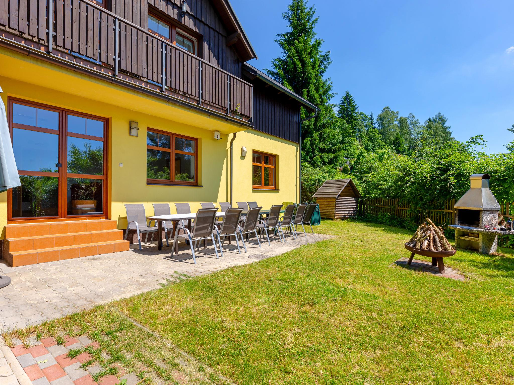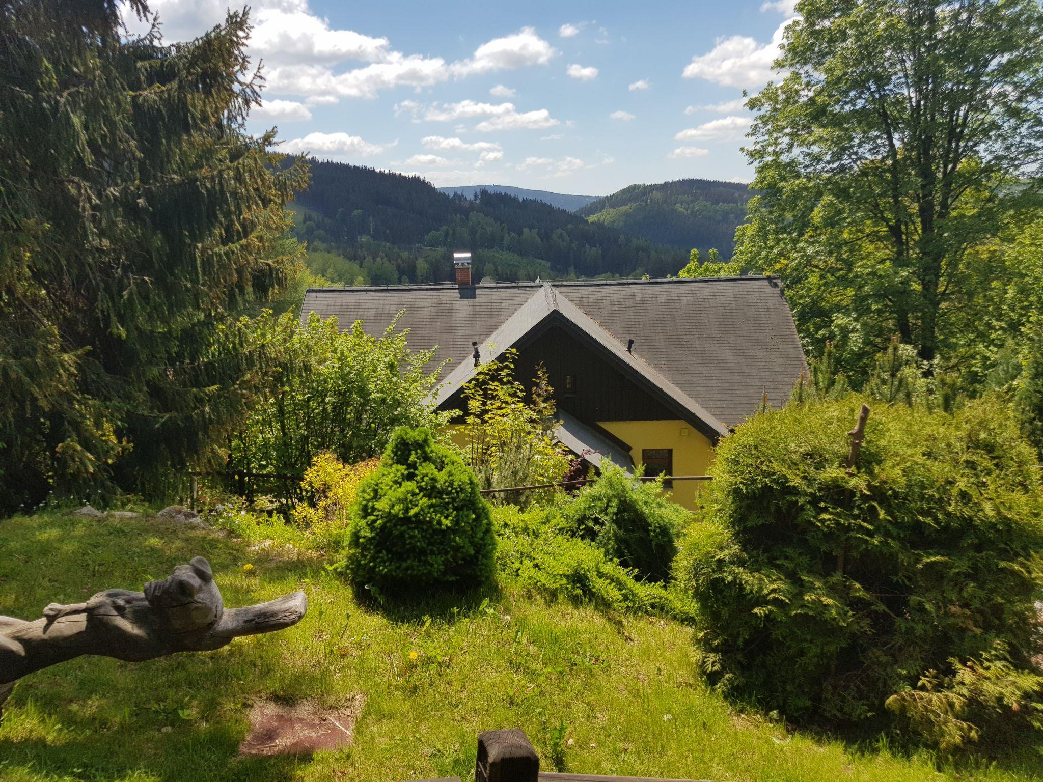 Albrechtice 5 km from Tanvald: Modern, comfortable house "Albrechtice", 2 storeys, detached, built in 2007. On the outskirts, 200 m from the skiing area. Private: property 1'800 m2 (fenced), indoor pool heated (seasonal availability: 01.Jan. - 31.Dec.). Hot tub, garden furniture, barbecue, children's playground. In the house: sauna, storage room for skis, washing machine, tumble dryer. Motor access to the house. Parking (for 4 cars) at the house. Grocery 200 m, supermarket 5 km, restaurant 250 m, bus stop 250 m, railway station 1.2 km, outdoor swimming pool 5 km, indoor swimming pool 12 km, public bathing area 12 km. Tennis 2 km, mountain railway, slopes, ski school, sled run 150 m, cross country ski track 200 m. Well-known ski regions can easily be reached: Tanvaldsky Spicak 200 m, Hrabetice, Bedrichov 10 km, Harrachov 18 km. Please note: main road 4 km from the property. Railway line 1.2 km from the property. Nightclub/disco 4 km from the property.