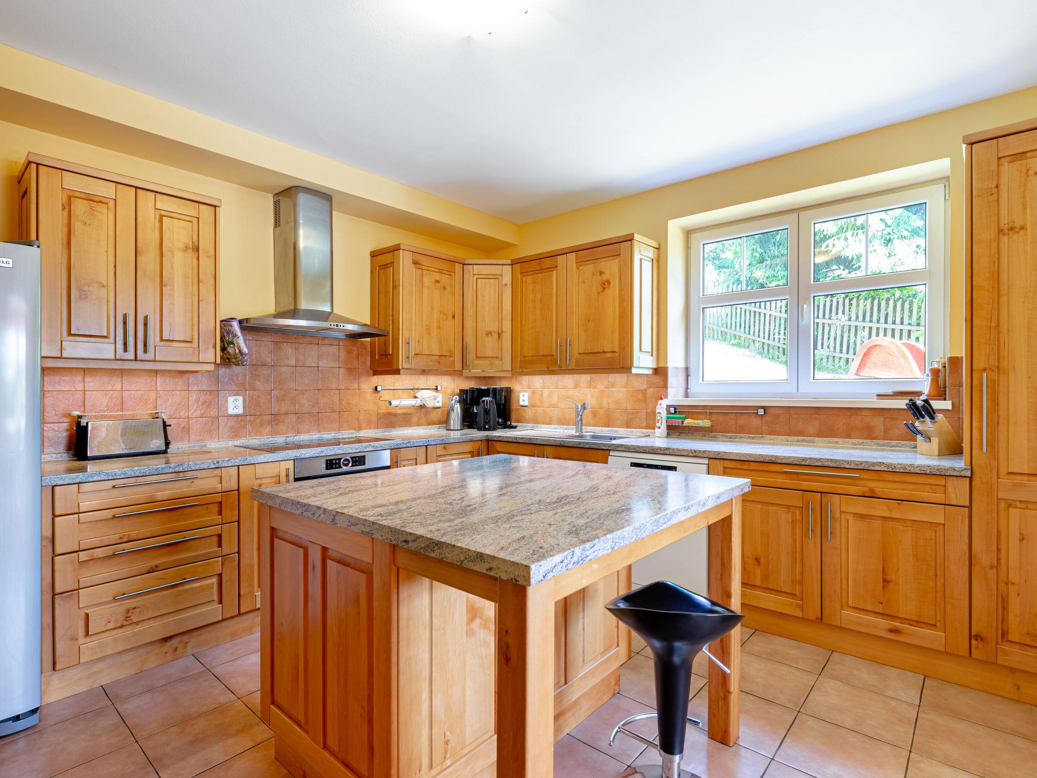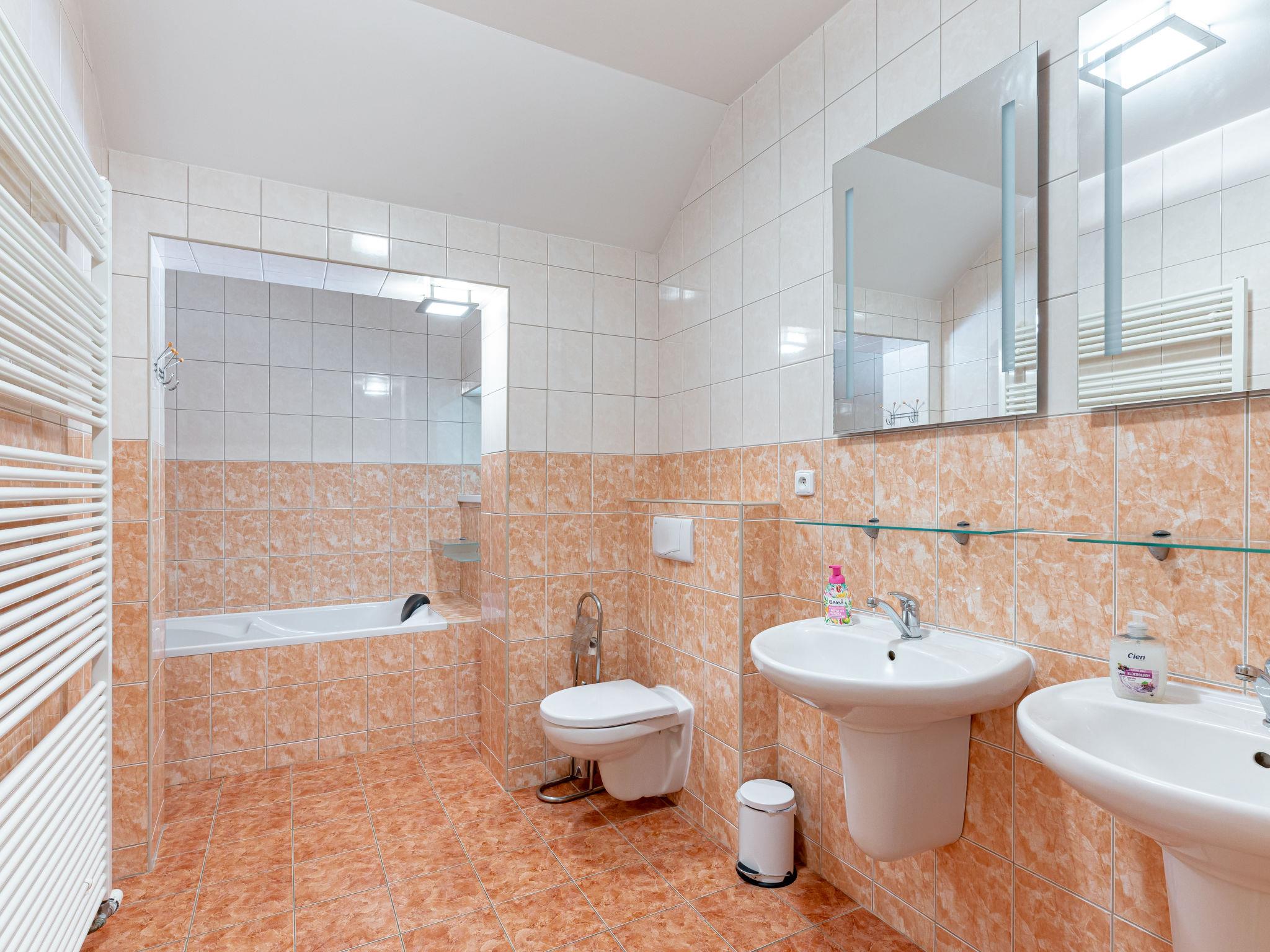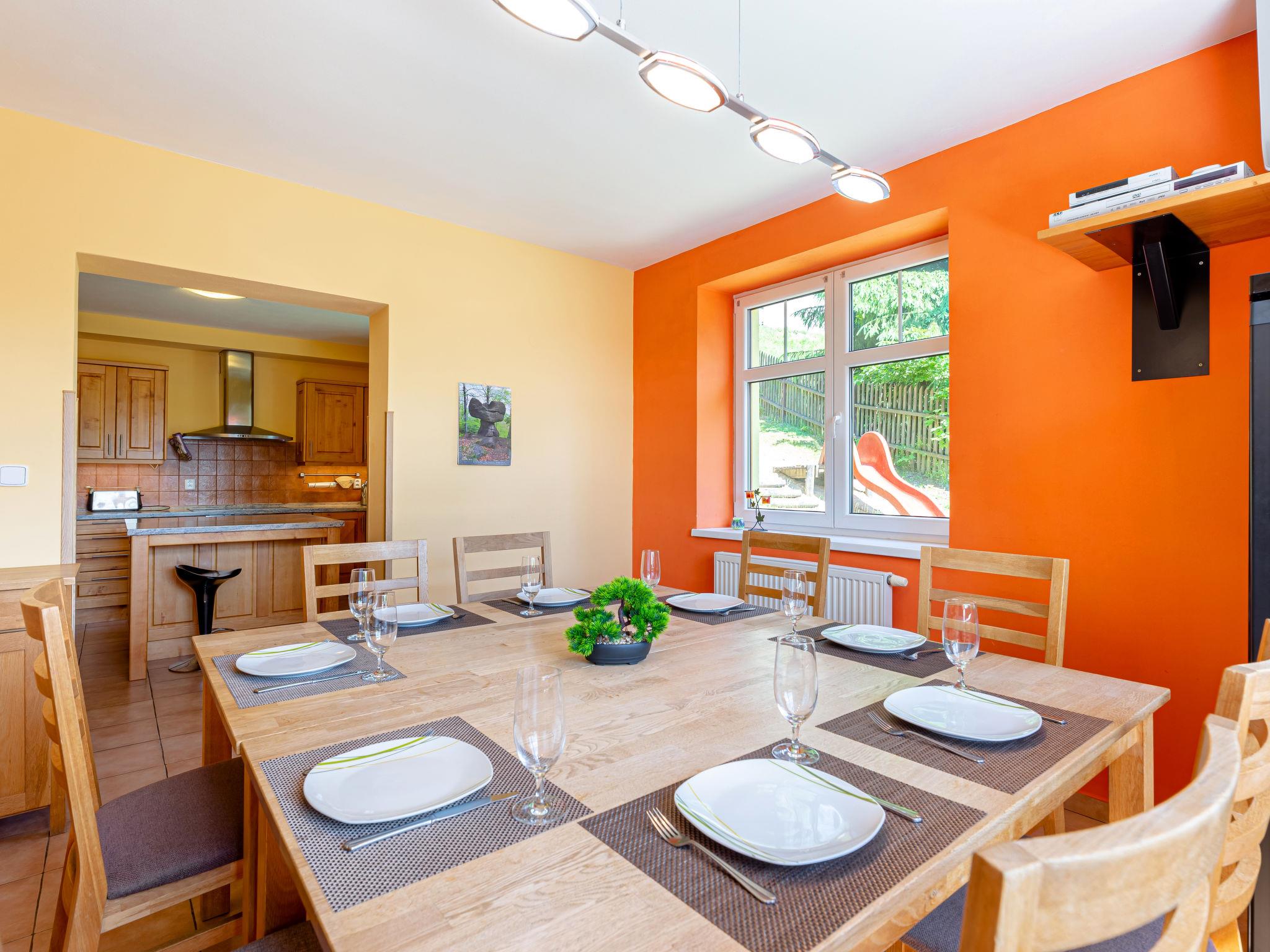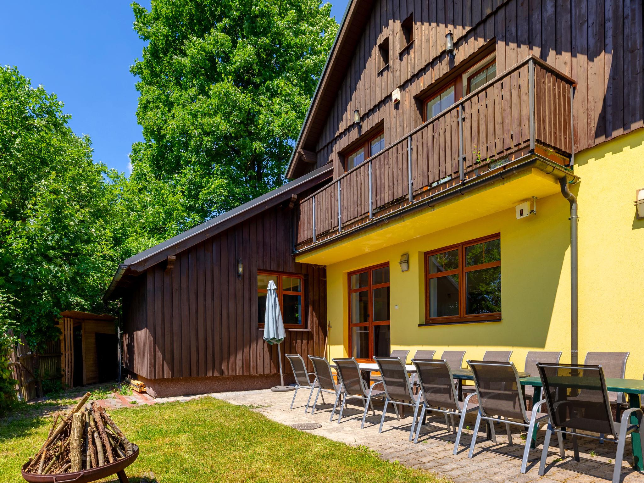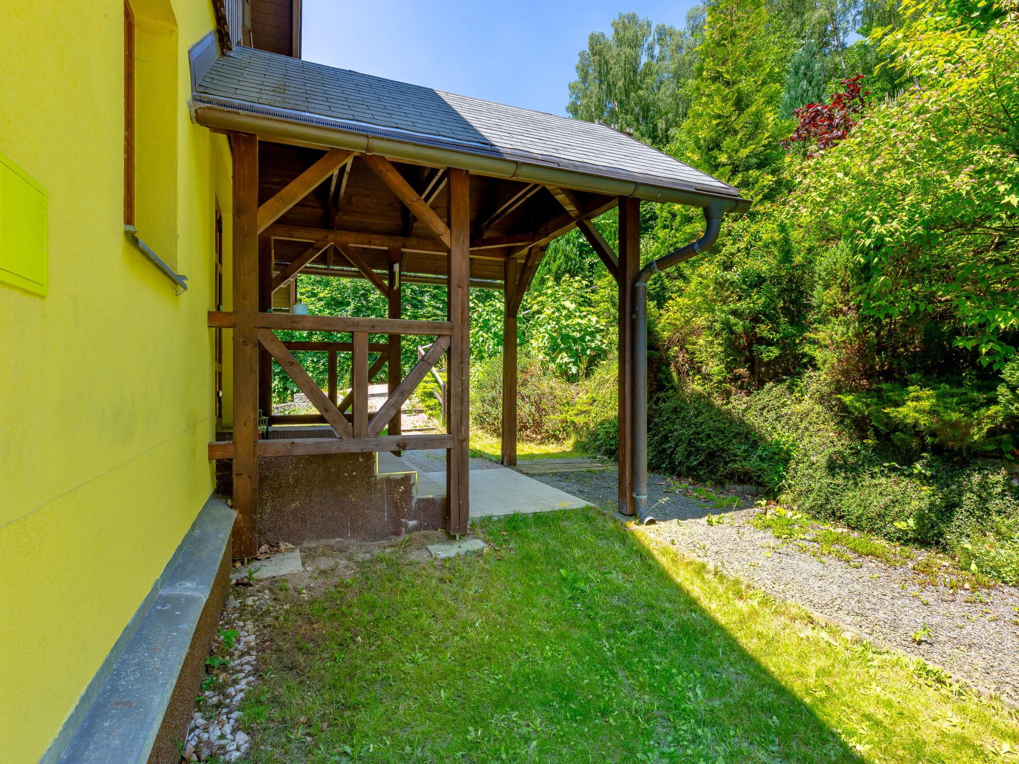 Albrechtice 5 km from Tanvald: Modern, comfortable house "Albrechtice", 2 storeys, detached, built in 2007. On the outskirts, 200 m from the skiing area. Private: property 1'800 m2 (fenced), indoor pool heated (seasonal availability: 01.Jan. - 31.Dec.). Hot tub, garden furniture, barbecue, children's playground. In the house: sauna, storage room for skis, washing machine, tumble dryer. Motor access to the house. Parking (for 4 cars) at the house. Grocery 200 m, supermarket 5 km, restaurant 250 m, bus stop 250 m, railway station 1.2 km, outdoor swimming pool 5 km, indoor swimming pool 12 km, public bathing area 12 km. Tennis 2 km, mountain railway, slopes, ski school, sled run 150 m, cross country ski track 200 m. Well-known ski regions can easily be reached: Tanvaldsky Spicak 200 m, Hrabetice, Bedrichov 10 km, Harrachov 18 km. Please note: main road 4 km from the property. Railway line 1.2 km from the property. Nightclub/disco 4 km from the property.