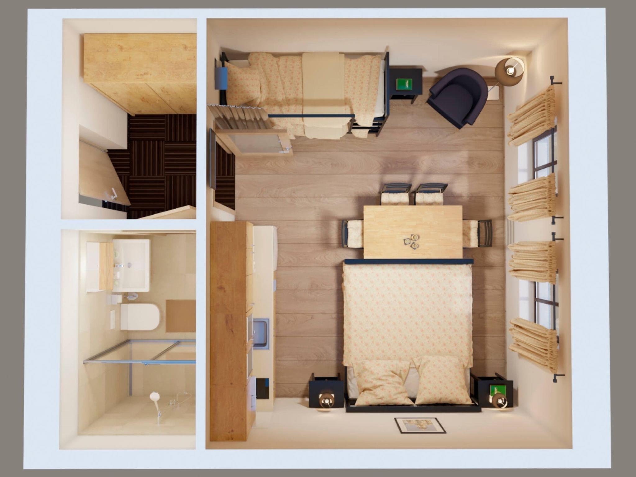 "Arnoltice 1", 1-room apartment on the ground floor. Entrance hall. Living/sleeping room with 1 x 2 bunk beds, 1 double bed and satellite TV. Kitchenette (2 ceramic glass hob hotplates, toaster, kettle, microwave) with dining table. Shower/WC. View of the garden. Facilities: Internet (WiFi, free). Please note: suitable for families. Non-smokers only.