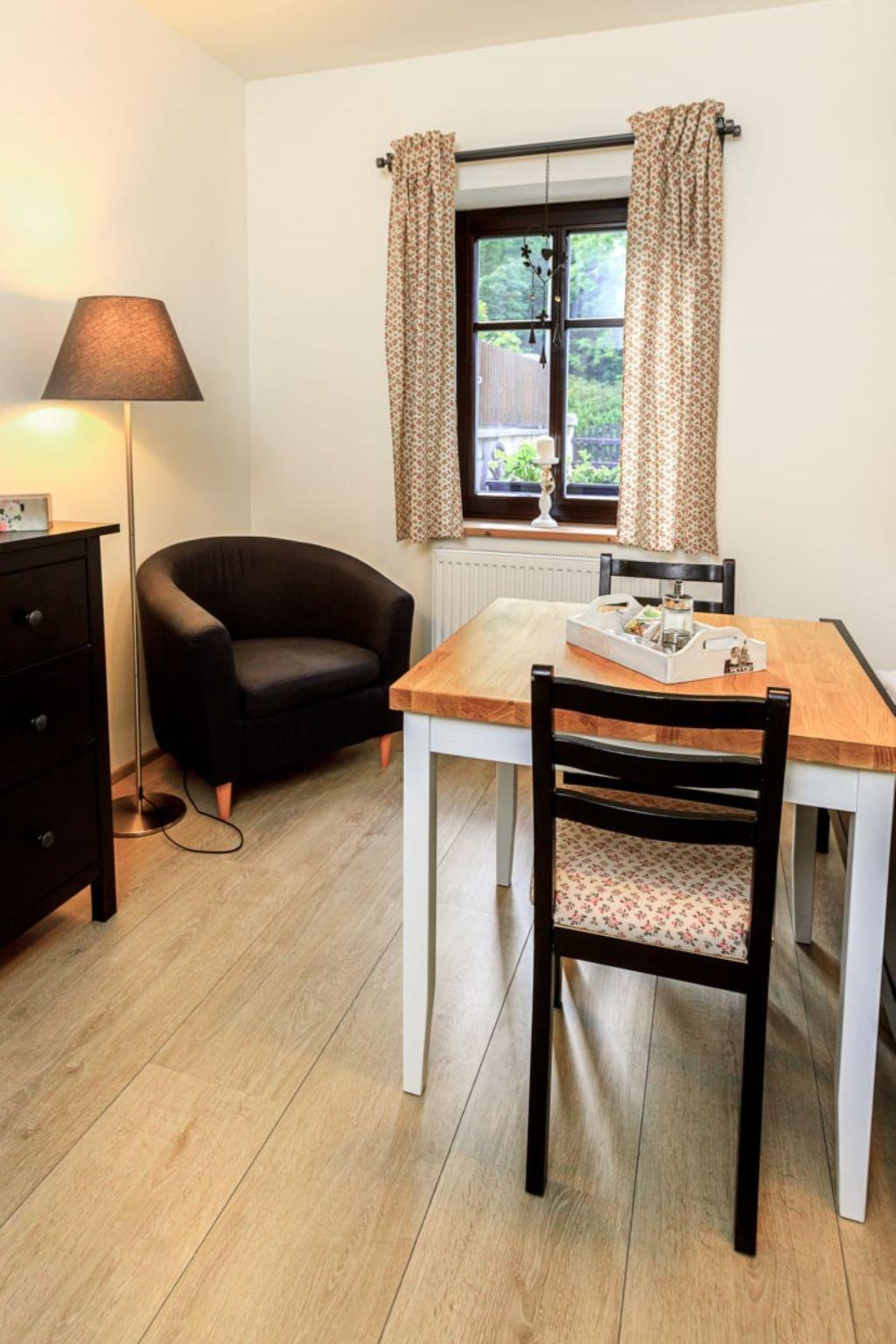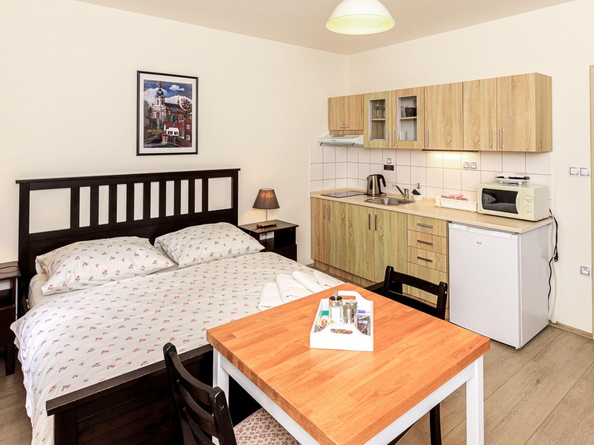 "Arnoltice 4", 1-room apartment on the ground floor. Entrance hall. Living/sleeping room with 1 double bed and satellite TV. Kitchenette (2 ceramic glass hob hotplates, toaster, kettle, microwave) with dining table. Shower/WC. Facilities: Internet (WiFi, free). Please note: suitable for families apartment street side. Non-smokers only.