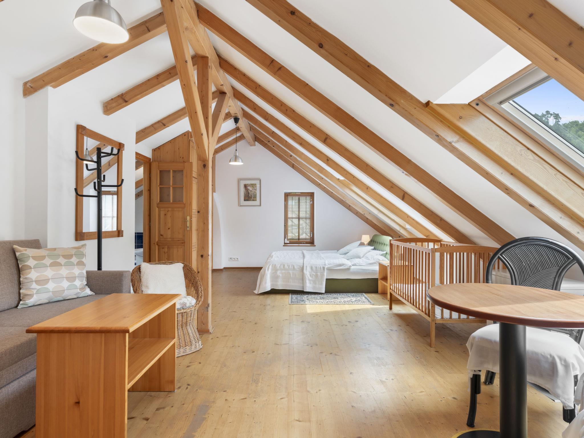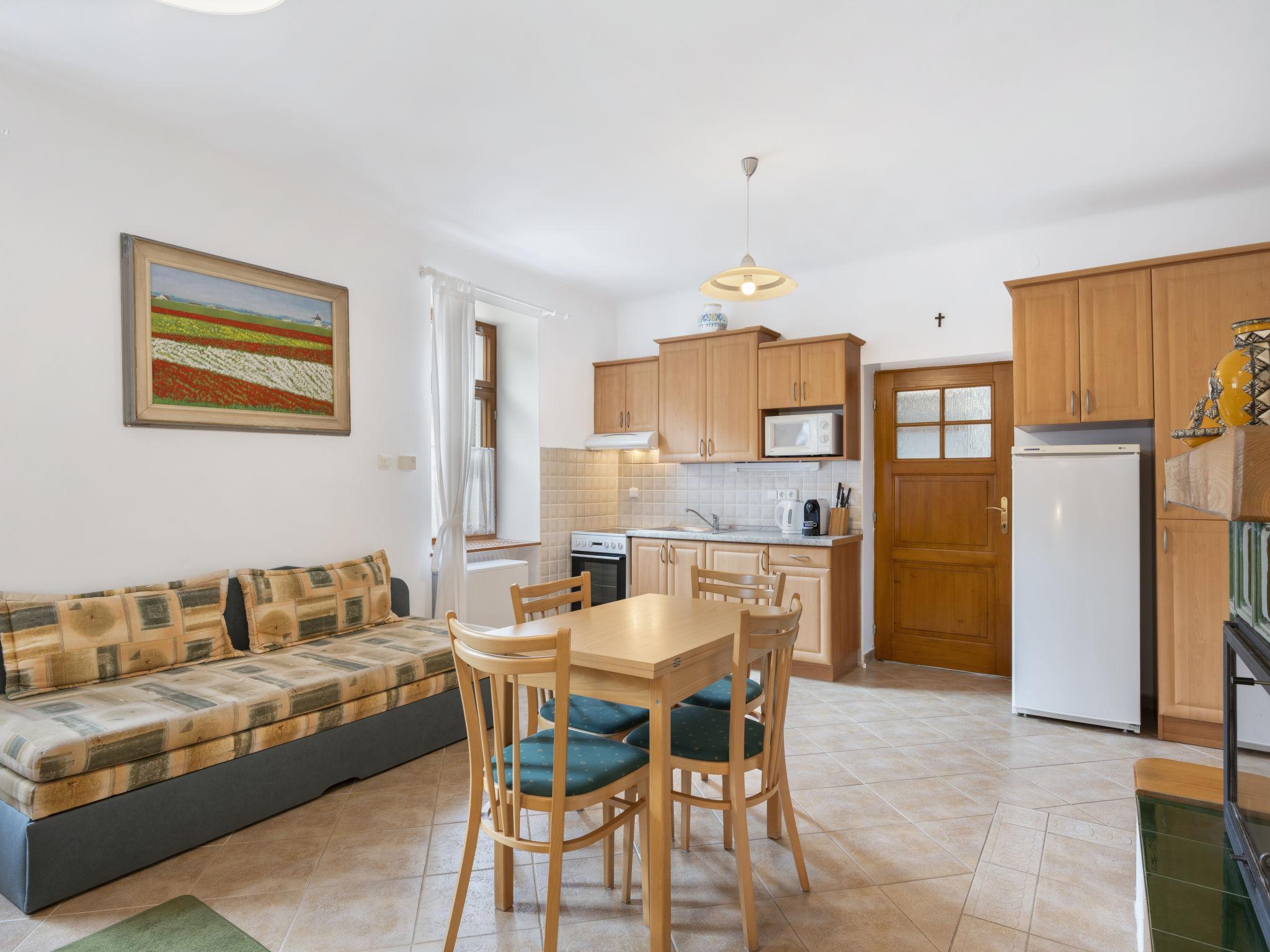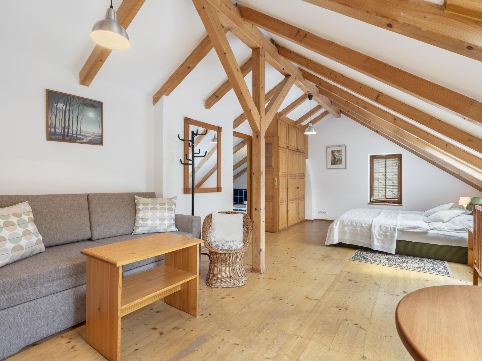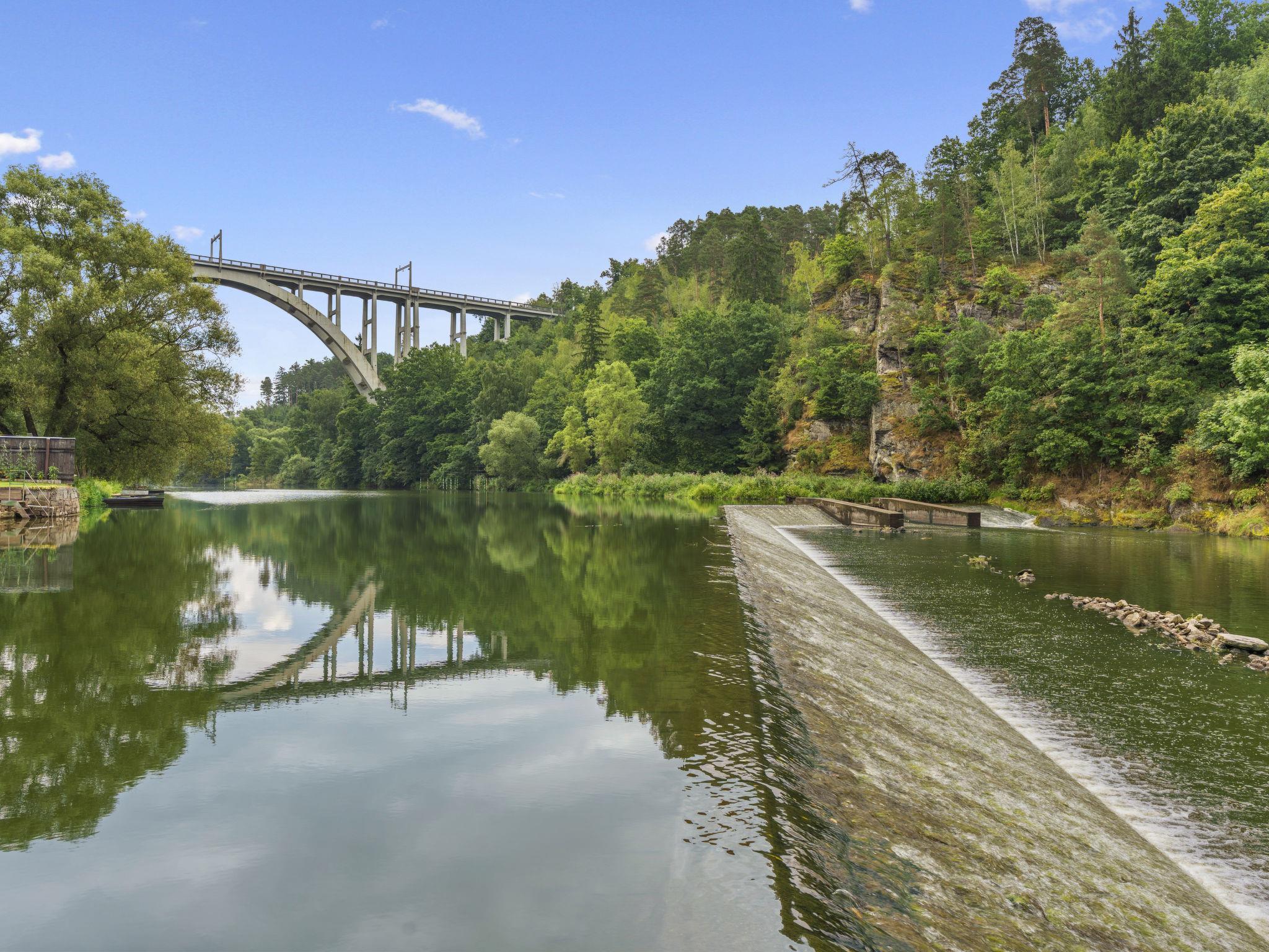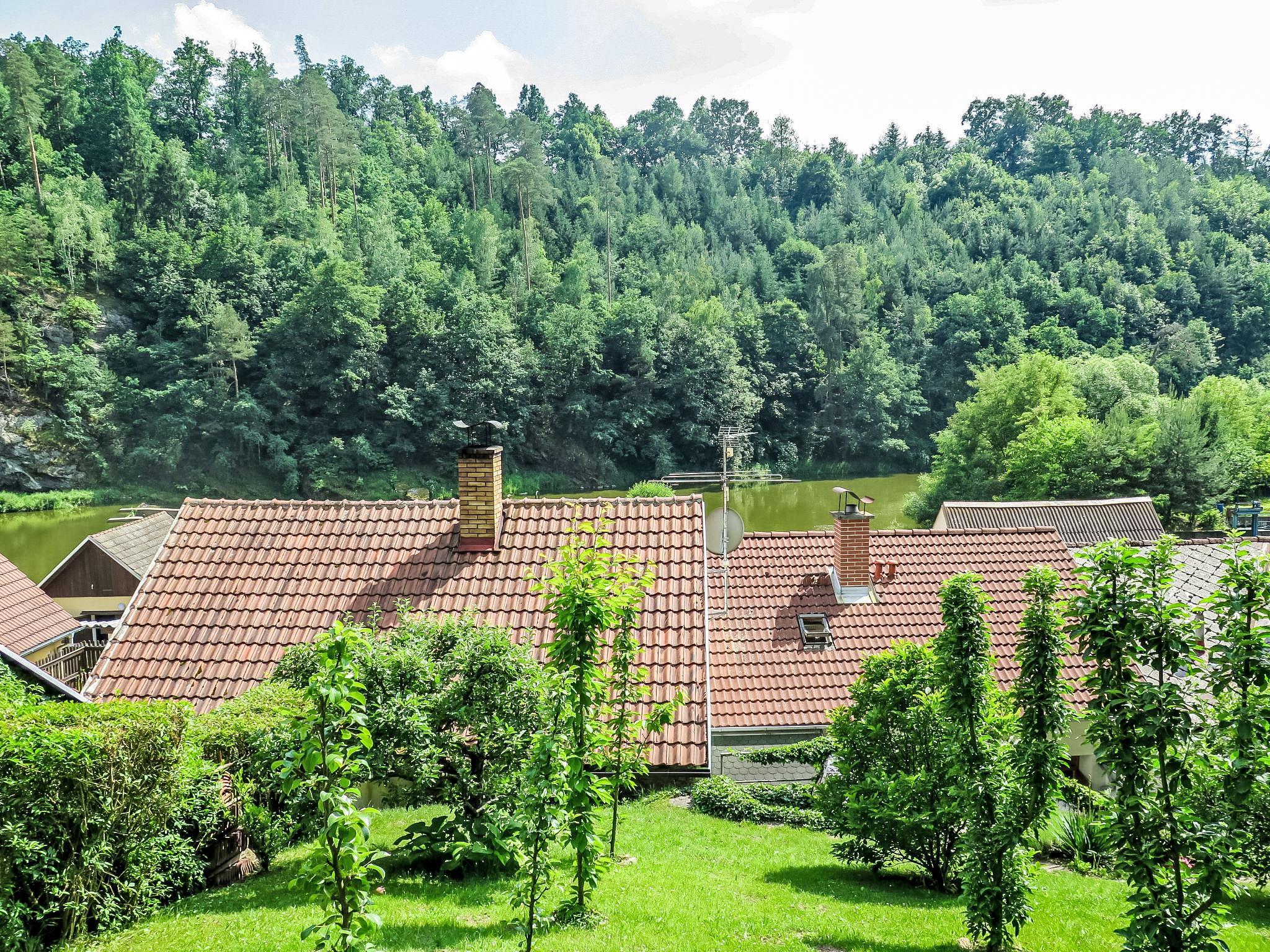Beautiful, cosy terraced house "Parkany 1", 2 storeys, renovated. On the outskirts, 300 m from the centre of Bechyne, in a quiet, sunny position, 50 m from the river, in a cul-de-sac, in the countryside. Private: garden 266 m2 (fenced) with lawn. Terrace (40 m2), garden furniture, barbecue. In the house: storage room for bicycles, central heating system. Motor access to the house. Public parking 50 m on the road. Shop, grocery 500 m, restaurant 50 m, bus stop 1 km, railway station 900 m, outdoor swimming pool 950 m, swimming bay 50 m. Golf course (18 hole) 6 km, tennis 950 m, riding stable 6 km. The house is located by the river Luznice with possibility of fishing, swimming, renting of boats 30 m. In the courtyard are steep steps into the garden in slope.