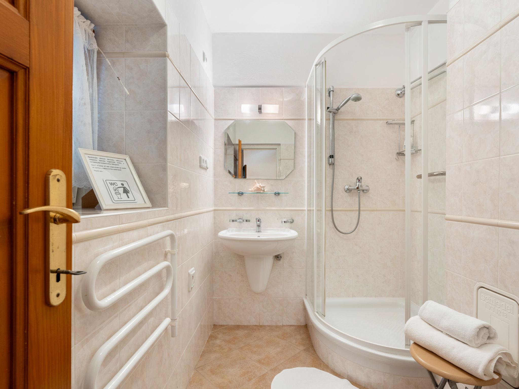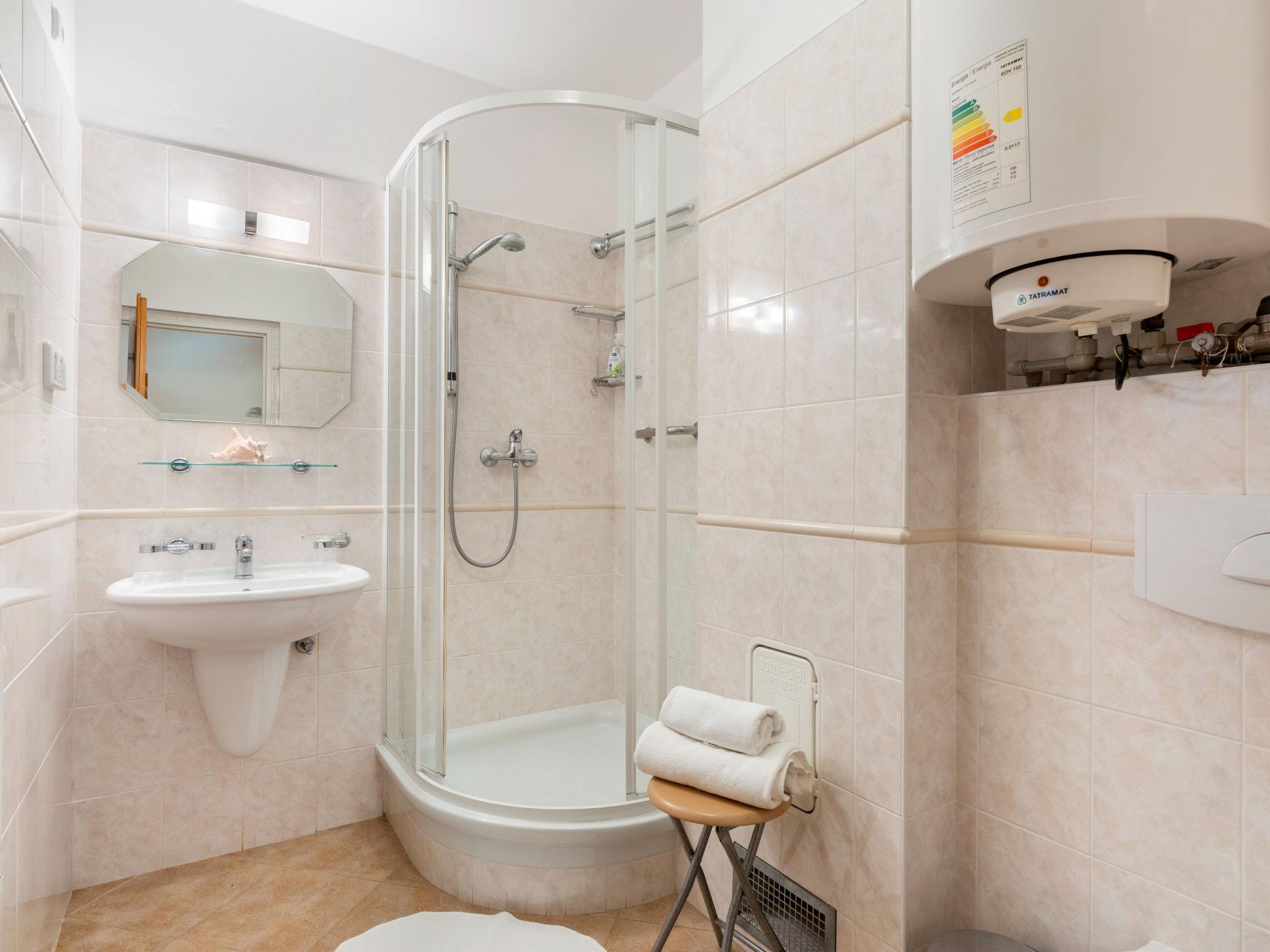 2-room terraced house 60 m2 on 2 levels. Partly with sloping ceilings, very beautiful and modern furnishings: living/dining room with 2 beds, open-hearth fireplace, satellite TV and radio. Kitchenette (4 hot plates, oven, kettle, microwave). Shower/WC. Electric heating, wood heating. Upper floor: with sloping ceilings, 1 double bedroom 20 m2 with bath/WC. Terrace. Box-room. Facilities: washing machine, iron. Internet (WiFi, free). Please note: suitable for families. Non-smokers only. Fire extinguisher.