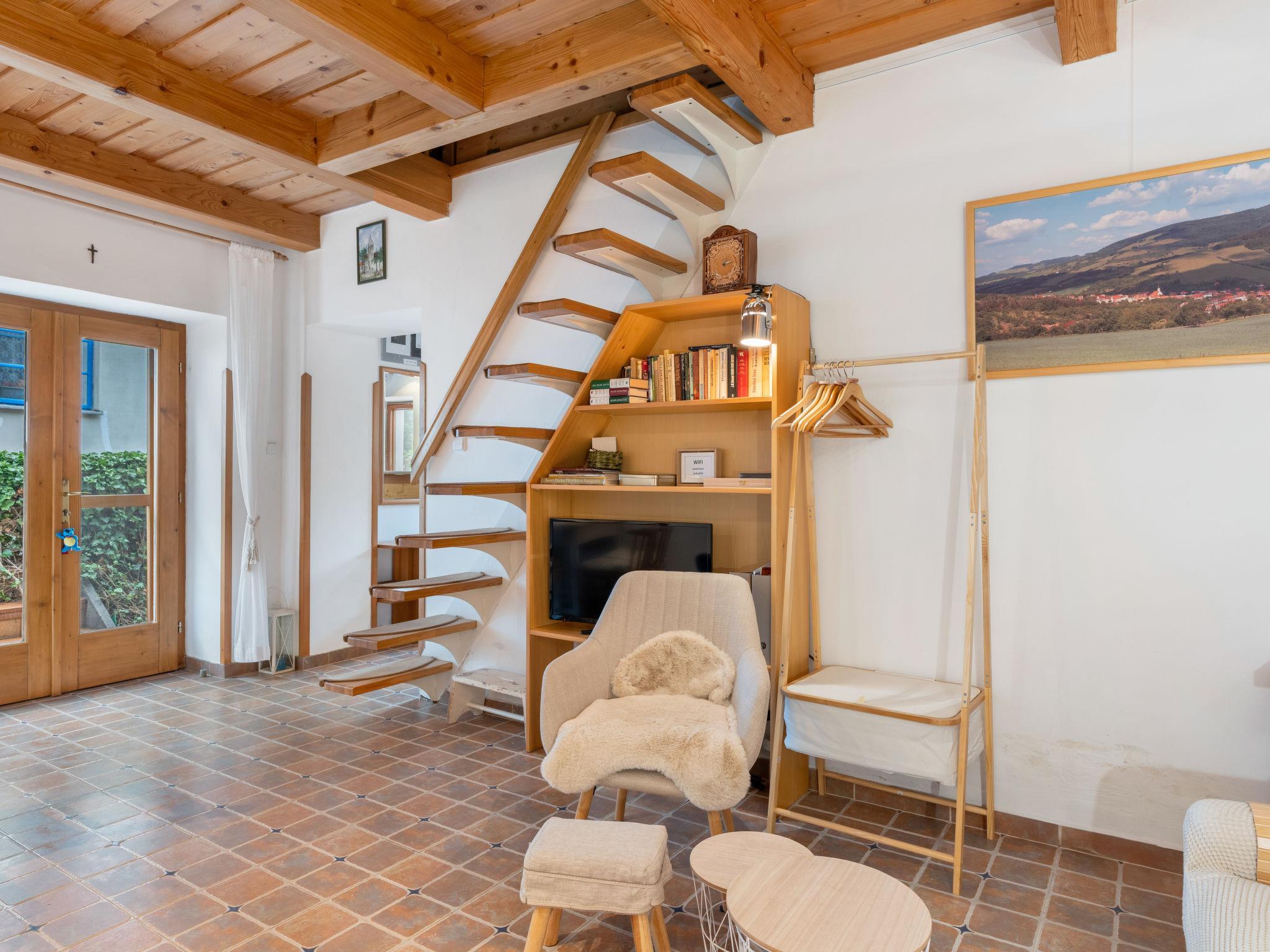 2-room house 60 m2 on 2 levels. Partly with sloping ceilings, very beautiful and cosy furnishings: living/dining room with 1 double sofabed, satellite TV and radio. Small kitchen (2 hot plates, oven, microwave). Shower/WC. Floor heating, boiler (60 litres). Upper floor: (steep stair) with sloping ceilings, 1 room with 2 beds and 1 french bed. Terrace. Facilities: Internet (WiFi, free). Please note: suitable for families. Non-smokers only. Fire extinguisher.