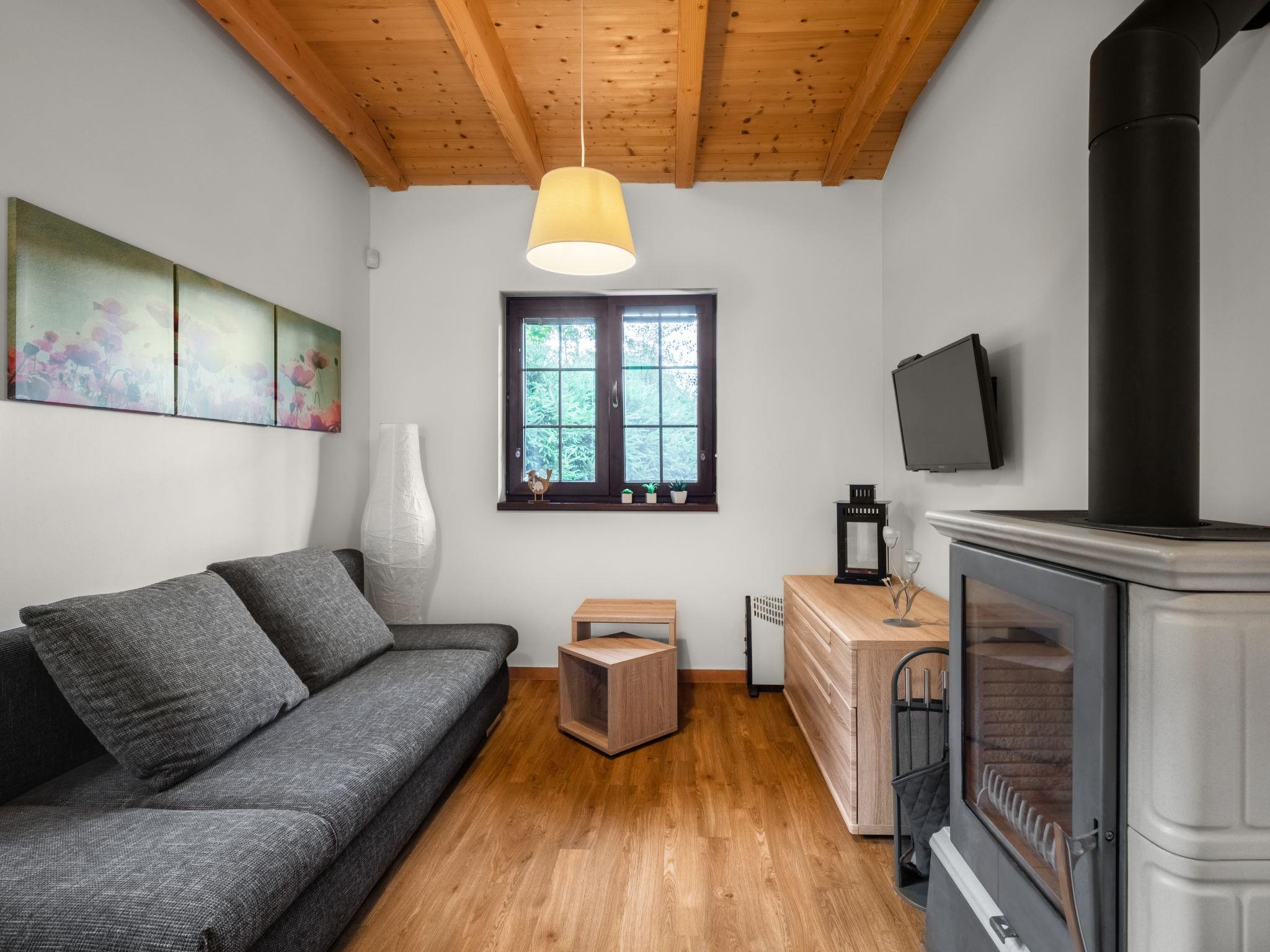 "Becov nad Teplou 1", 2-room cottage 36 m2. Object suitable for 2 adults + 2 children. Bright, cosy furnishings: living room with 1 double sofabed (1 x 140 cm, length 200 cm), Scandinavian wood stove and satellite TV. 1 room with 1 double bed (1 x 140 cm, length 200 cm). Kitchenette (2 hot plates, kettle, microwave, electric coffee machine) with dining table. Shower/WC. Electric heating, wood heating, floor heating. Terrace. Terrace furniture, barbecue, sitting area. Facilities: Internet (WiFi, free). Please note: suitable for families. Non-smoking house. Smoke alarm, fire extinguisher. The sofa in the living room is a foldable sofa bed for 2 people.