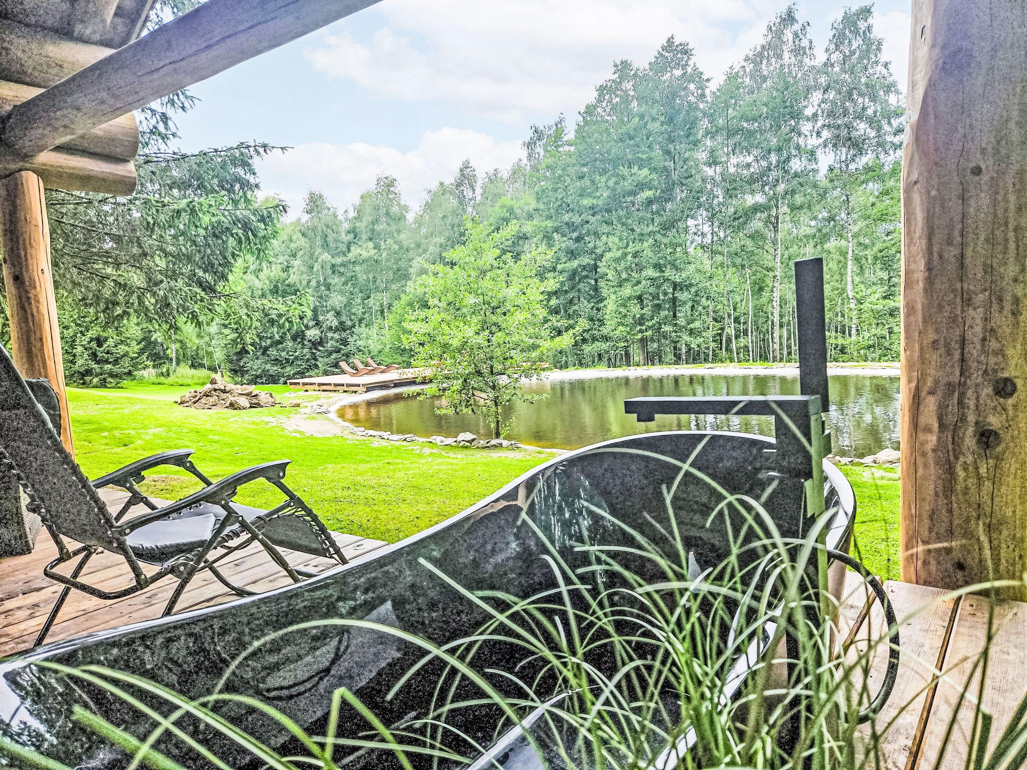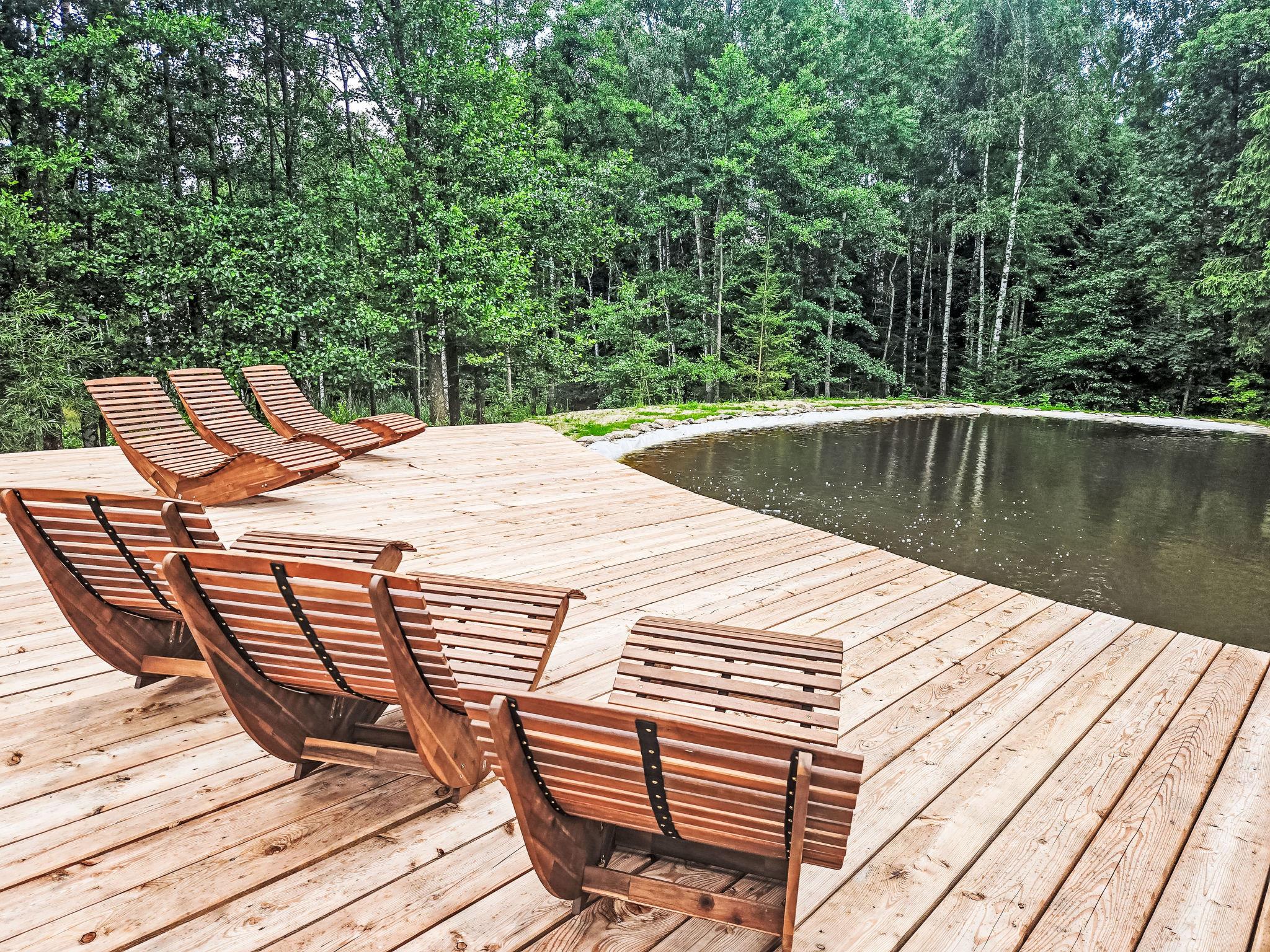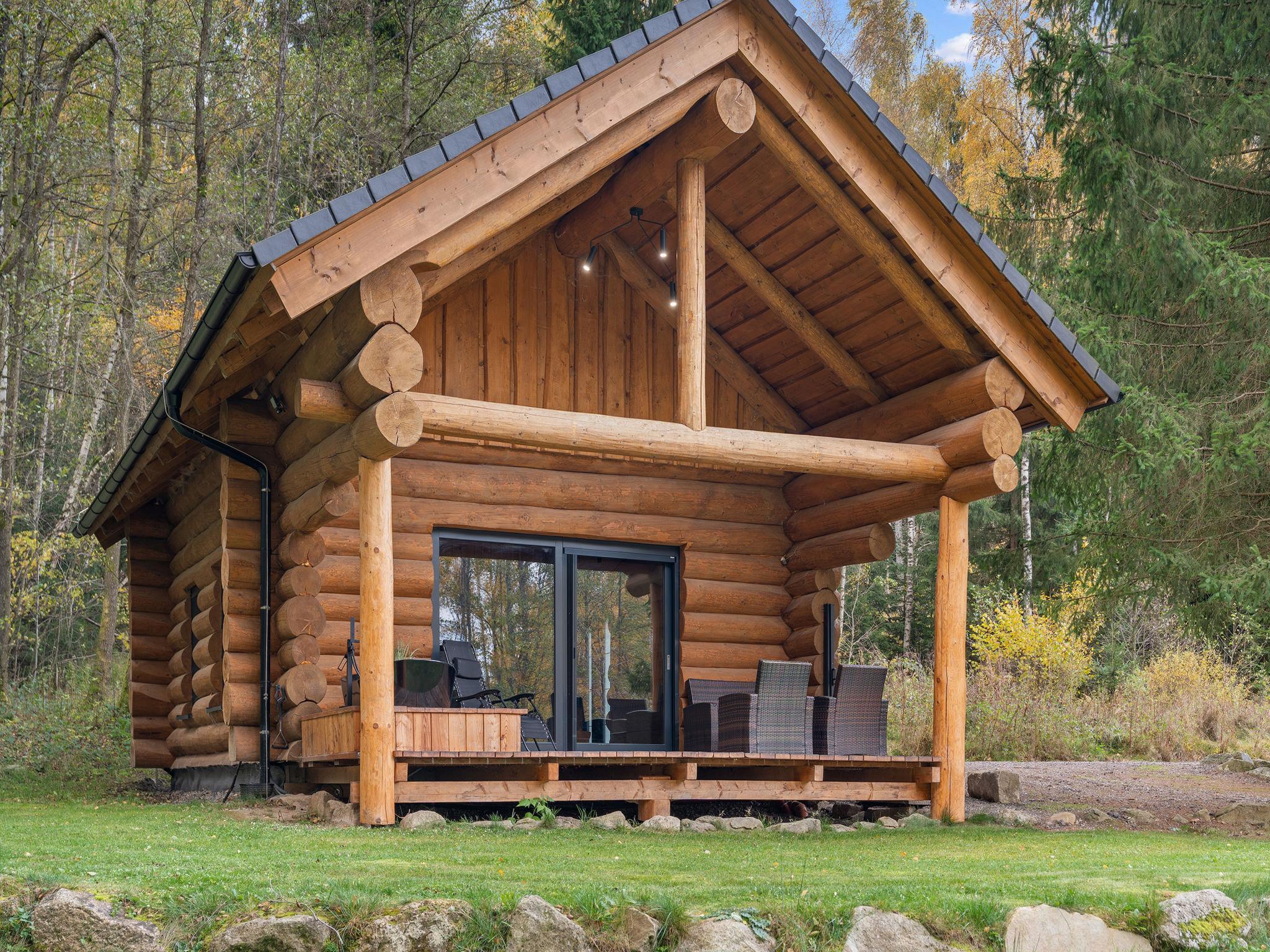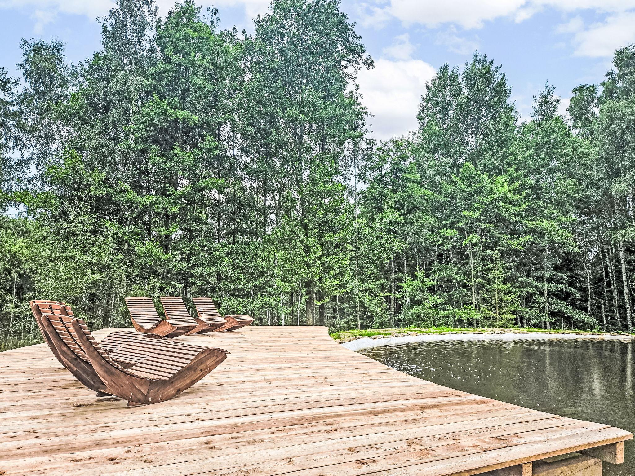 Kurí 3 km from Benešov nad Cernou: Small, luxurious chalet "KuRíp", 2 storeys, detached, built in 2022. In a quiet position, along the wooded area, in the countryside. For shared use: natural pond. Bathing jetty. Private: property. Garden furniture, barbecue, fireplace, parking at the house. Grocery 3 km, restaurant 300 m, bus stop "Benešov nad Cernou, pila" 2 km, grass beach 50 m (small), outdoor swimming pool 13 km. Nearby attractions: Žofínský prales, Sokolcí, 10 km, Blansko, Dobrá Voda 12 km, Jiricská nádrž, Tvrz Žumberk 15 km, Nové Hrady, Porešín, ZOO park Dvorec 20 km, Hrad Rožmberk, Ceský Krumlov 35 km. Well-known ski regions can easily be reached: Karlstift (AT) 25 km, Lipno 50 km, Sterstain (AT) 50 m. Well-known lakes can easily be reached: Vodní nádrž Lipno 50 km. Object suitable for 2 adults + 2 children. The owner can arrange fishing in a private lake or rafting on the Vltava river (on request, extra).