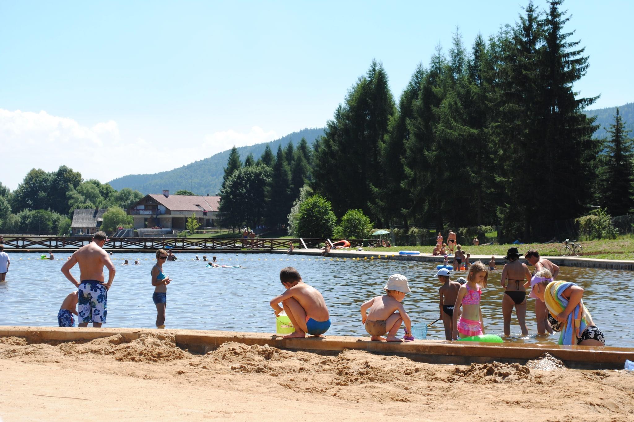 Dette smukke fritliggende sommerhus med sauna ligger i den autentiske landsby Božanov, i det nordlige Bøhmen midt i naturreservatet Broumovské Steny. Området er rigt på kultur og natur med varierede landskaber med smukke marker, tætte skove og forrevne klippeformationer. ideel til en stor gruppe med børn. På grund af sin smukke beliggenhed er dette en ideel base for vandrere og sportscyklister. Om vinteren er dette et smukt område til alpint skiløb, langrend og snevandring. Der er flere skilifter og langrendsløjper i nærheden. Udstyr kan lejes på stedet, og du kan tage hollandske/tyske ski- og snowboard -lektioner. Derudover er der masser af muligheder for svømning, ridning, bjergbestigning, kano eller ture i bil. House Koruna ligger på en lille campingplads. Selvfølgelig kan du bruge alle faciliteter såsom swimmingpool, legeplads, fodboldbane og rekreationsrum. Derudover arrangeres adskillige aktiviteter såsom kano og ridning. Fra hele huset har du en smuk udsigt over Broumovske Steny -højderyggen. Huset er omgivet af en rummelig, uindhegnet have med havemøbler og en grill.