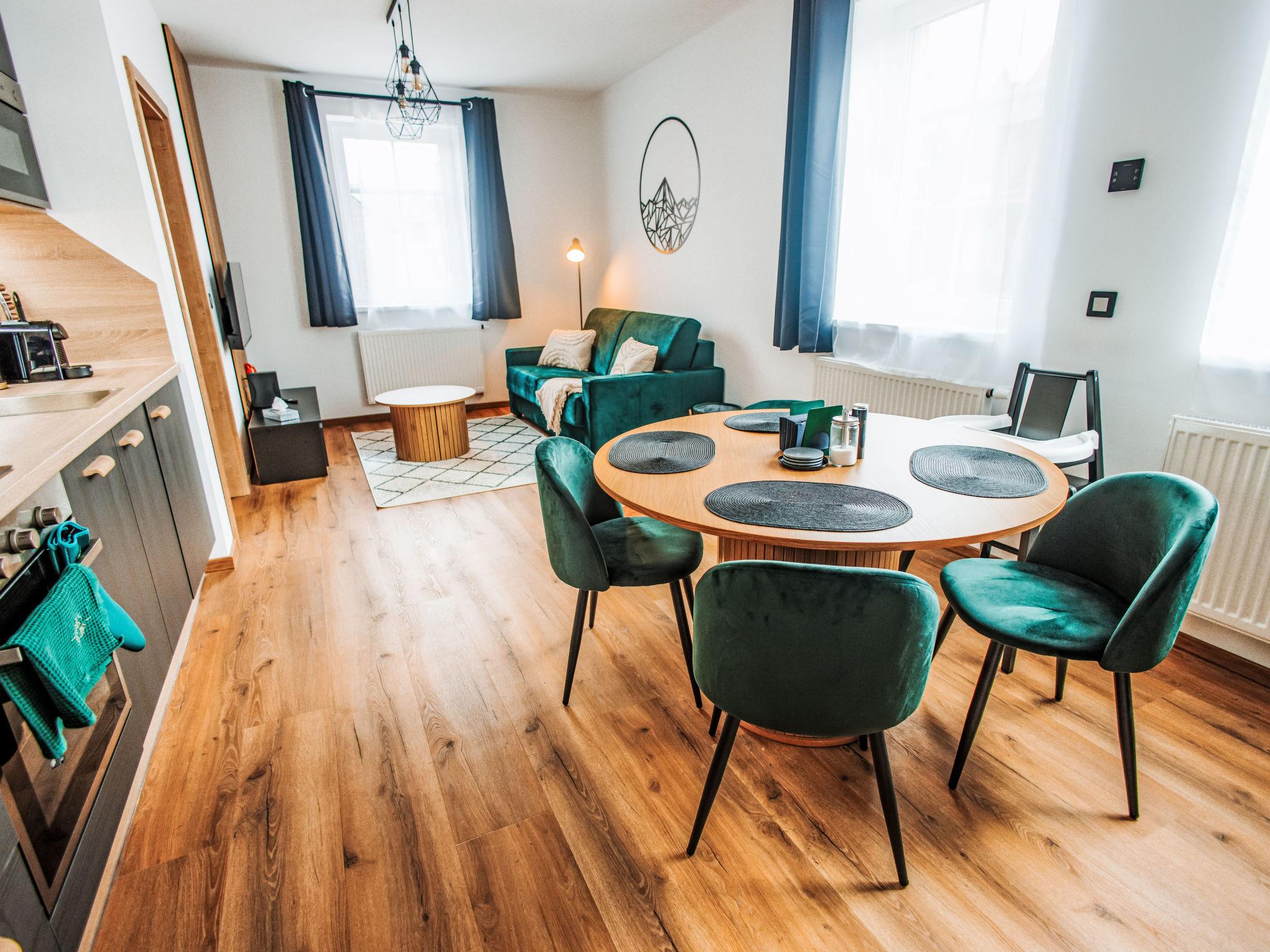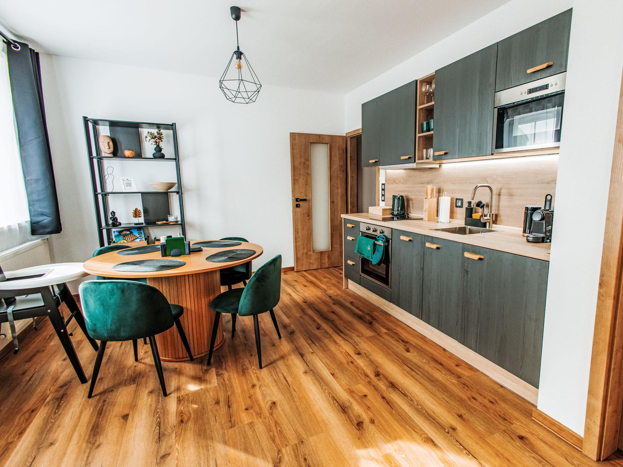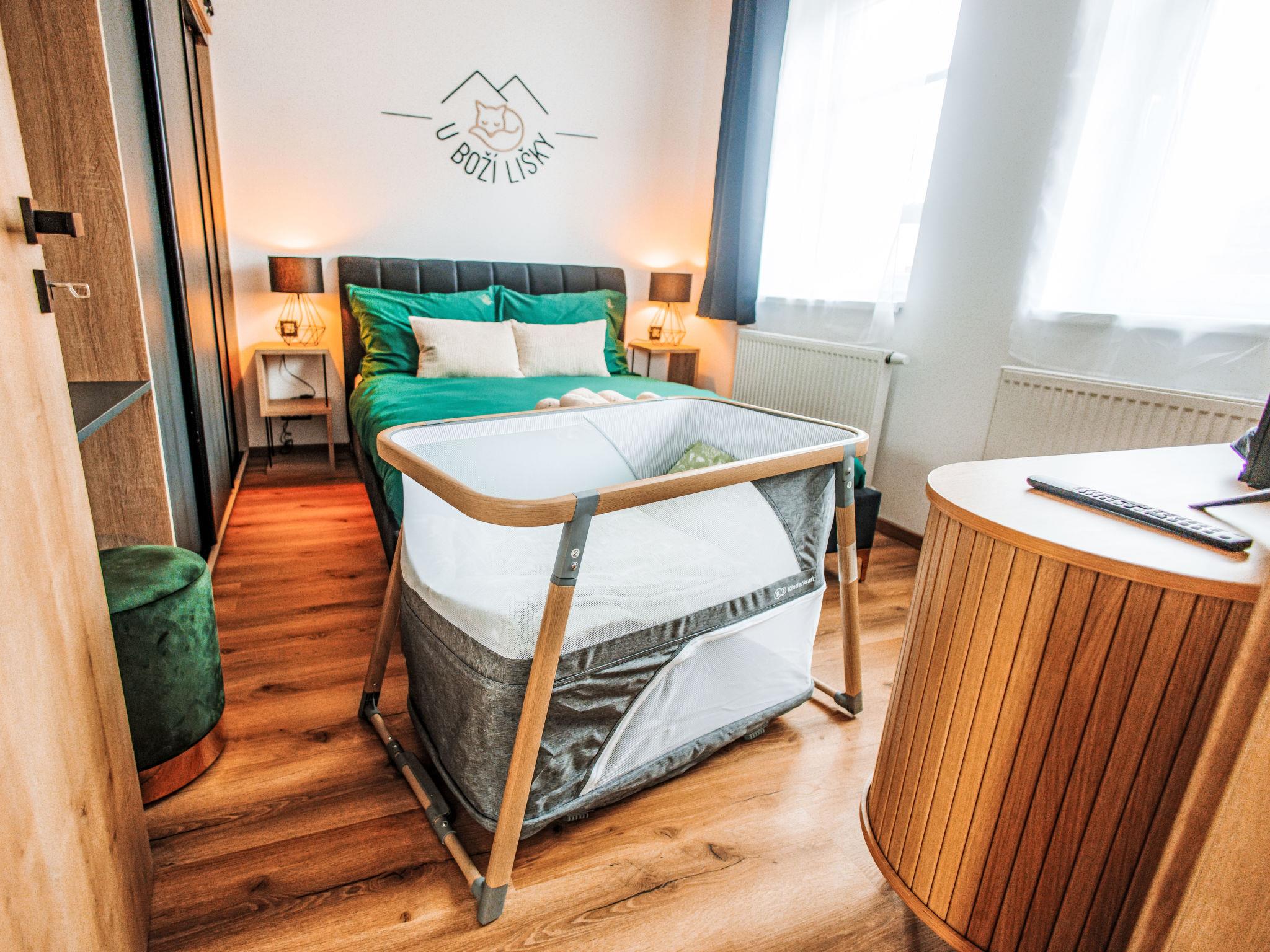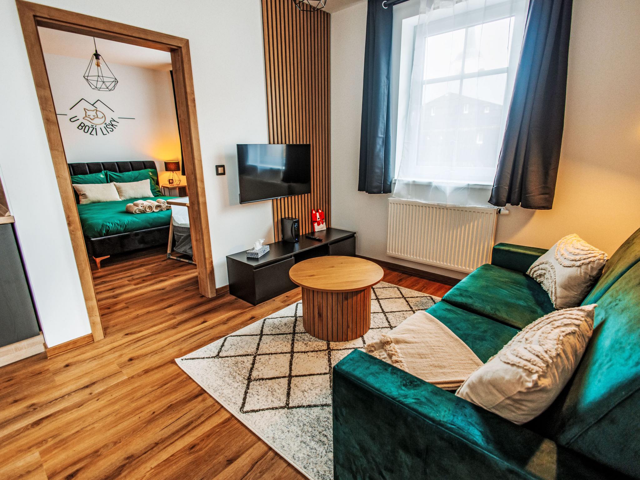 In a picturesque mountain town in the heart of the Ore Mountains, modern apartment block "U Boží lišky", 4 storeys, built in 2023. In a sunny position, excellent location: right in the centre but still quiet, 250 m from the skiing area. In the house: storage room for skis, central heating system. Restaurant 20 m, café 50 m, bus stop "Boží dar, u kostela" 340 m. Ski lift 250 m, ski rental 150 m, cross country ski track 300 m. Nearby attractions: Oberwiesenthal 4.5 km, Fichtelberg 4.5 km, Klínovec 4.5 km, Karlovy Vary - vrídlo- kolonáda 29 km, Phonolithbruch Richterbruch 10 km, Becov nad Teplou 50 km. Well-known ski regions can easily be reached: Novako 250 m, Neklid 1.5 km, Hranice 300 m. Well-known lakes can easily be reached: Myslivny 4 km, Nechranice 50 km, Prísecnice 30 km. Hiking paths: Oberwiesenthal / Fichtelberg 2.7 km, Loucná 5.5 km, Hundsmarter 15 km.