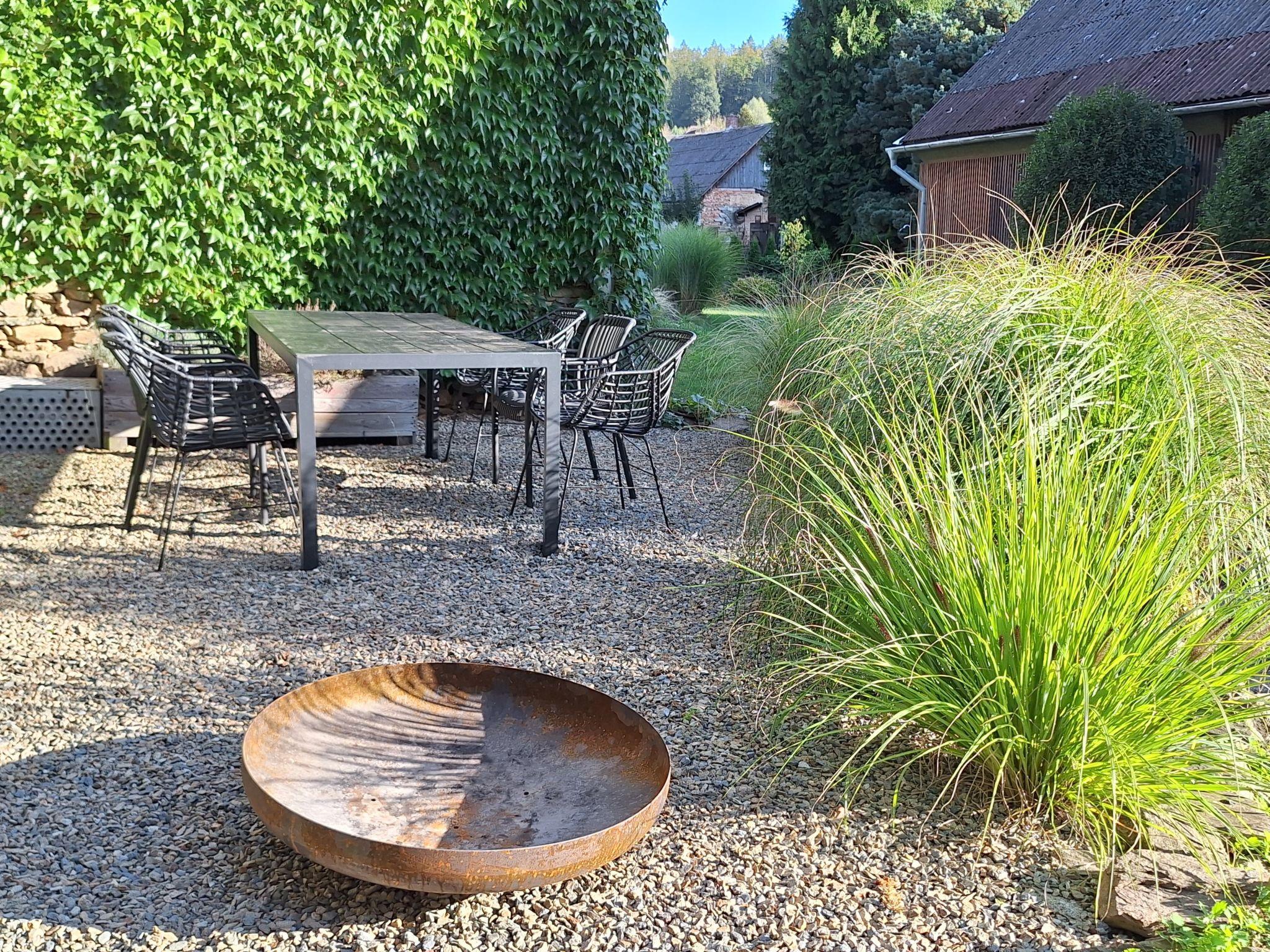 "Brnícko", 4-room house 160 m2. Modern and cosy furnishings: living/dining room with 1 sofabed and radio. Exit to the garden. 3 rooms, each room with 1 french bed (140 cm). Open kitchen (oven, dishwasher, 4 ceramic glass hob hotplates, kettle, freezer, electric coffee machine) with dining table, Scandinavian wood stove. Shower/WC, sep. WC. Wood heating, boiler (120 litres). Terrace 60 m2. Terrace furniture. Beautiful view of the countryside. Facilities: washing machine, dryer, logs (extra). Internet (WiFi, free). Please note: suitable for families. Non-smoking house.