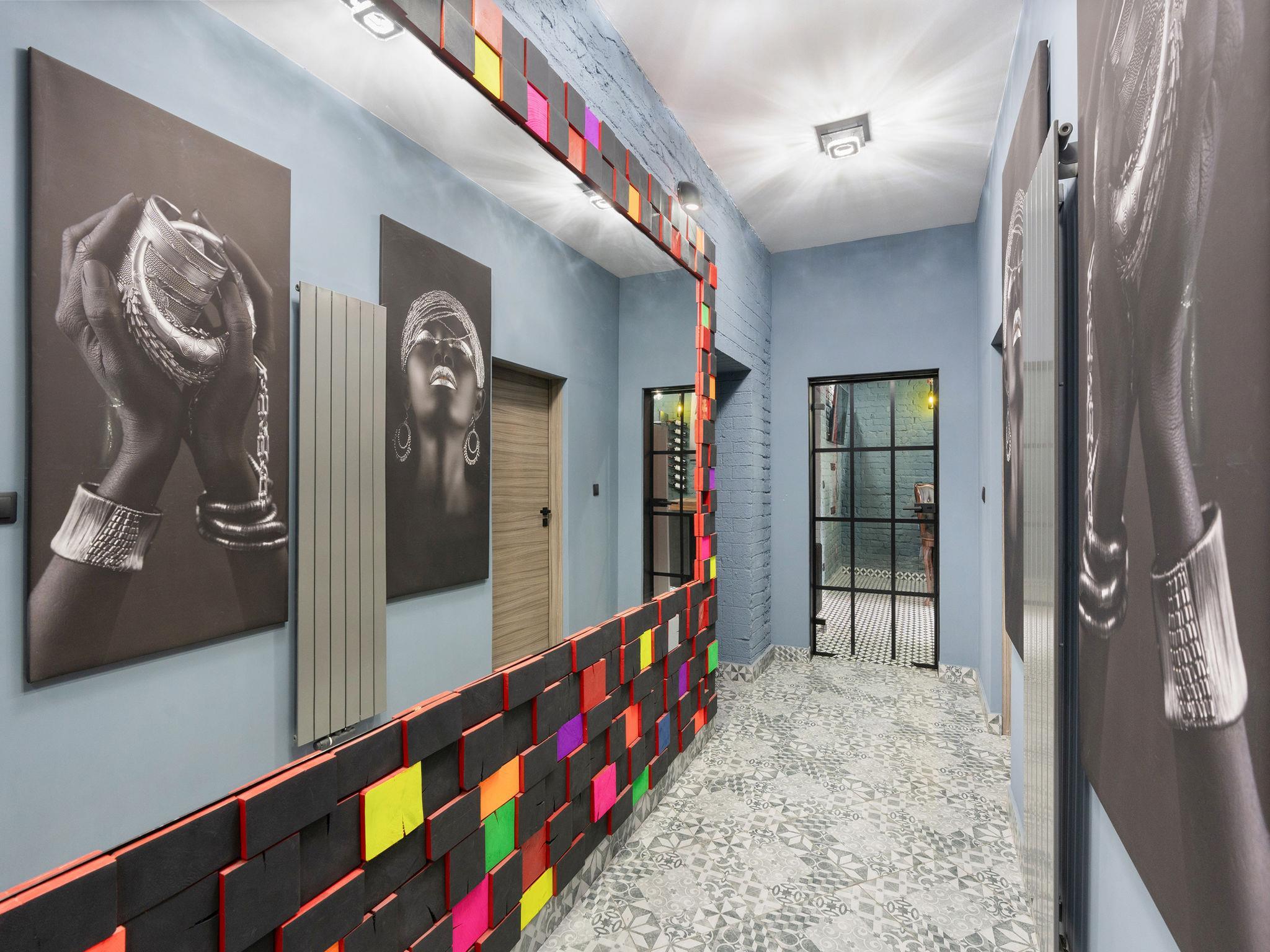 5-room apartment 150 m2 on 4th floor. Modern furnishings: living room with 1 double sofabed and TV. 1 room with 1 double bed and TV. Exit to the balcony. 1 room with 1 double bed and TV. 1 room with 1 double bed, 1 folding bed, shower/WC and TV. Living/dining room with kitchen corner. Kitchen (oven, 4 ceramic glass hob hotplates, kettle, microwave, electric coffee machine) with dining nook. Bath/shower/bidet/WC. Balcony. Balcony furniture. Facilities: Internet (WiFi, free). Parking (roofed, 2 cars). Please note: non-smokers only. 1 small pet/ dog allowed.