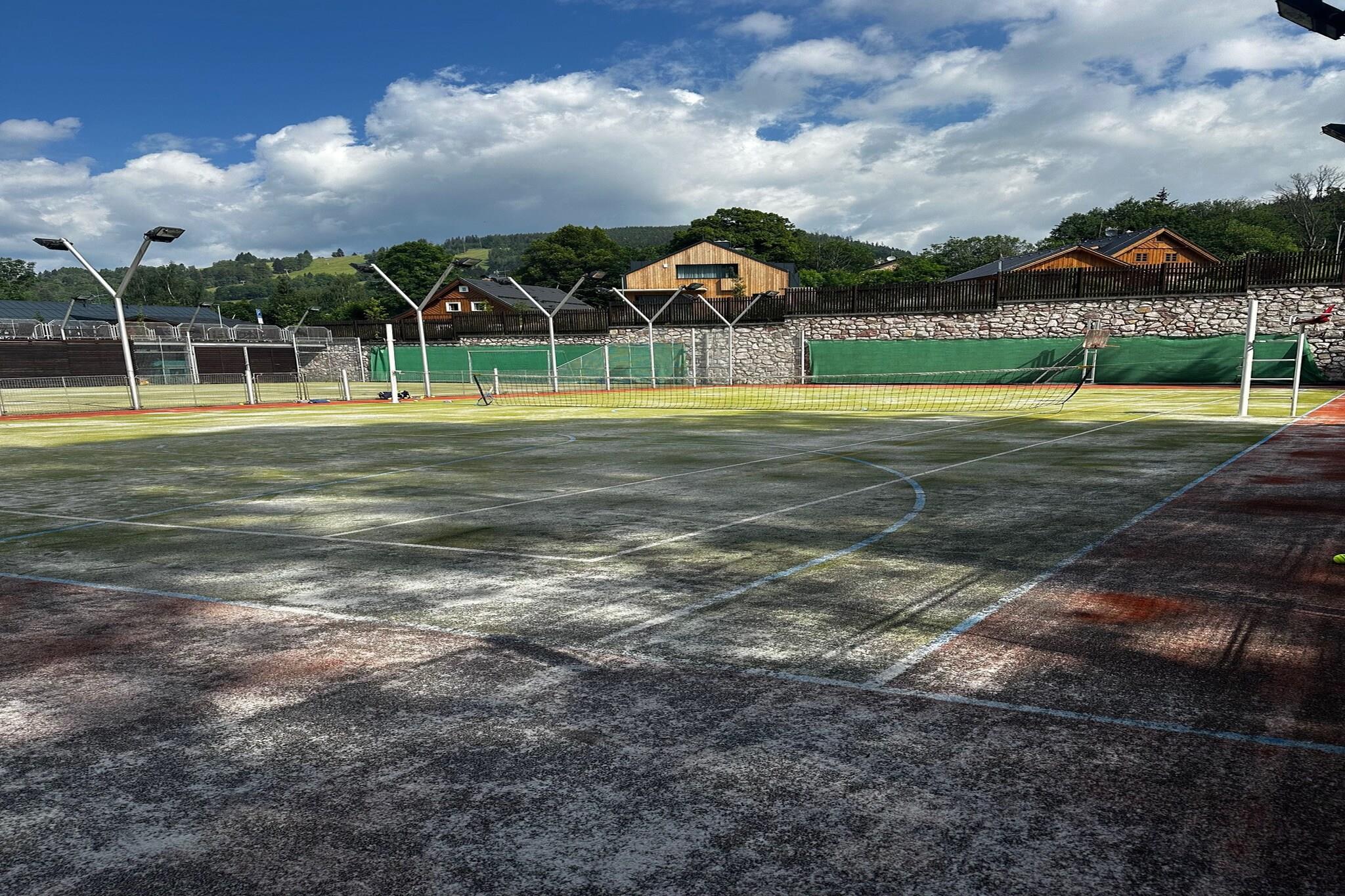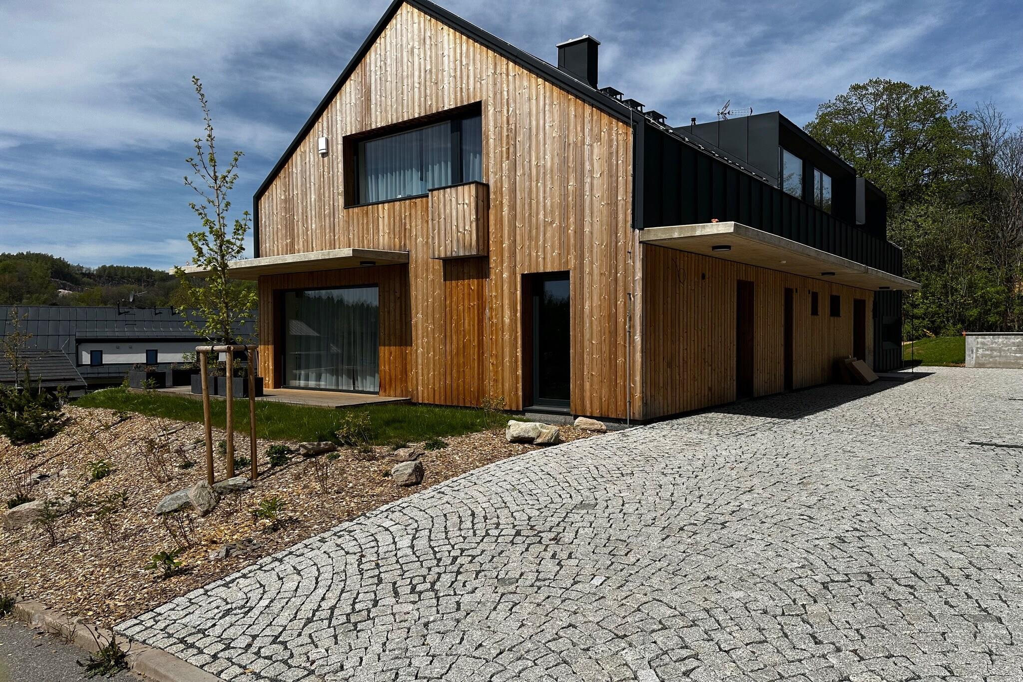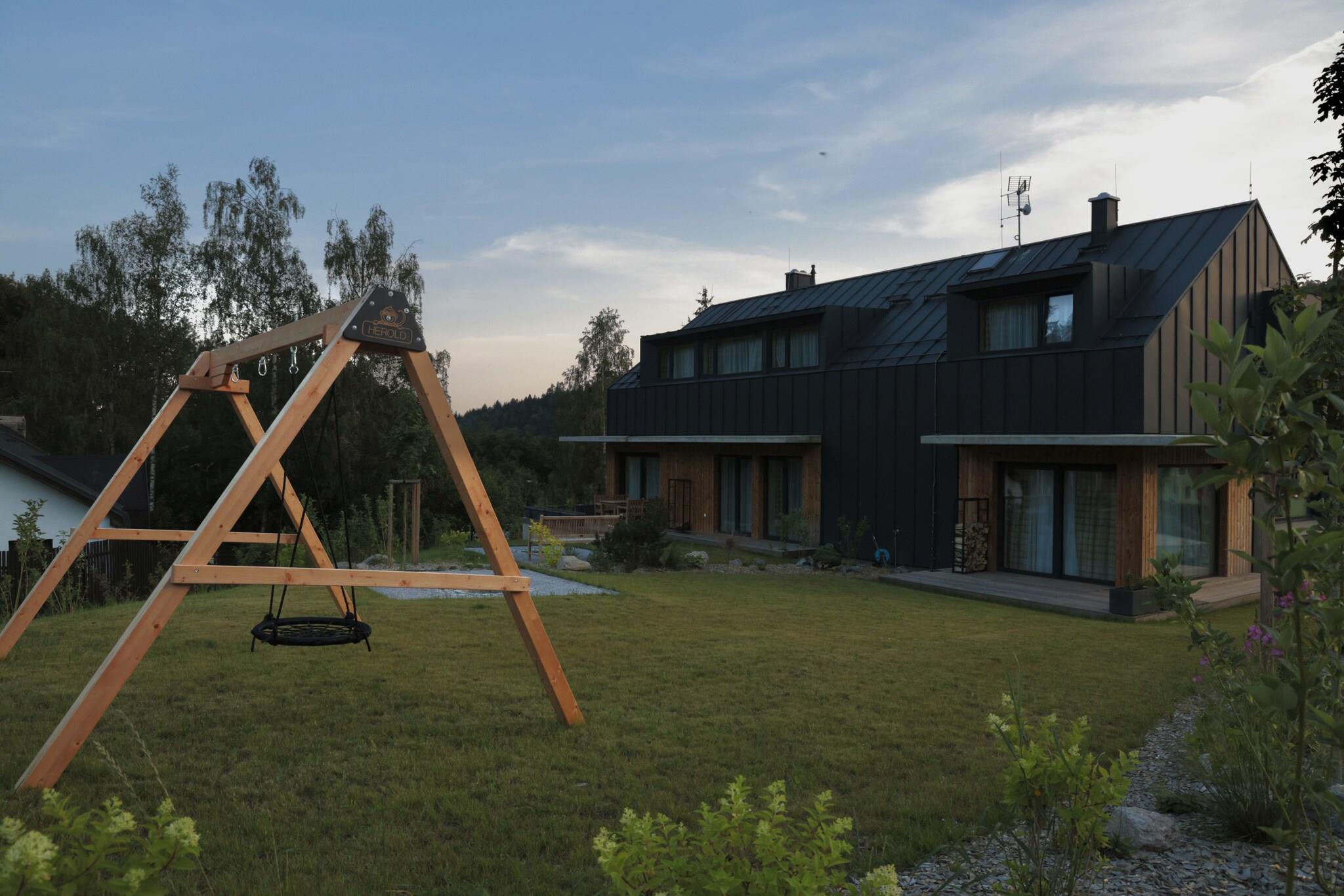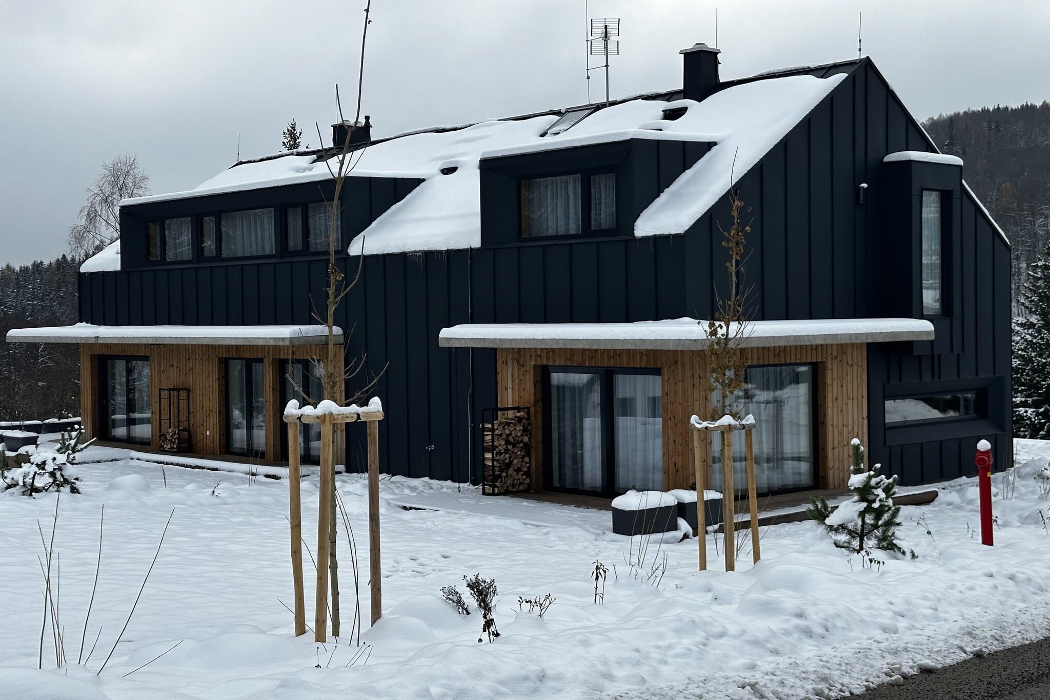 Beliggende i det fredelige landskab i Cerny Dul, tilbyder denne luksuriøse lejlighed til seks den perfekte blanding af komfort og natur, hvilket gør det til et uforglemmeligt tilflugtssted i hjertet af Giant Mountains. Uanset om du planlægger en hurtig weekendophold eller et længere ophold, er denne lejlighed ideel til familier, vennegrupper eller par, der søger både eventyr og afslapning. Selve lejligheden er designet til bekvemmelighed og afslapning, med en hyggelig stue med en pejs, et fuldt udstyret køkken og to komfortable soveværelser - et med en dobbeltseng og et med to enkeltsenge. Med nem adgang til SkiResort Cerná Hora vil skiløbere og snowboardere finde 7,9 km uberørte pister lige uden for døren. Om sommeren kan du nyde betagende vandre- og cykelstier, hvilket gør denne lejlighed til den perfekte destination året rundt for både naturelskere og eventyrlystne. En del af et nybygget kompleks, er denne rummelige lejlighed beliggende i en af to smukke bygninger, der hver tilbyder sin egen unikke charme. Komplekset rummer i alt seks moderne lejligheder, hvoraf fire kan rumme seks personer, med mulighed for at leje en hel bygning til større grupper. Hver lejlighed er designet til at komplementere de fantastiske omgivelser og skabe en harmonisk og indbydende atmosfære.