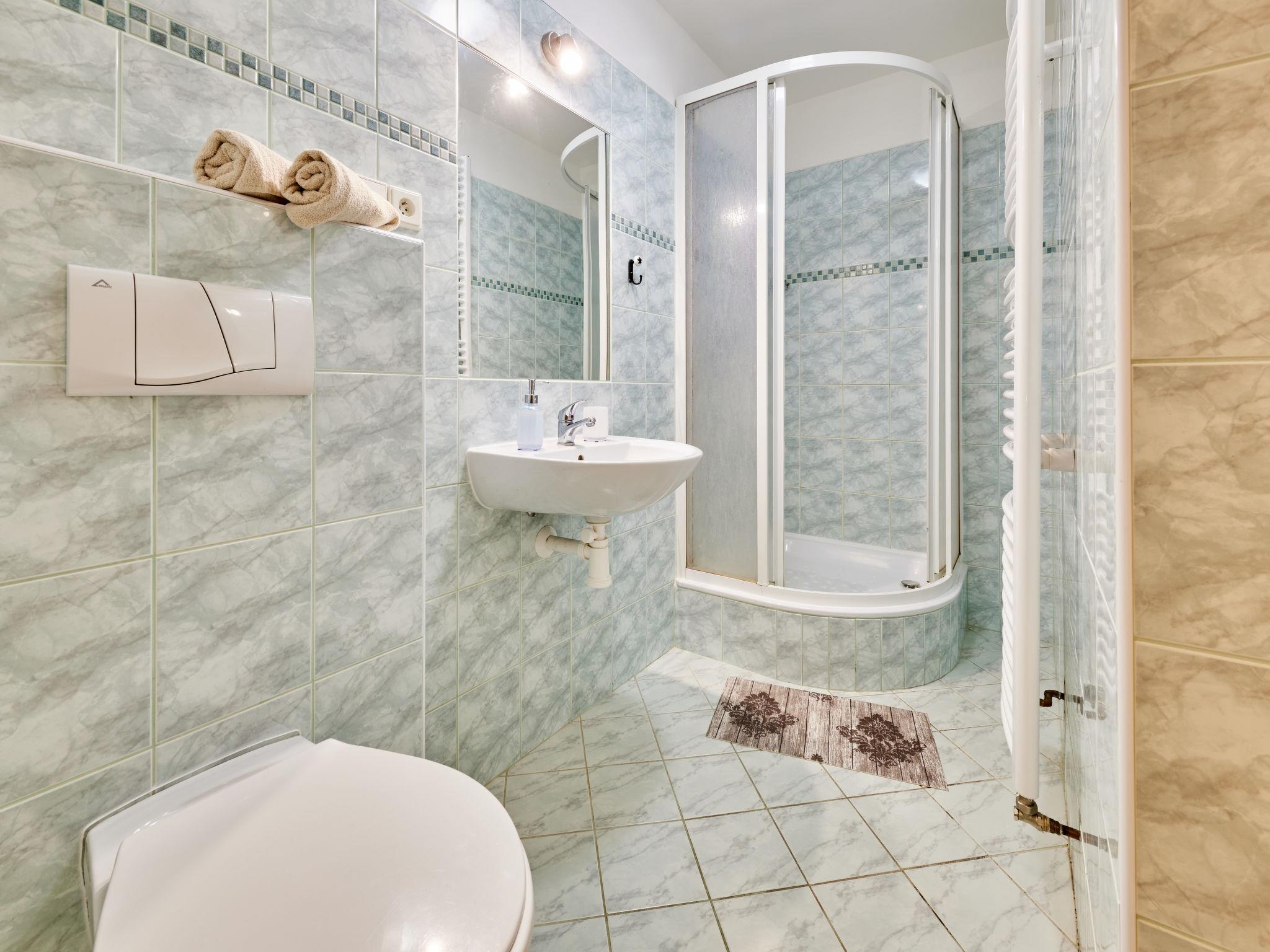11-room house on 2 levels. 1 room with 1 sofabed, 1 double bed, shower/WC and satellite TV. 2 rooms, each room with 1 double bed, shower/WC and satellite TV. Dining room with dining table and satellite TV. Living room with 1 double sofabed, dining table, kitchen corner, shower/WC and satellite TV. 1 room with 1 double bed. Kitchenette (dishwasher, 4 ceramic glass hob hotplates, kettle, freezer). Upper floor: 1 room with 1 double bed, kitchen corner, shower/WC and satellite TV. 1 room with 2 beds. 1 room with 1 double bed, kitchen corner, shower/WC and satellite TV. Exit to the balcony. 1 room with 2 beds. Living room with 1 double sofabed, dining table, kitchen corner, bath/shower/WC and satellite TV. 1 room with 1 double bed. Gallery with 3 sleeping facilities. Balcony. Terrace furniture. Facilities: Internet (WiFi, free). Please note: suitable for families. Non-smoking house. Maximum 1 small pet/ dog allowed. Instead of an enclosed bedroom, some sleeping areas are located in an open-plan area (gallery, alcove, etc.).